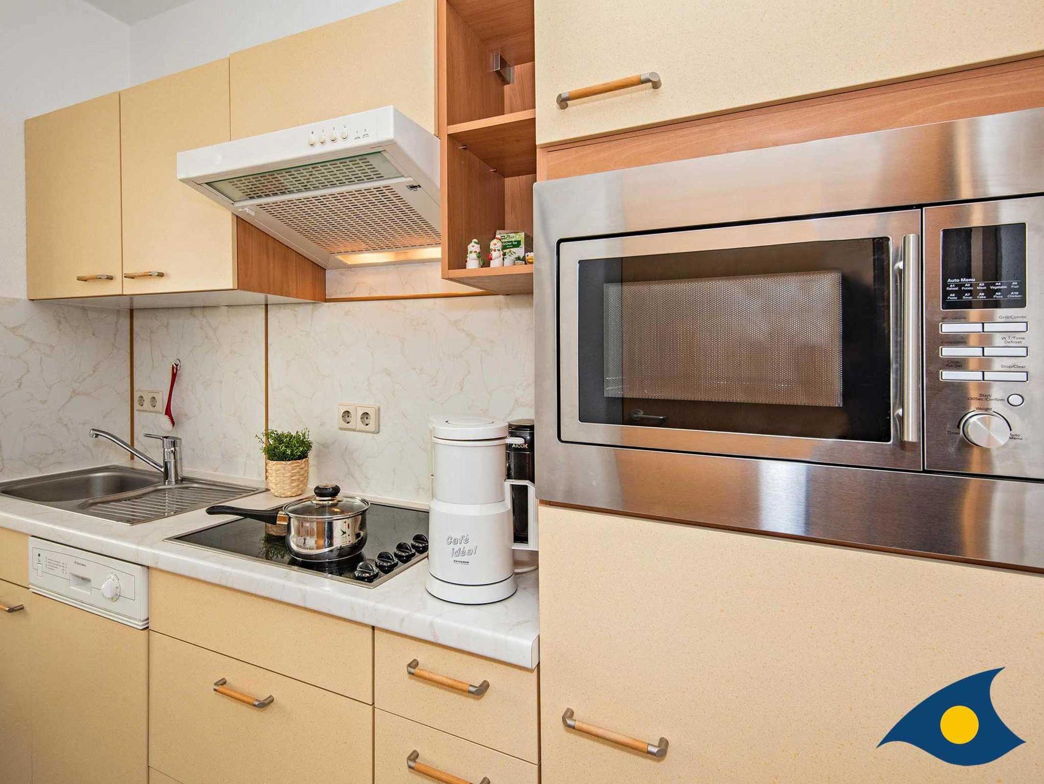 Wohlfühlen auf 51 Quadratmeter - beim Betreten der Wohnung empfängt Sie ein großzügiger Flur, von dem alle Zimmer abgehen. Im Wohnzimmer kann das neue Schlafsofa als zusätzliiche Schlafmöglichkeit (Liegefläche 1,40 x 2,0 m) genutzt werden. Die separate Küche inkl. Spülmaschine, Cerankochfeld, Mikrowelle und Essplatz lädt zum gemeinsamen Kochen und Schlemmen ein.