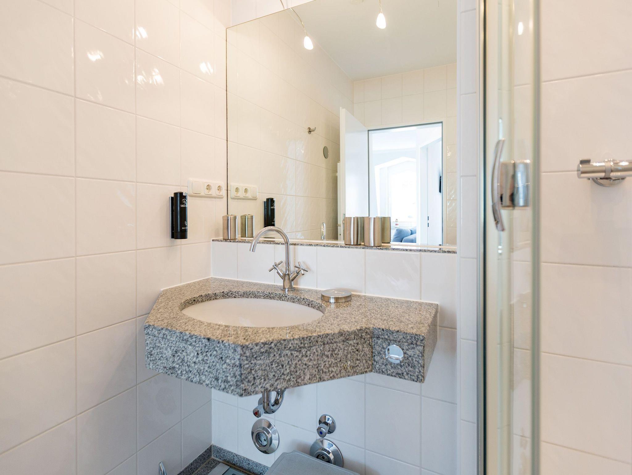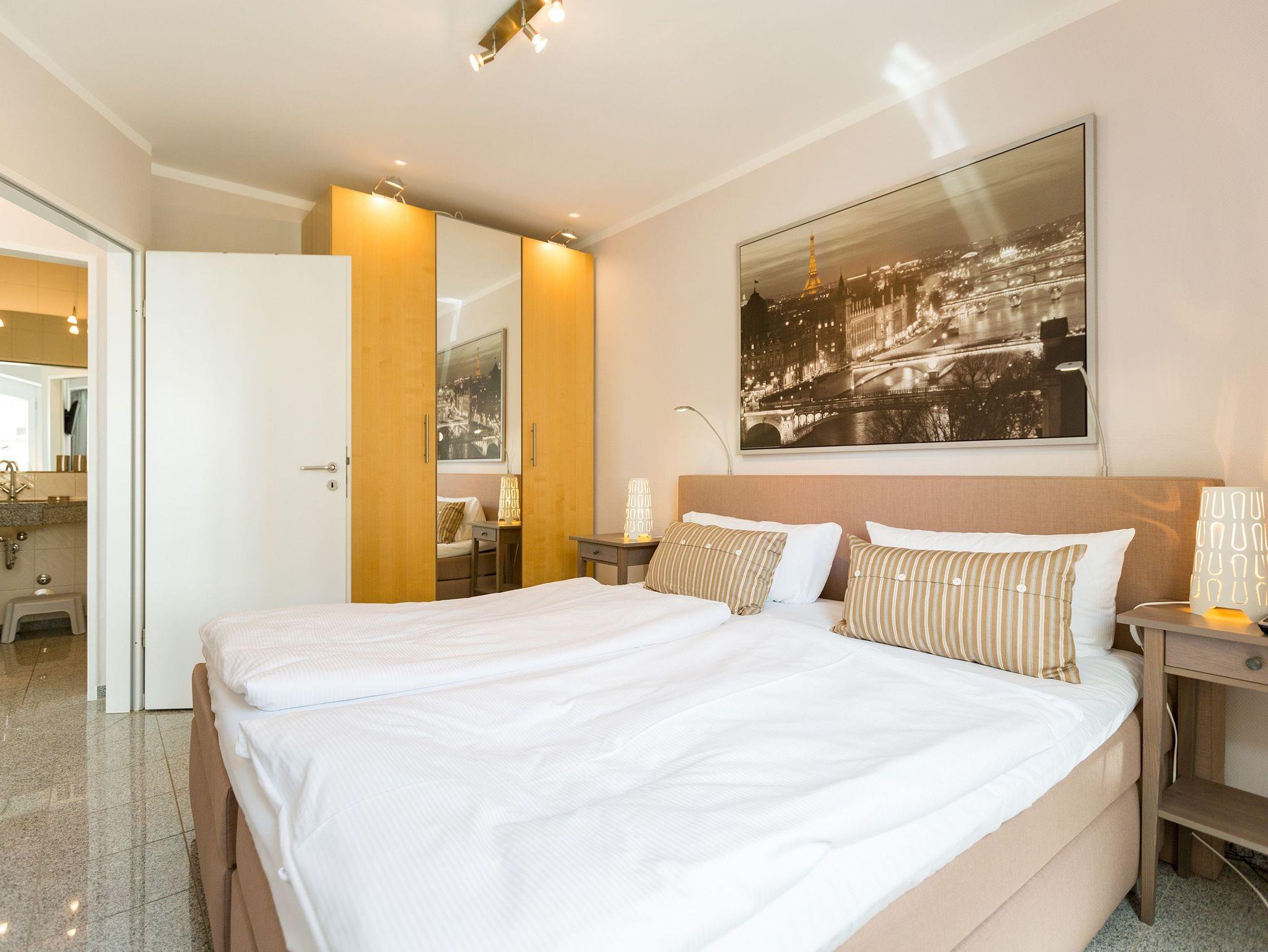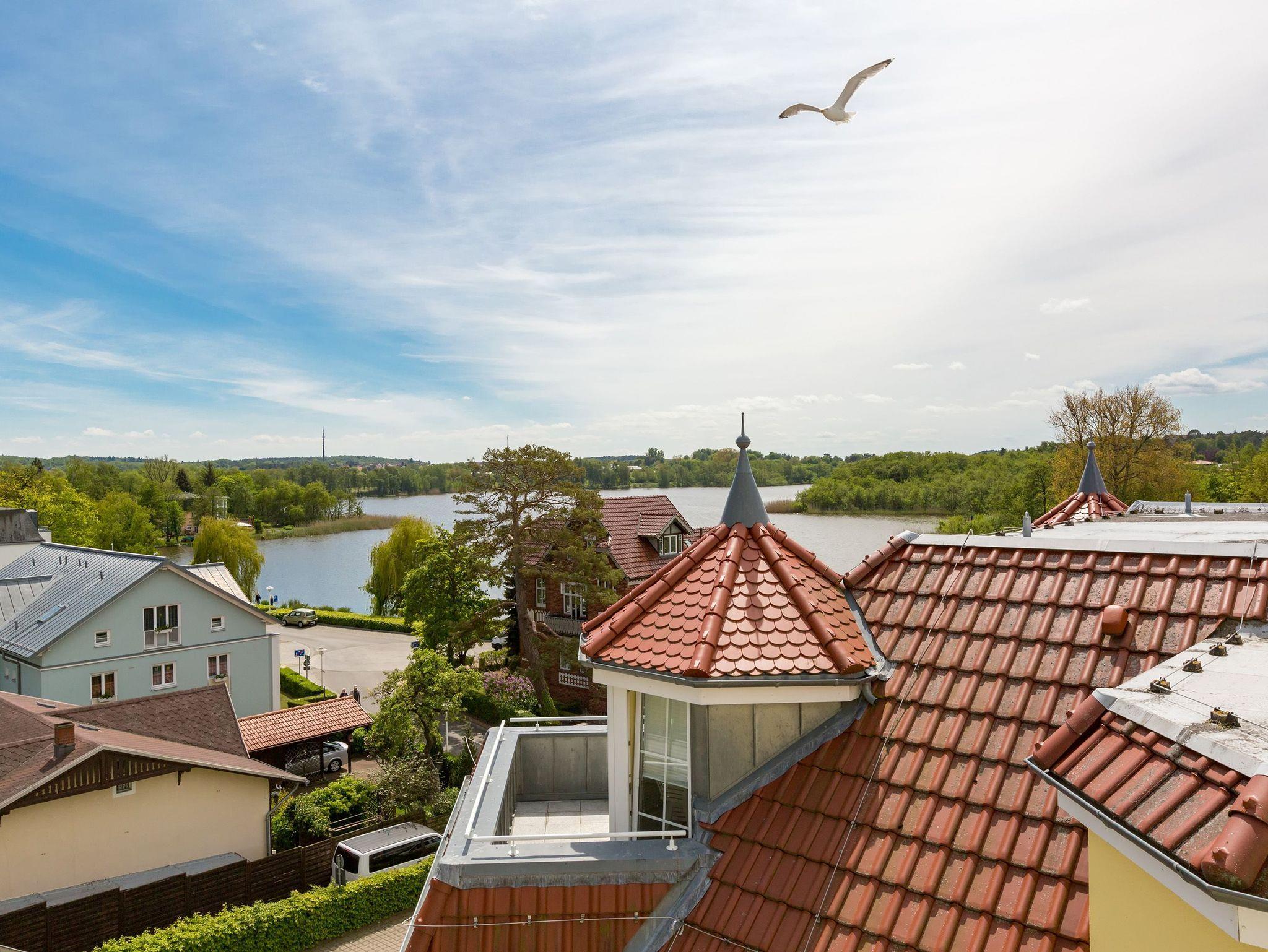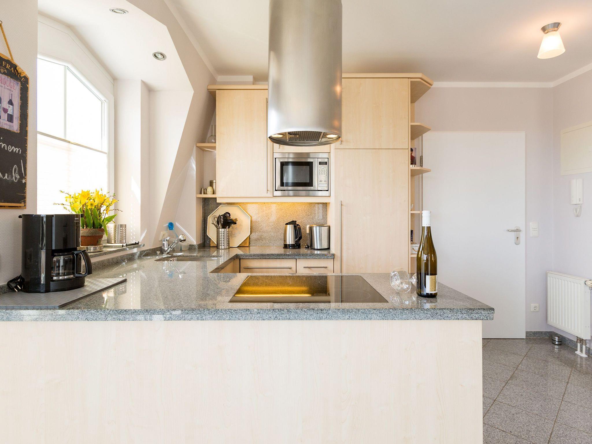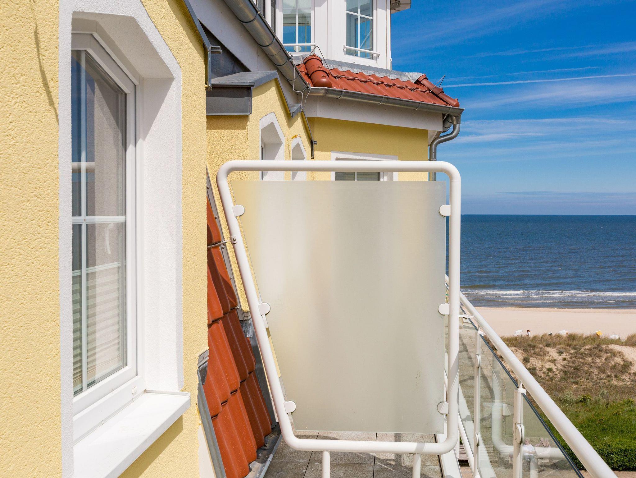 Diese schön gestaltete 2-Raum-Ferienwohnung empfängt Sie in der 3. Etage der Dünenresidenz und bietet Platz für 2 Personen und 1 Kleinkind bis 3 Jahre. Die stilvolle, moderne Möblierung und die geschmackvollen Dekorationen sorgen für einen schönen Urlaub. Der helle, freundliche Wohnbereich mit bequemer Sitzgruppe (Flat-TV, DVD) wird ergänzt durch und eine offene, komplett ausgestattete Küche und den schönen Essplatz im Glaserker. Von hier bietet sich Ihnen ein schöner Blick auf den Schloonsee und auf die Ostsee. Das Schlafzimmer mit Boxspringbett (1,80 m x 2,00m) bietet erholsamen Schlafkomfort. Ein modernes Wohlfühlbad mit WC und Dusche und ein Abstellraum für Ihre Koffer stehen ebenfalls zur Verfügung. Auf dem Südbalkon mit Blick auf Bansin genießt man die Abendsonne, der zweite seitliche Balkon bietet einen schönen Blick auf die Ostsee. Auf Wunsch stellen wir für unsere kleinen Gäste ein Kinderreisebett (ohne zusätzliche Matratze [&] Bettzeug) und einen Kinderhochstuhl (gegen einen Aufpreis) zur Verfügung. Für Ihren Komfort sind die Betten bei der Anreise bezogen und Handtücher liegen bereit.