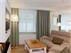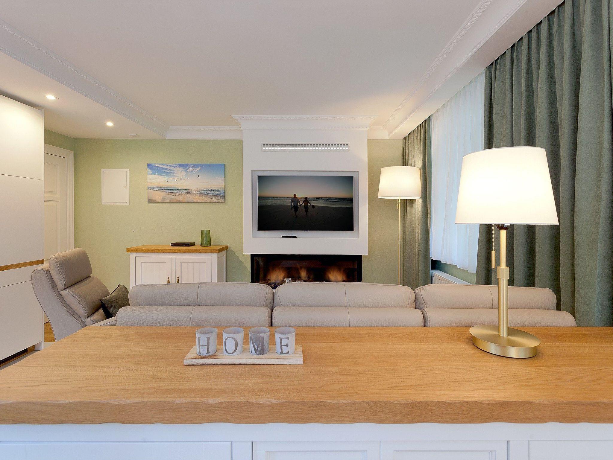 Das helle 2-Zimmer-Appartement (60 m²) liegt im Gartengeschoss der Villa und überzeugt durch eine durchdachte Raumaufteilung sowie hochwertige Ausstattung. Der großzügige Wohnbereich mit exklusivem Gaskamin, gemütlicher Couchgarnitur und Flat-TV schafft zu jeder Jahreszeit eine warme Wohlfühlatmosphäre perfekt für entspannte Abende mit der Familie.