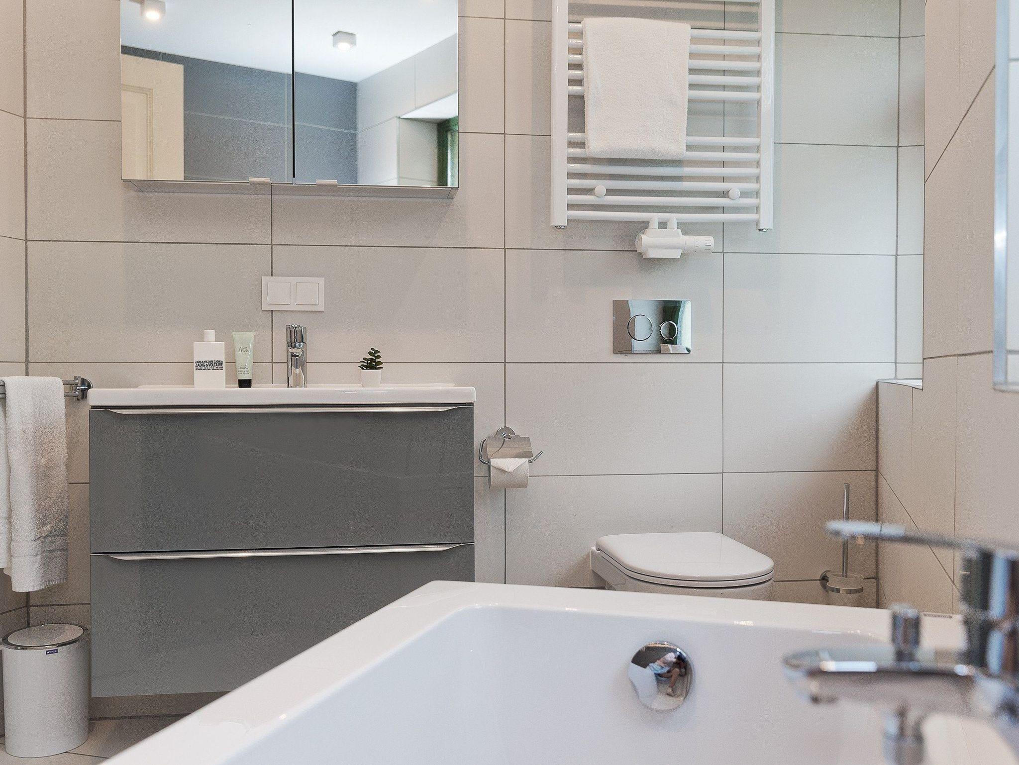 Damit Sie Ihre wohlverdiente Urlaubszeit bereits am Anreisetag in vollen Zügen genießen können, haben wir das Bett für Sie und das für Ihre lieben Mitreisenden bereits bezogen und ein Duschtuch sowie ein kleines Handtuch bereitgelegt. Das moderne Badezimmer überzeugt mit stilvollen Natursteinfliesen, hochwertiger Keramik, edlen Messing-Armaturen und einer bodengleichen Dusche ? Wellnessgefühl inklusive.