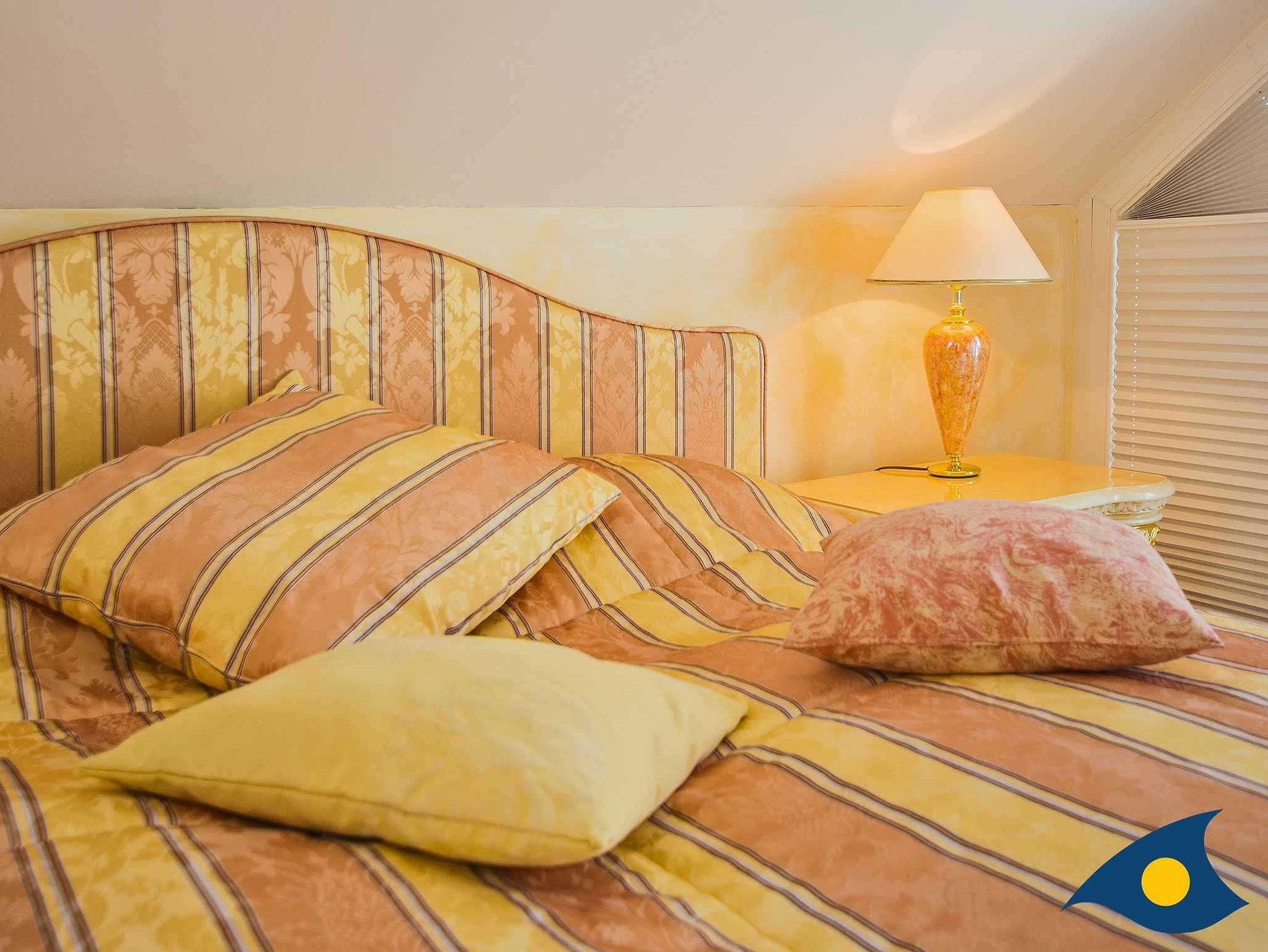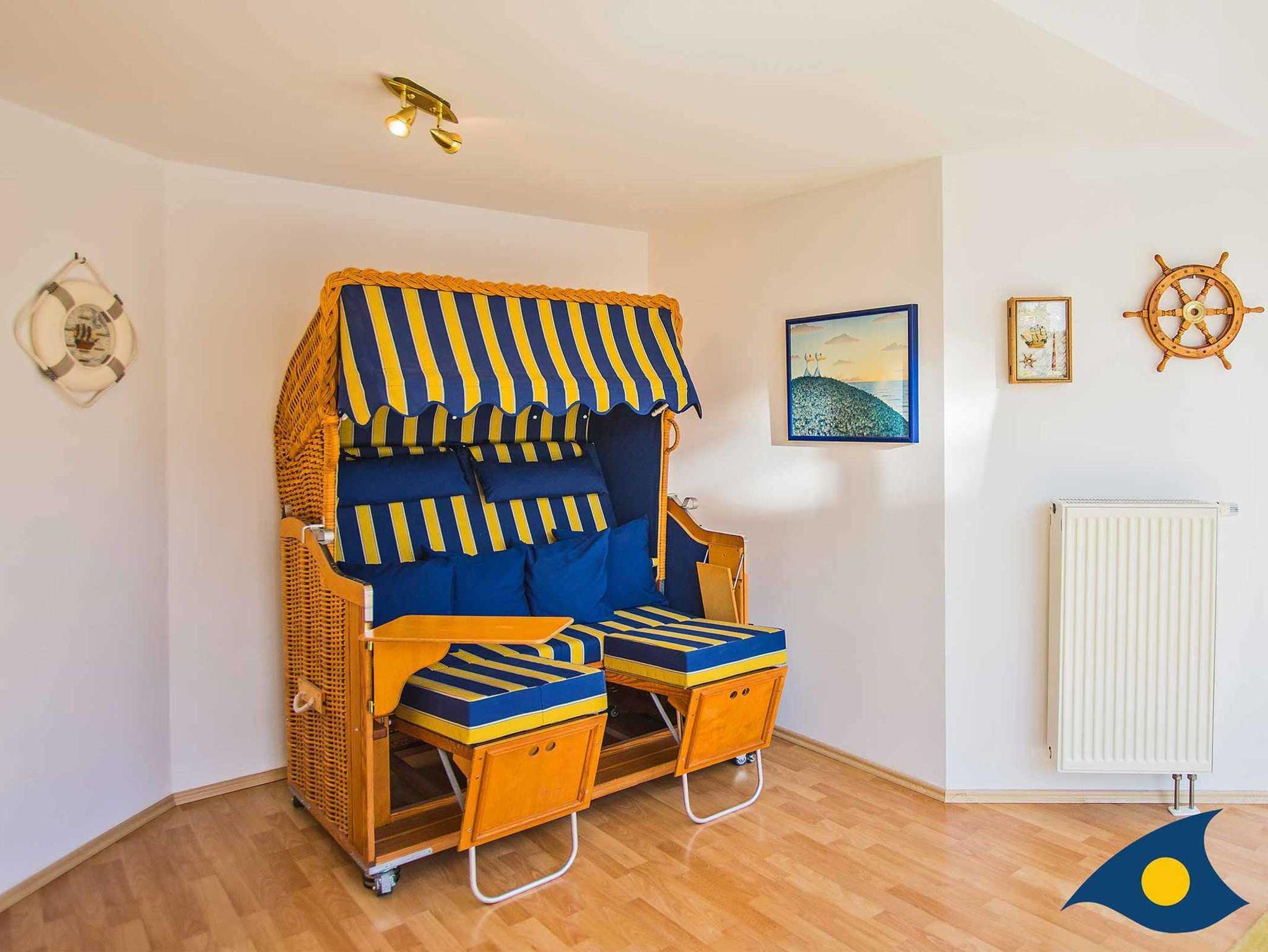 Zu den Annehmlichkeiten gehören, neben dem atmosphärischen Strandkorb in der Wohndiele und der liebevoll eingerichteten Küche, zusätzlich die unten aufgeführten Details: Großzügige Dachterrasse (Südlage) mit Meerblick, Sitzgelegenheiten und Sonnenliegen, zusätzlicher Balkon (Westlage) mit Blick auf den idyllischen Schloonsee