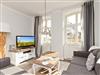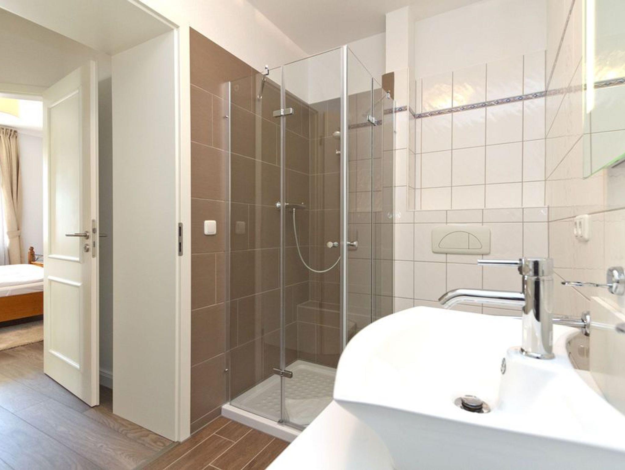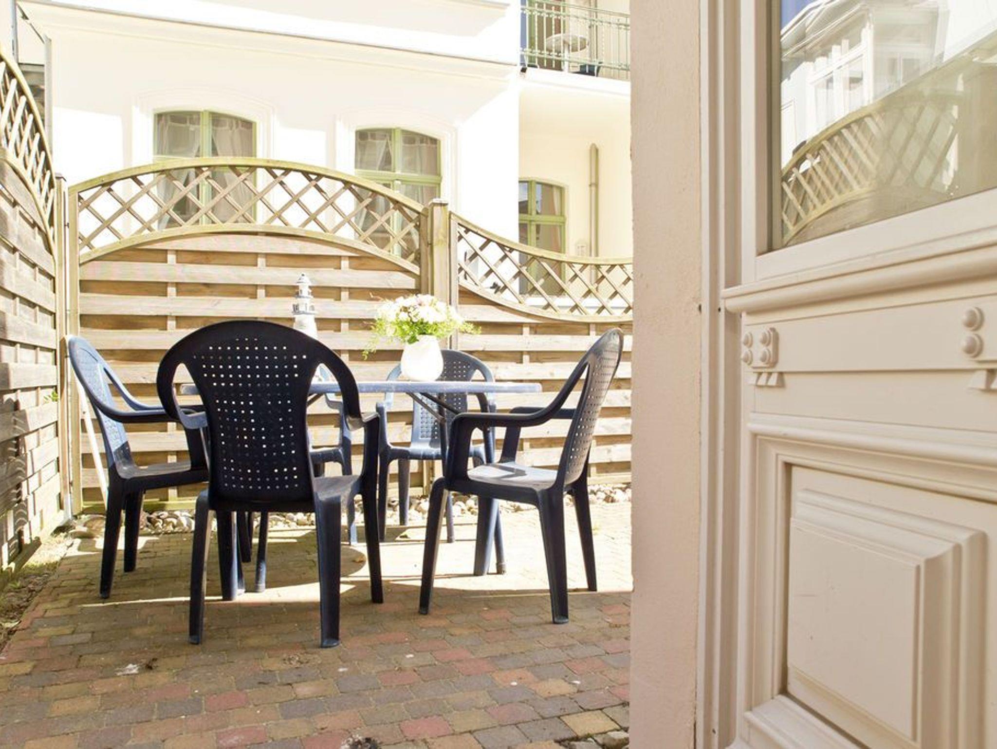 Die helle, freundliche 3-Raum-Ferienwohnung im Erdgeschoss der Villa ist 2016 frisch renoviert - modern eingerichtet und sehr geschmackvoll dekoriert und bietet Platz für 4 bis 6 Personen. Sie verfügt über ein Wohnzimmer mit Schlafcouch und Flat-TV, eine komplett ausgestattete Küchenzeile (Ceranfeld, Backofen) mit Essbereich, zwei Schlafzimmer mit Boxspring-Doppelbetten, zwei Duschbäder und eine großzügige Terrasse. Die vollständige Einrichtung lässt keine Wünsche offen. Auch die beiden Schlafzimmer sind je mit einem Flat-TV ausgestattet. Für die 5. und 6. Person besteht die Möglichkeit der Aufbettung auf der Schlafcouch im Wohnzimmer. Auf Wunsch stellen wir für unsere kleinen Gäste ein Kinderreisebett (ohne zusätzliche Matratze [&] Bettzeug) und einen Kinderhochstuhl zur Verfügung. Die Betten sind bei Anreise bezogen und Handtücher liegen bereit. Ein PKW-Stellplatz steht auf dem Parkdeck zur Verfügung.