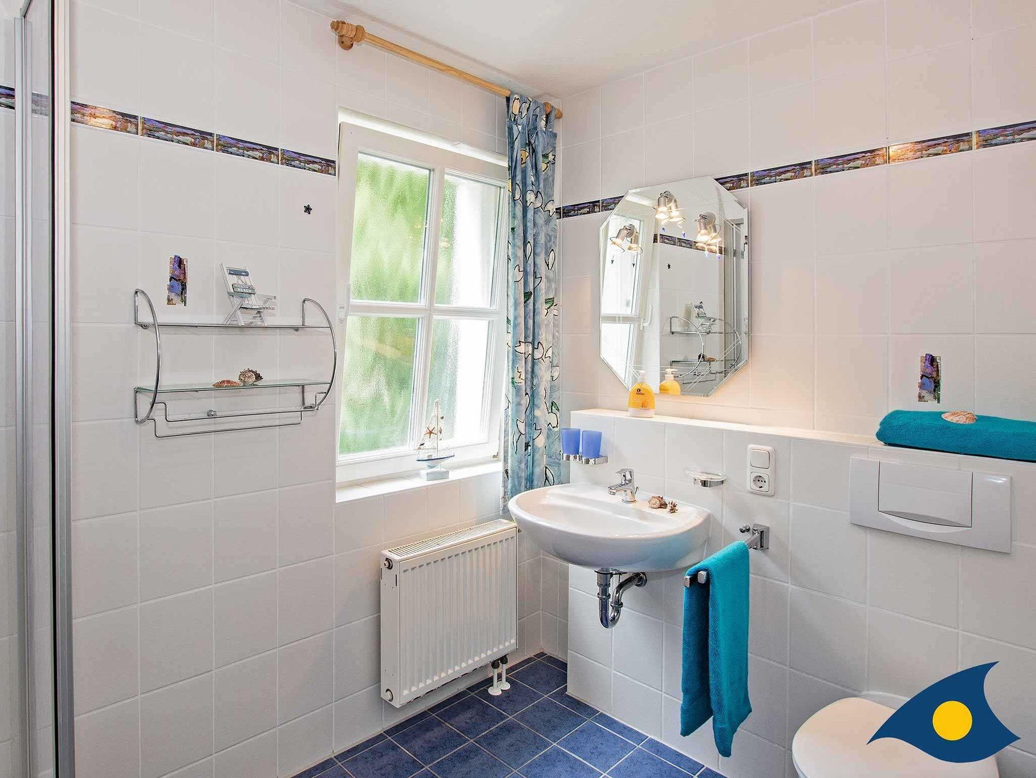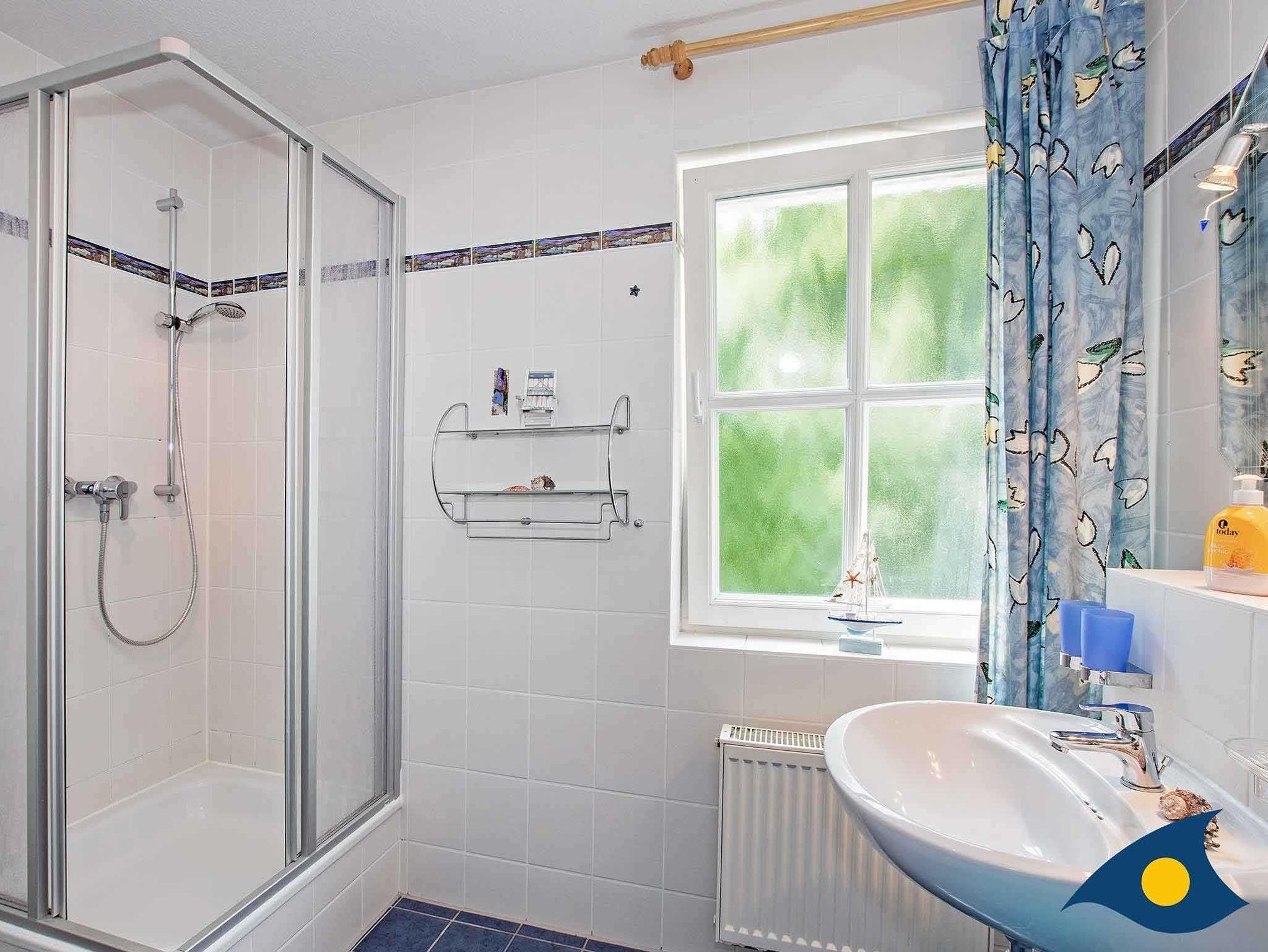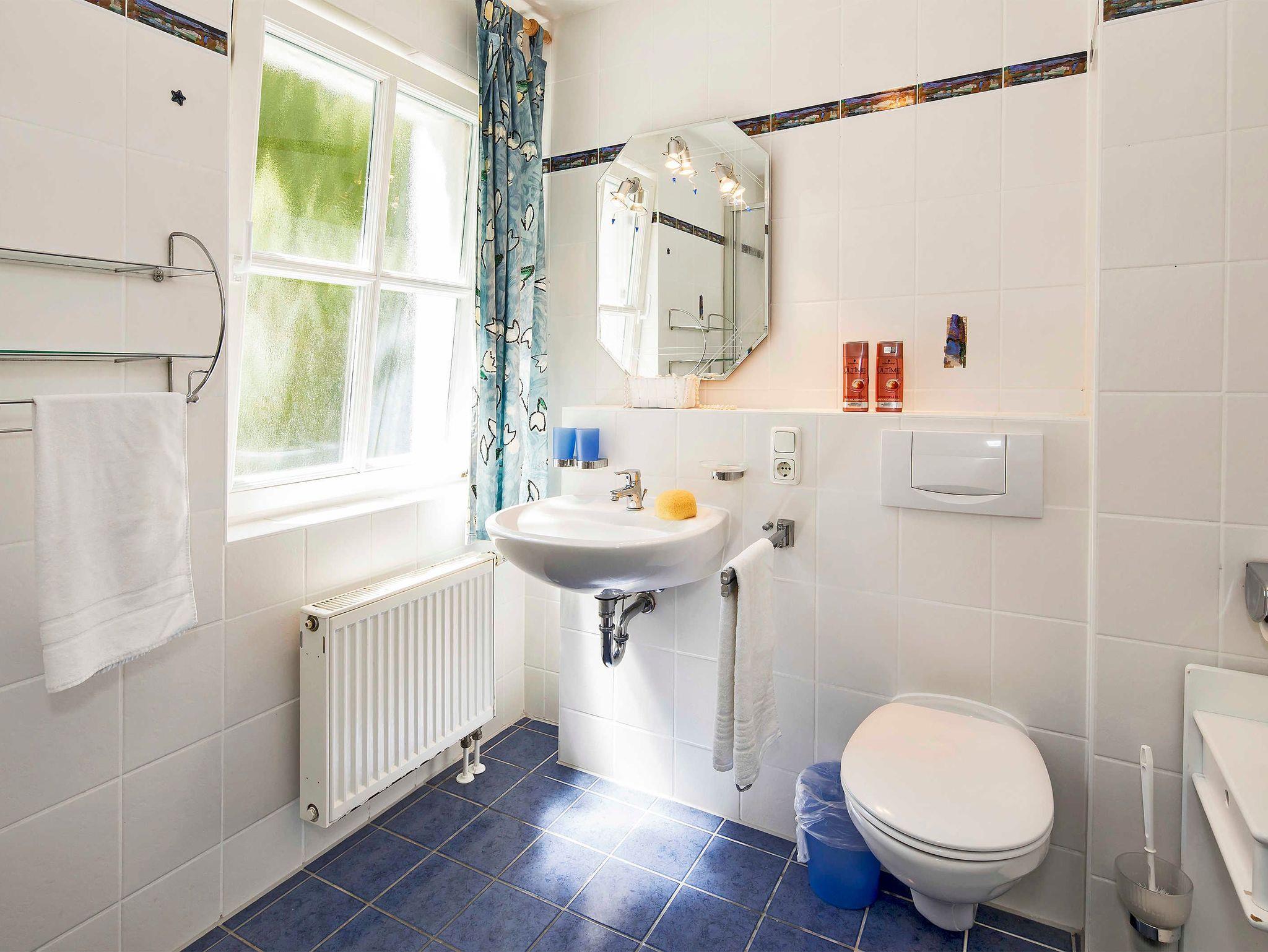 Das Badezimmer mit Dusche und WC ist sehr geräumig und somit ein wahres Familienbad.