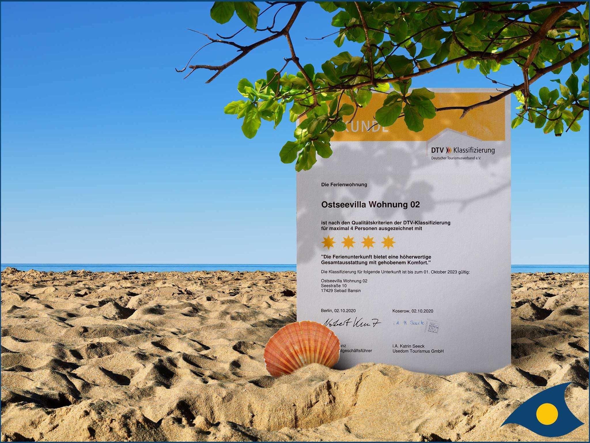 Im Hochparterre der Ostseevilla begrüßt Sie ein lichtdurchflutetes, freundliches Traumappartement, welches vom Deutschen Tourismus Verband mit 4 Sternen bewertet wurde.