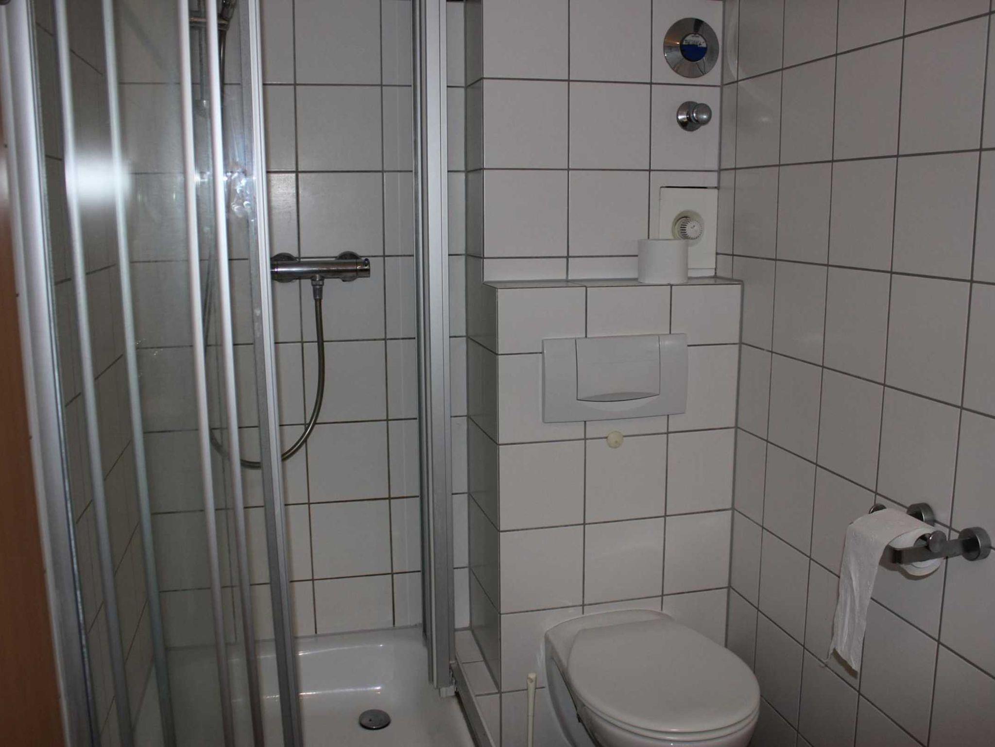 Im Dachgeschoss wurde ein kleines zweites Bad mit Dusche und WC eingebaut. Dort gibt es auch ein kleines Doppelbett (1,40 m).