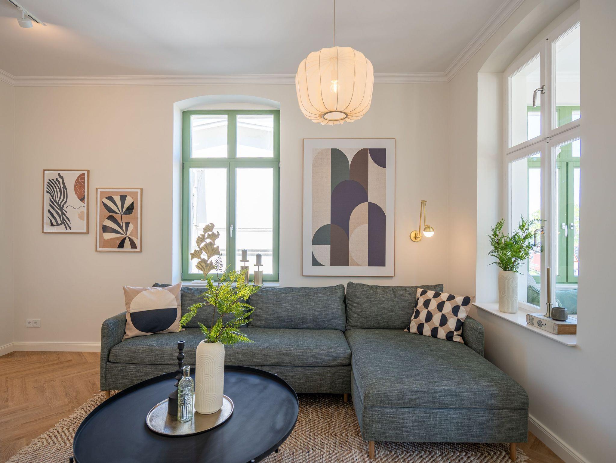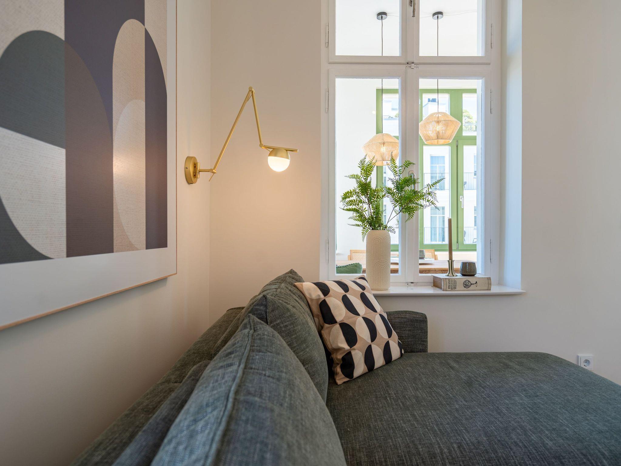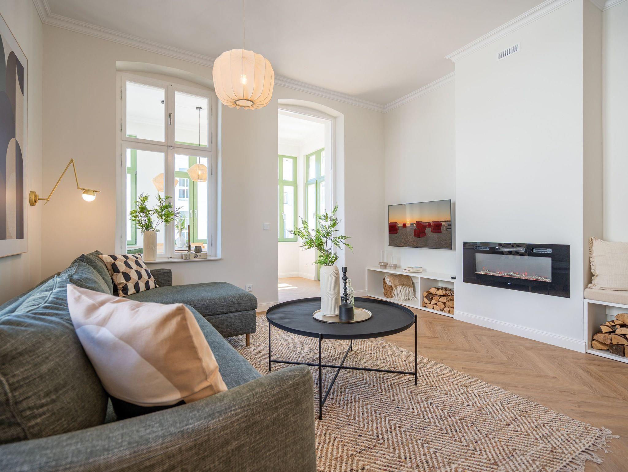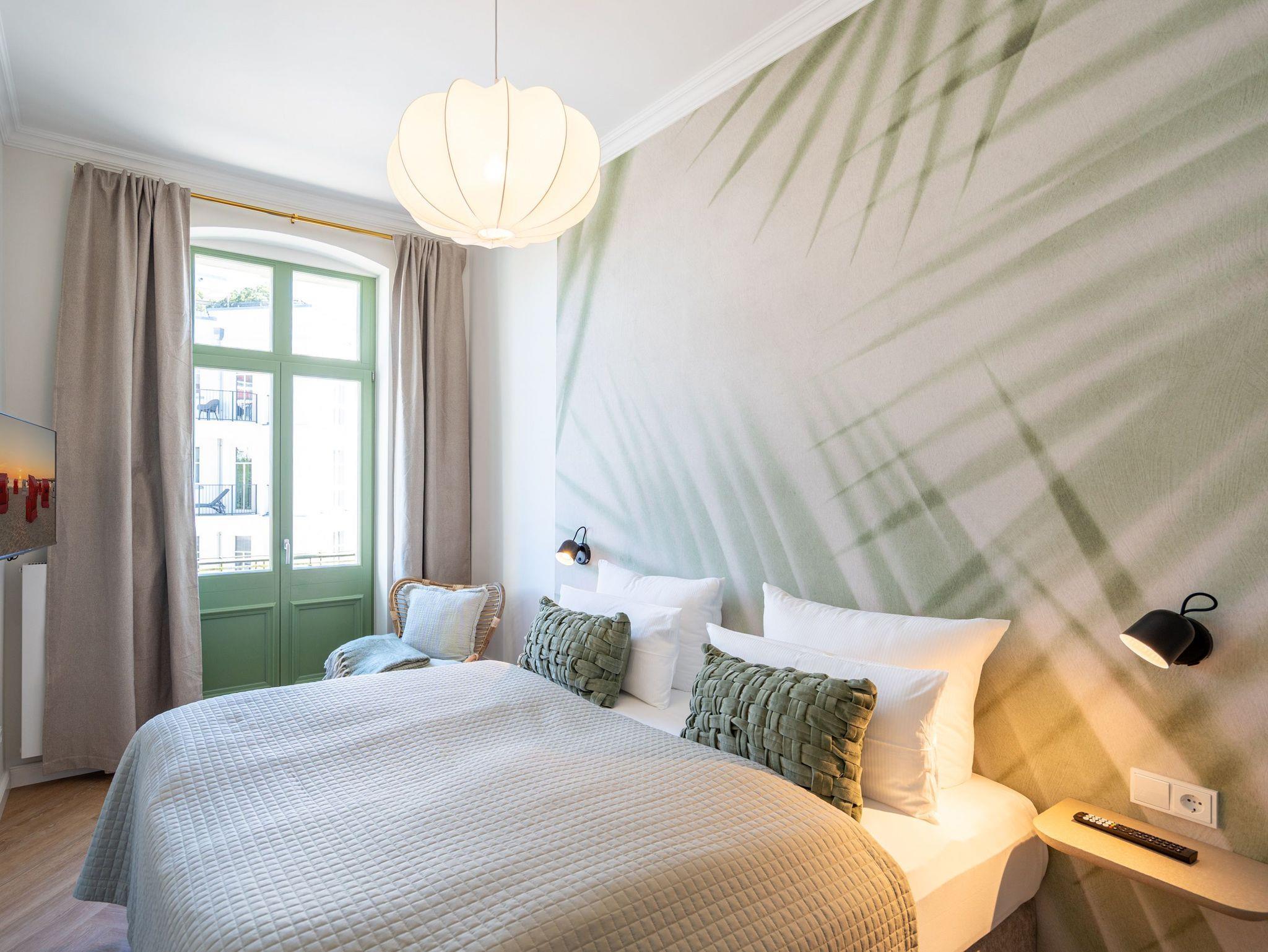 Das stilvolle 3-Raum-Appartement Nr. 13 in der Villa Frohsinn lädt mit großzügigen 70 qm Wohnfläche in der 2. Etage zum Entspannen und Genießen ein. Ideal geeignet für 4 Personen, bietet diese liebevoll eingerichtete Wohnung modernen Komfort und maritimen Charme. Der offene Wohnbereich empfängt Sie mit einer gemütlichen Sitzgruppe. Ein Flat-TV und ein stimmungsvoller Elektro-Kamin mit Fernbedienung sorgen auch an kühleren Abenden für wohlige Atmosphäre. Direkt angrenzend befindet sich die voll ausgestattete Küche mit allem, was Sie für eine bequeme Selbstverpflegung benötigen ? darunter ein moderner Induktionsherd, ein Mikrowellen-Kombigerät, Spülmaschine und ein Kühlschrank mit Gefrierfach. Ein besonderes Highlight ist die charmante Veranda mit Meerblick, auf der ein Esstisch mit Ecksitzbank zu gemütlichen Mahlzeiten einlädt. Von hier gelangen Sie auf den Nord-Balkon, der mit einem Tisch, vier Stühlen und zwei Sonnenliegen den idealen Ort zum Entspannen unter freiem Himmel bietet. Für erholsamen Schlaf sorgen zwei separate Schlafzimmer, jeweils ausgestattet mit komfortablen Boxspringdoppelbetten (1x 2,00 x 1,80 m / 1x 2,10 x 1,80 m), Kleiderschränken und eigenen Flat-TVs. In einem der Schlafzimmer findet zudem bei Bedarf ein Kinderreisebett (kostenpflichtig zubuchbar) Platz. Abgerundet wird das komfortable Wohnangebot durch zwei innenliegende Bäder, jeweils mit Dusche, WC und Waschtisch, sowie kostenfreiem WLAN und einem eigenen PKW-Außenstellplatz Nr. 13.