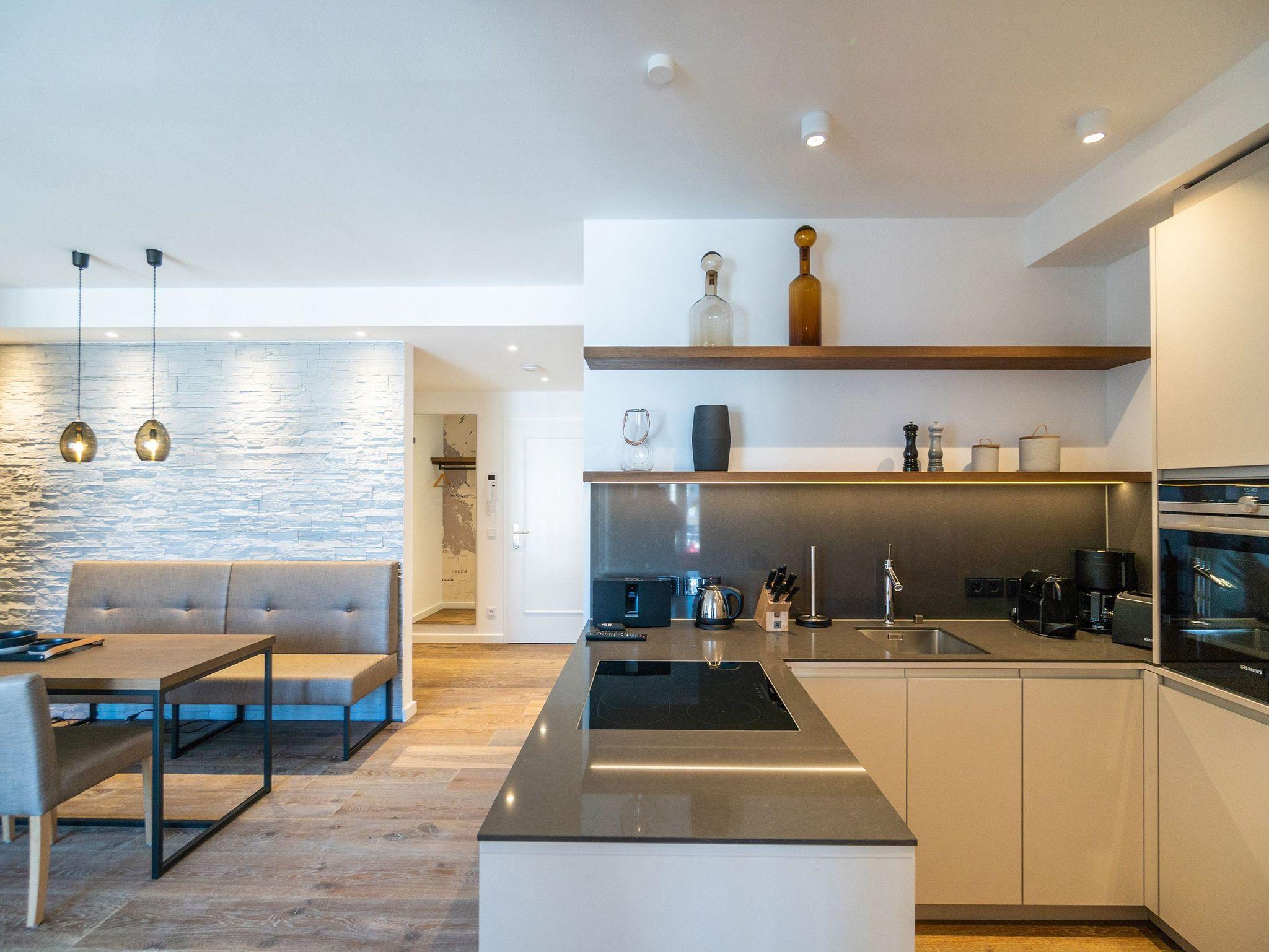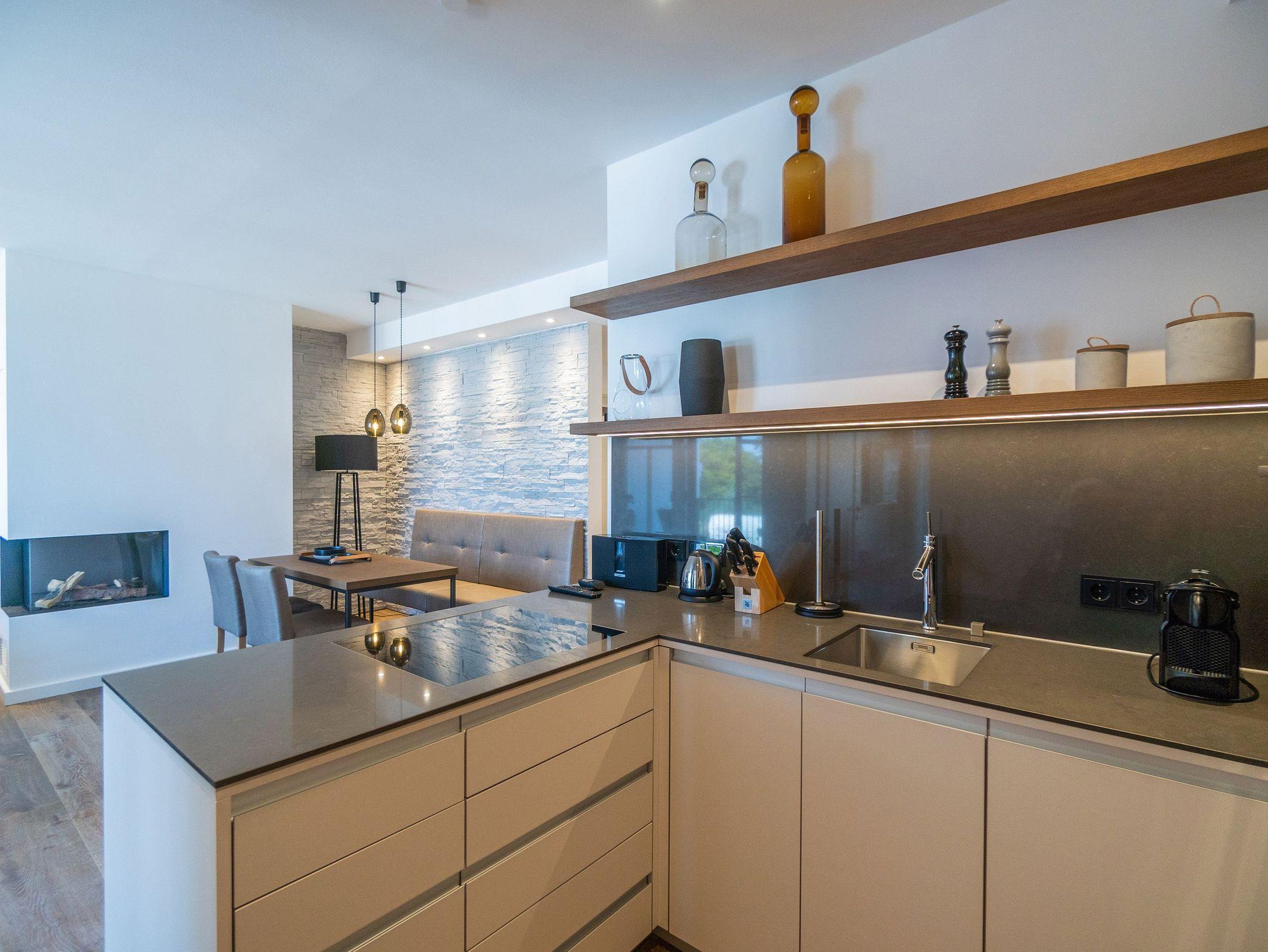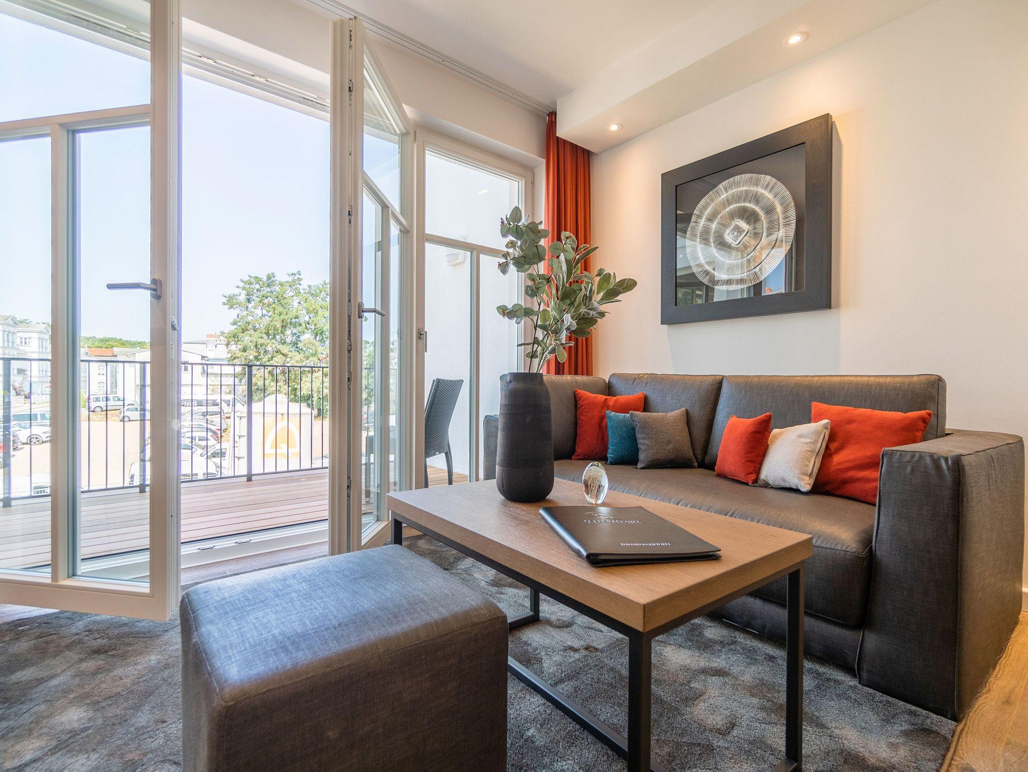 Raus aus dem Alltagstrott und sich und natürlich auch dem Partner einmal wieder eine richtig schöne Auszeit an der Ostsee gönnen ? in diesem Zwei-Zimmer-Appartement in der 3. Etage wird dieser Traum Wirklichkeit. Das 51 Quadratmeter große Wohlfühlreich mit seitlichem Blick über die Ostsee wartet genau auf Sie ?allein, zu zweit oder mit Kleinkind bis drei Jahre (im Kinderreisebett). Ob auf dem West-Balkon (7 Quadratmeter) oder im wunderschönen Ambiente des Wohn-Esszimmers ? kommen Sie an und spannen Sie aus. Strecken Sie auf dem bequemen Sofa die Füße aus und verfolgen im Kamin das Spiel der Flammen, hören Sie Ihre Lieblingsmusik über die Highend-Soundanlage von Bose mit Bluetooth-Funktion oder Kuscheln Sie gemeinsam bei einem romantischen Film vor dem Flat-TV. Da passende Candle Light Dinner können Sie in der vollausgestatteten und offenen Wohnküche mit den eigenen Händen und viel Fantasie zaubern. Alle dafür benötigten Geräte sind vorhanden. Ebenfalls edles Geschirr. Kommen Sie zum Essen am schönen Esstisch zusammen. Bei schönem Wetter wird der Balkon durch die weit geöffneten Flügeltüren der bodentiefen Fenster zu einer Verlängerung des Wohnzimmers. Das komfortable Boxspringdoppelbett (1,80 m x 2,00 m) im Schlafzimmer bereitet nicht nur traumreiches Schlafvergnügen. Bei Anreise ist es natürlich schon bezogen. Der Schrank bietet viel Platz zum Verstauen. Hier gibt es ebenfalls einen Flat-TV. Auch aus dem Schlafzimmerfenster haben Sie einen Zugang auf den Balkon und somit auf das grenzenlose Blau der Ostsee. Wenn der Wind auflandig ist, können Sie hier beim Rauschen der Meereswellen einschlafen. Das Badezimmer ist auf dem neuesten Stand der Wellness-Trends. Es verfügt neben einer ebenerdigen und sehr geräumigen Regendusche, einem Waschtisch mit hinterleuchtetem Spiegel und einem WC über eine Finnische Sauna. Da werden selbst Schlechtwettertage zu entspannenden Momenten. In einem kleinen Abstellraum finden Sie einen Wasch-Trockner. Das WLAN ist kostenfrei und Handtücher liegen bei Ihrer Anreise bereit. In der Tiefgarage ist der Stellplatz Nr. 25 für Sie reserviert. Also alles da. Jetzt brauchen Sie nur noch ankommen.