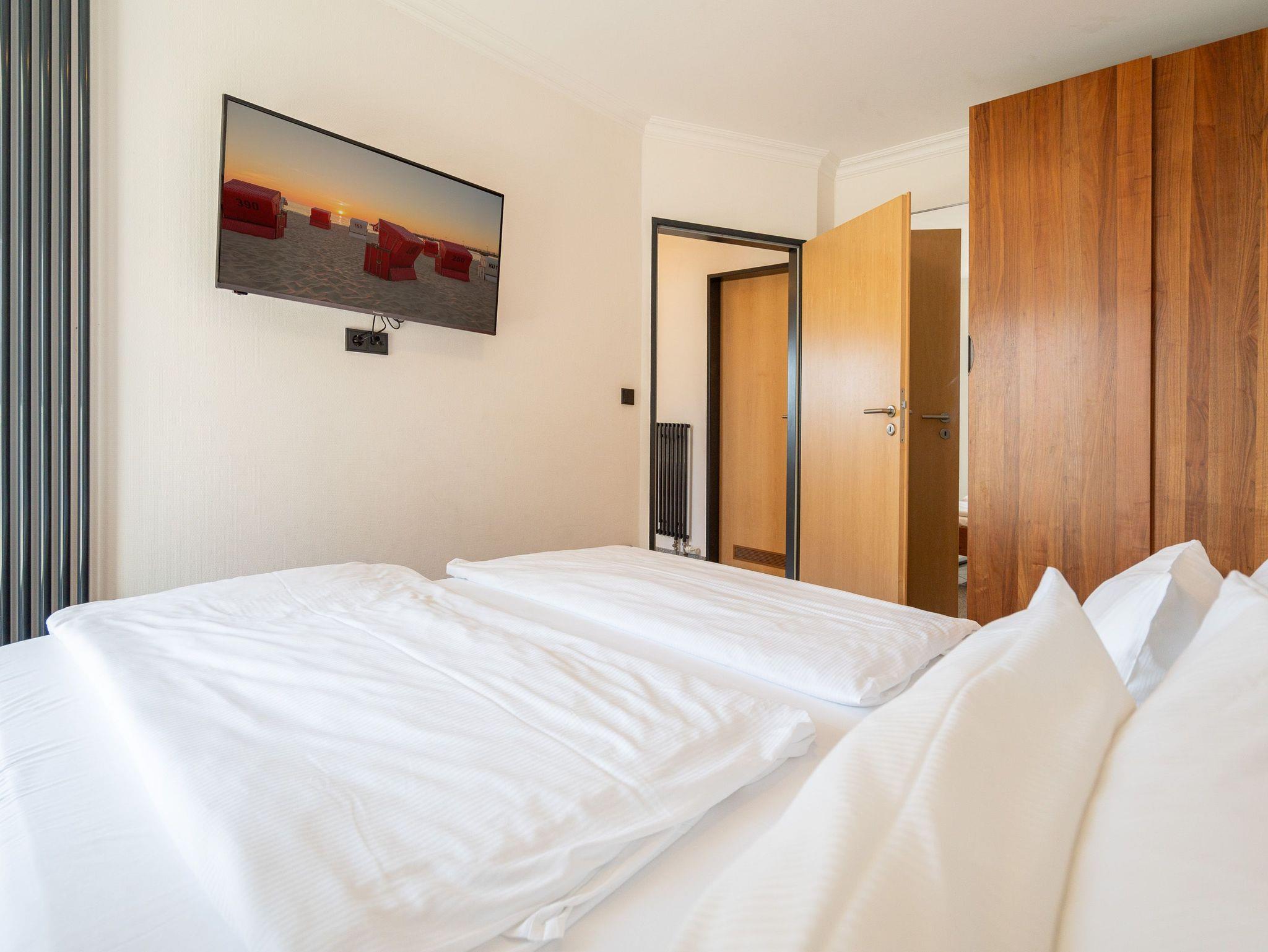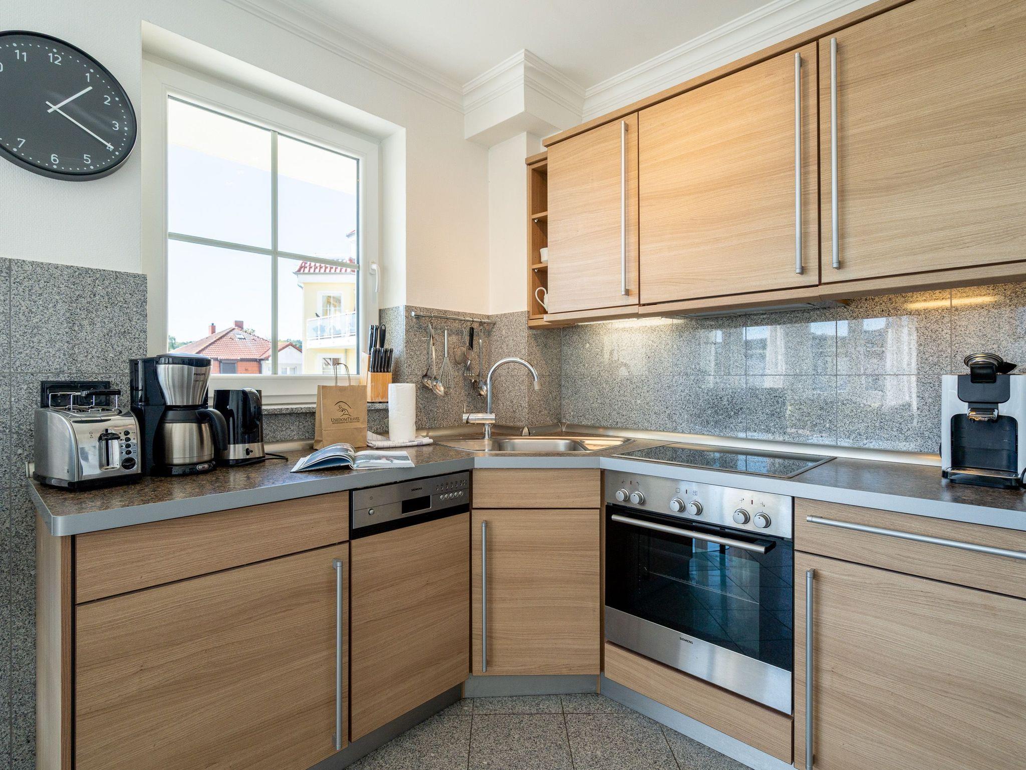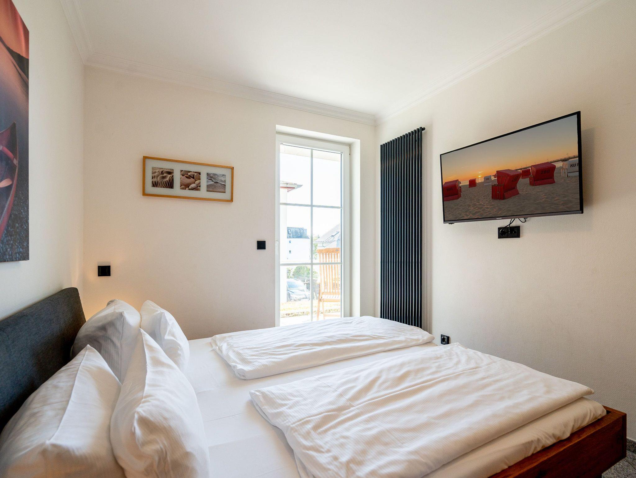 Die Ferienwohnung B06 lädt Sie ein, entspannte Urlaubstage zu verbringen (für max. 4 Personen). Geschmackvoll eingerichtet, lässt die komfortable Ausstattung keine Wünsche offen. Im 1. Obergeschoss gelegen, bietet Ihnen das Appartement ein Wohnzimmer, eine komplett ausgestattete Küchenzeile (Ceranfeld, Geschirrspüler, Backofen), zwei Schlafzimmer mit Doppelbetten, ein Duschbad und ein Gäste-WC. Ein seitlicher Balkon bietet Ihnen Blick auf die Ostsee. Für Ihren Komfort steht die Erstausstattung Wäsche (Bettwäsche [&] Handtücher) für Sie bereit. Das WLAN-Netz ist kostenfrei nutzbar.