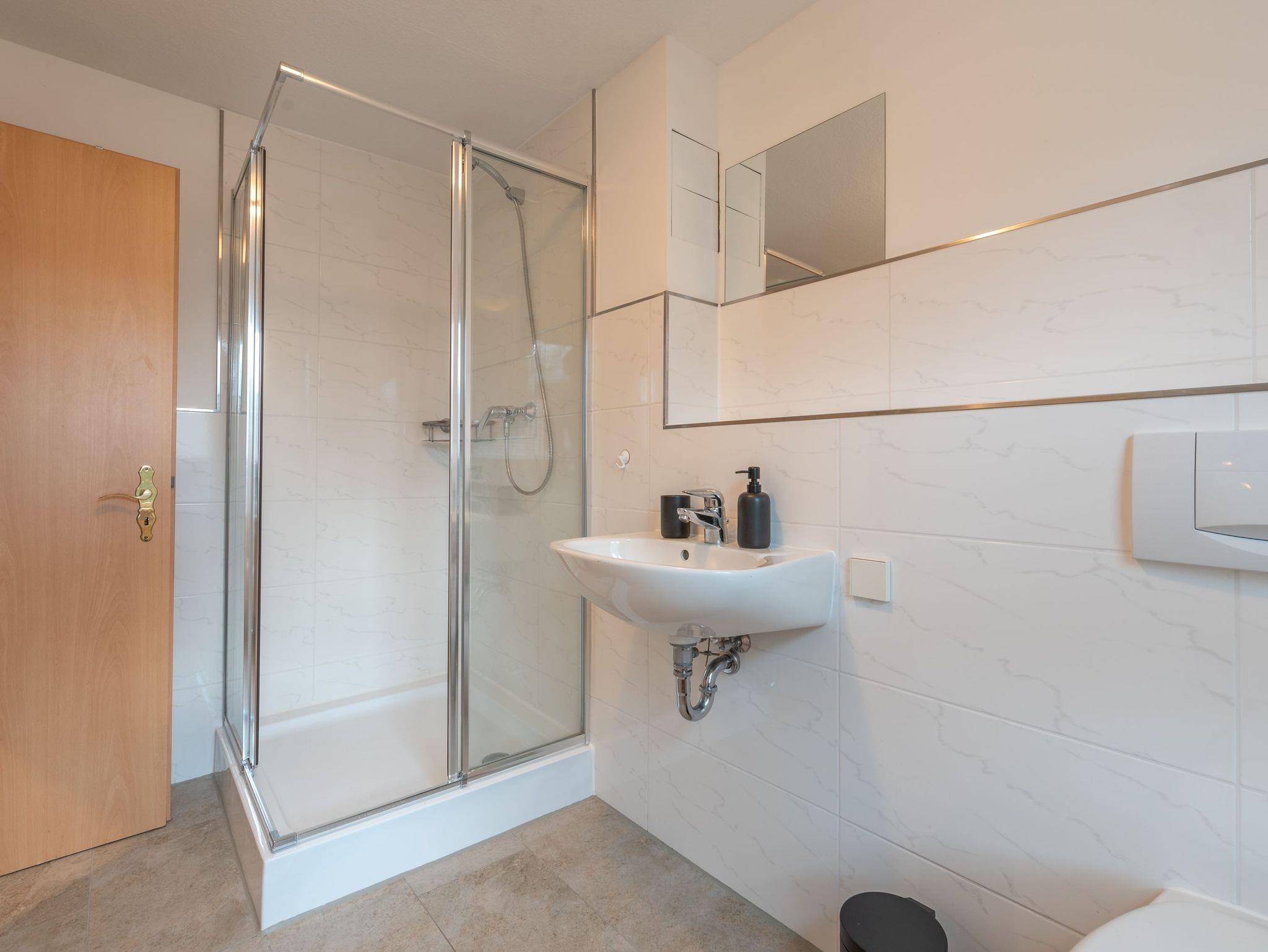 Der offene Wohn- und Schlafbereich ist mit einem bequemen Doppelbett, einem Kleiderschrank sowie einer gemütlichen Sitzecke mit Sofa, Sessel und Fernseher ausgestattet. In der separaten, kleinen Küche finden Sie einen Essplatz für zwei Personen ? perfekt für ein entspanntes Frühstück. Das Badezimmer verfügt über eine Dusche und ein WC.