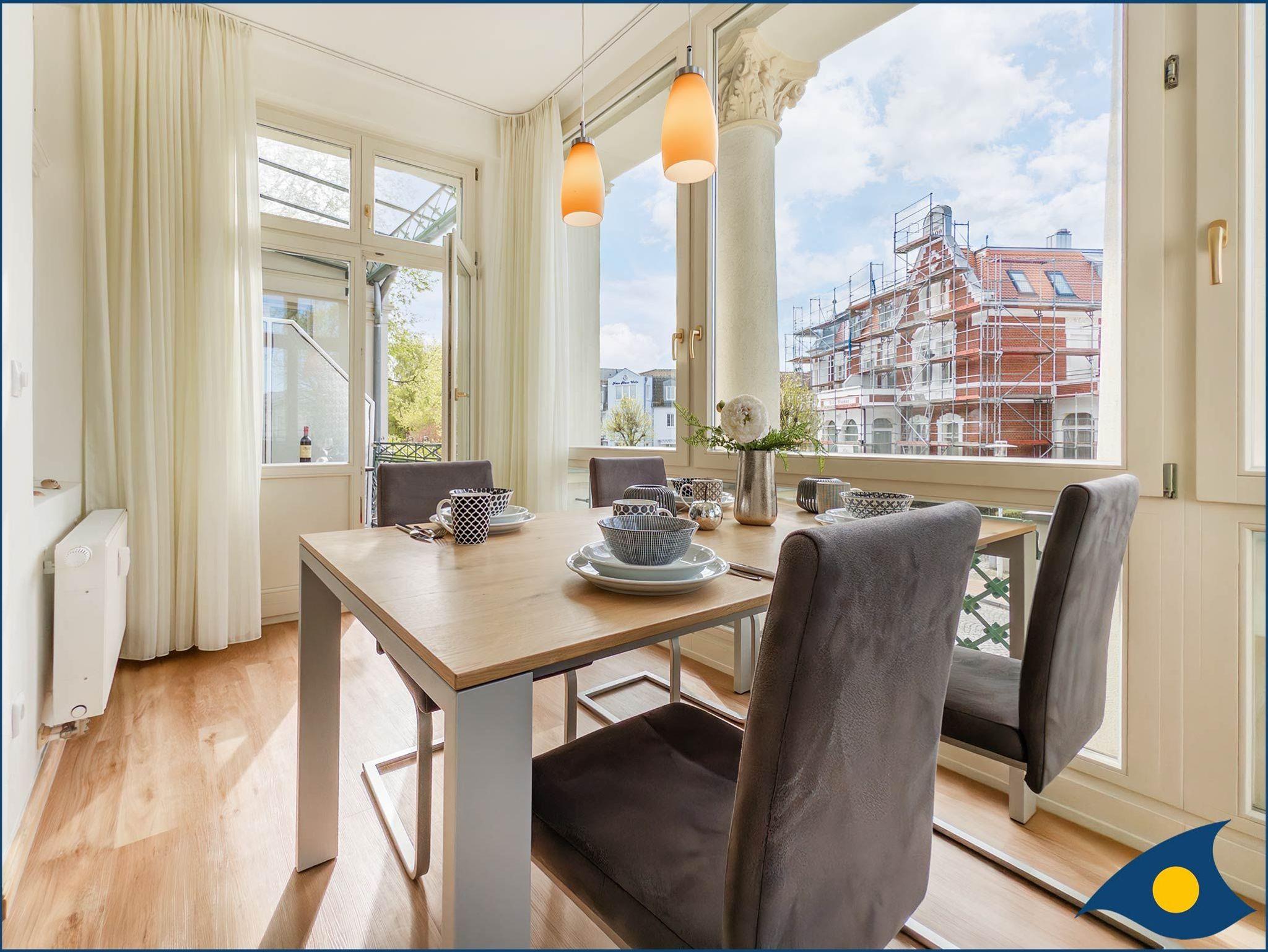 Die historische, denkmalgeschützte Ostseevilla wurde 2004 aufwendig saniert und beherbergt helle, sehr ansprechende Appartements. Unsere Wohnung befindet sich in der ersten Etage und verfügt über zwei Balkone. Zum Strand, der Promenade und vielen guten Restaurants sind es nur wenige Gehminuten entfernt.