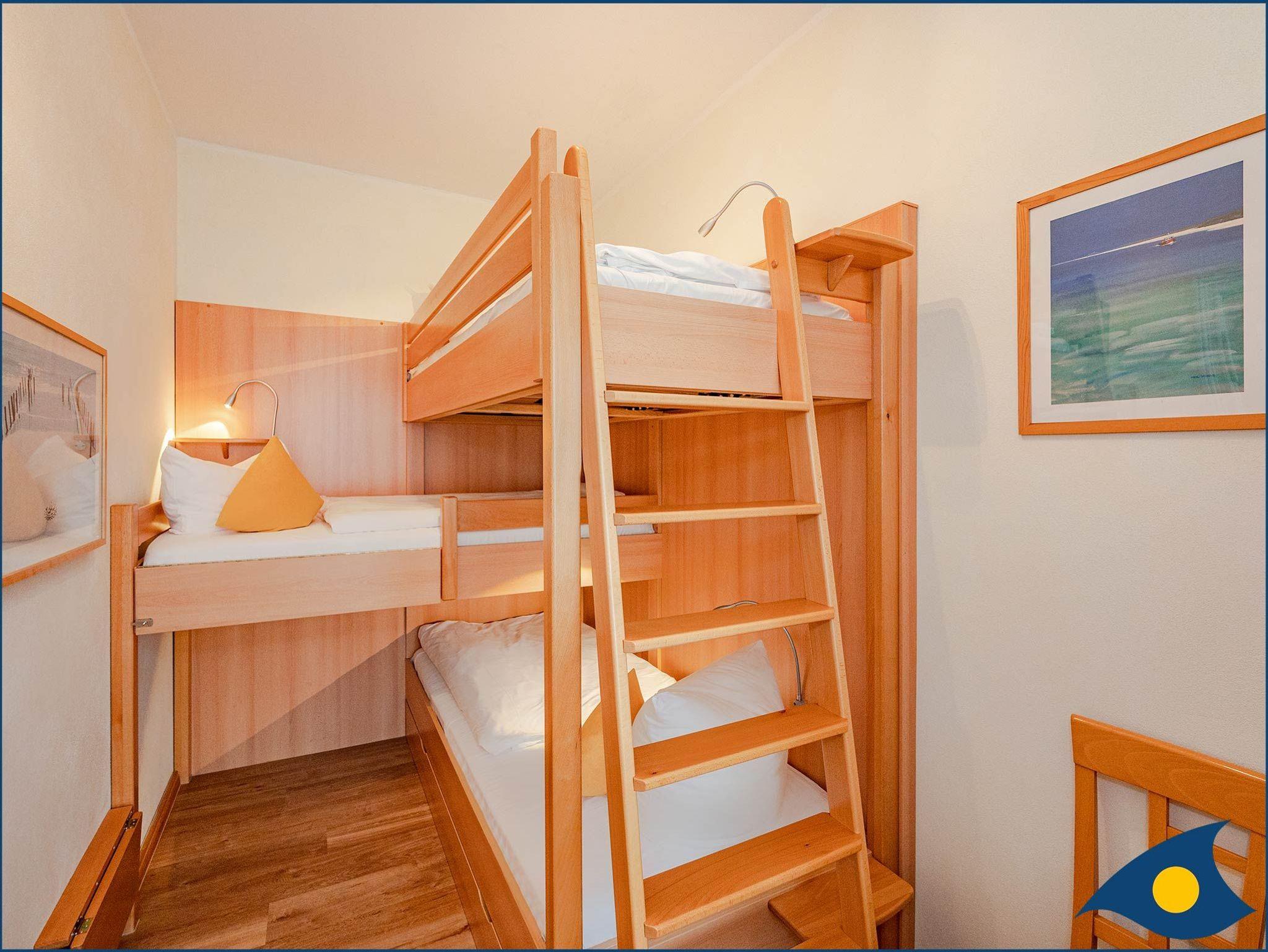 Auf 64 qm erwarten Sie ein großzügiger Wohnraum inkl. Küchenzeile sowie Veranda und Zugang zum Balkon, ein großes Schlafzimmer mit einem großzügigen Doppelbett und TV, ein kleines Schlafzimmer mit Etagenbett sowie ein Badezimmer mit einer Badewanne.