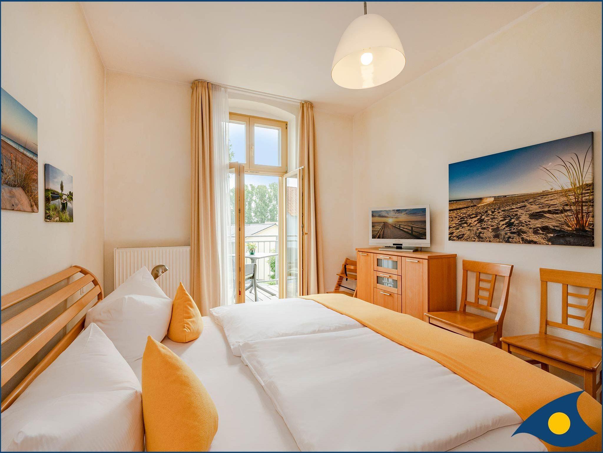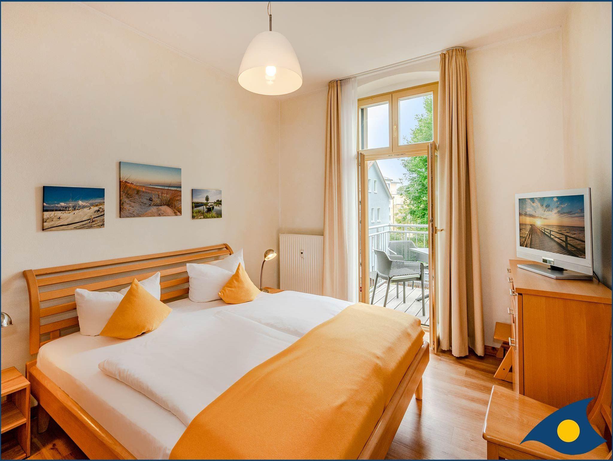 In der ersten Etage der Ostseevilla begrüßt Sie ein lichtdurchflutetes, freundliches Traumappartement mit zwei Balkonen.