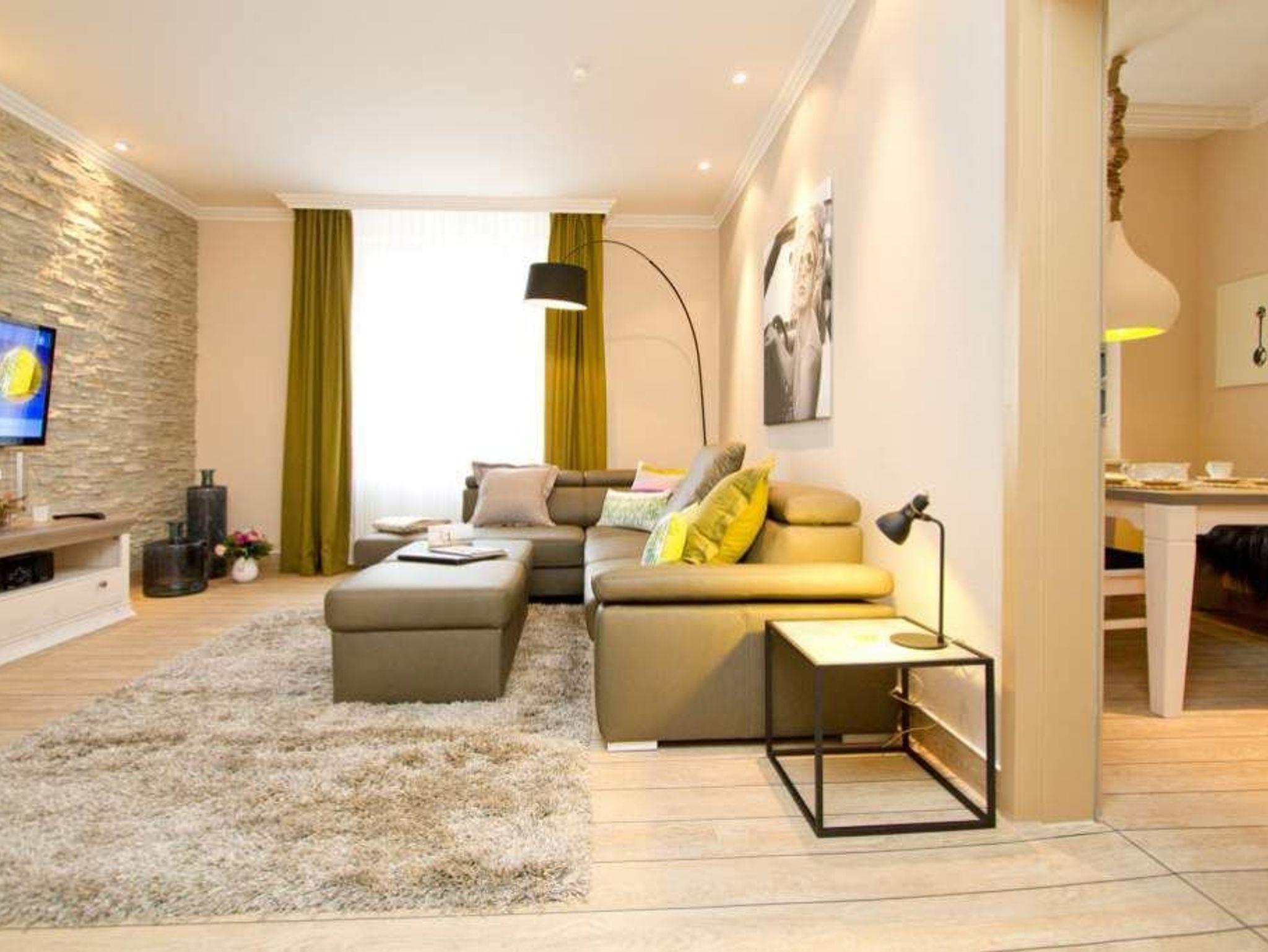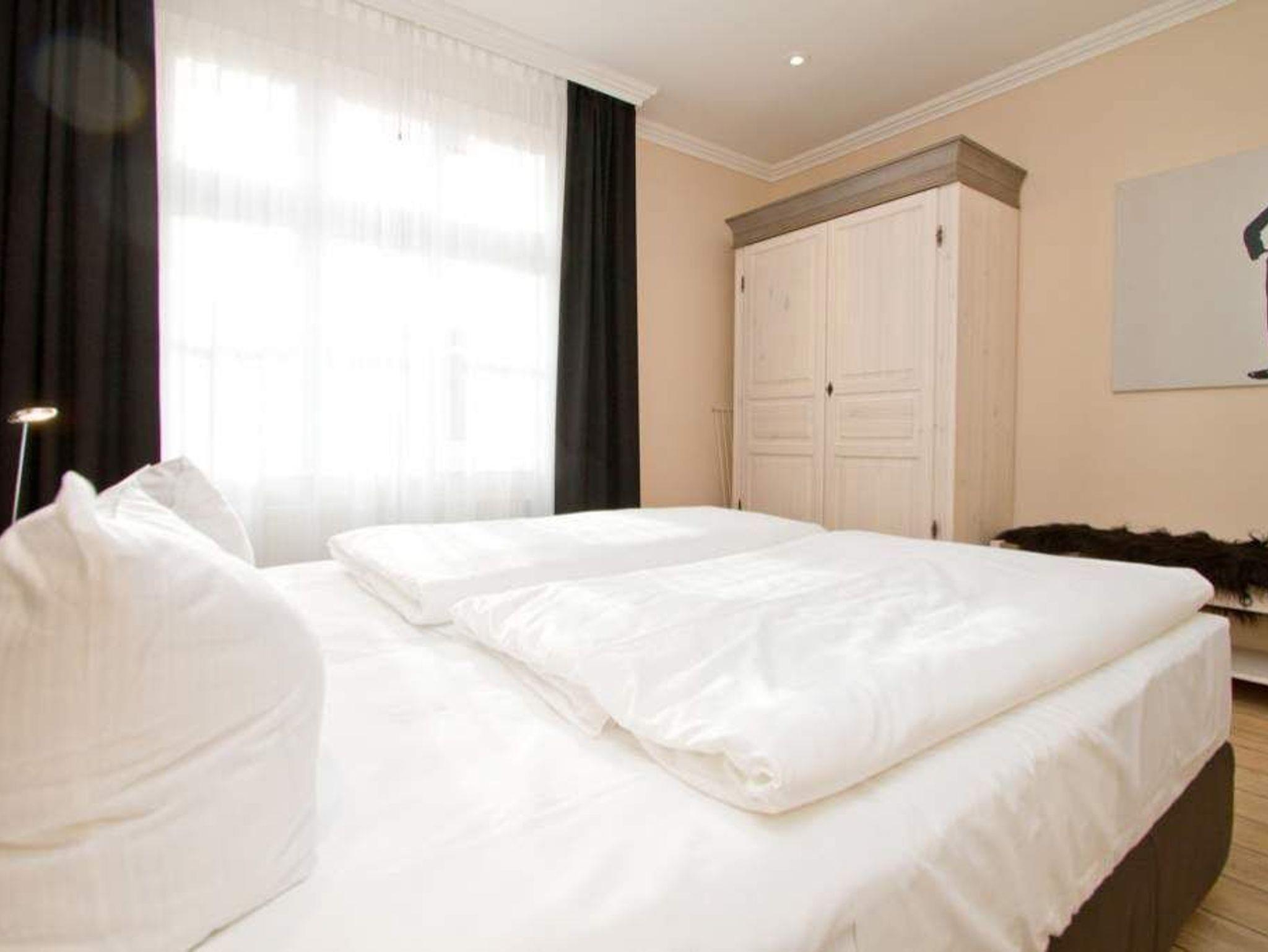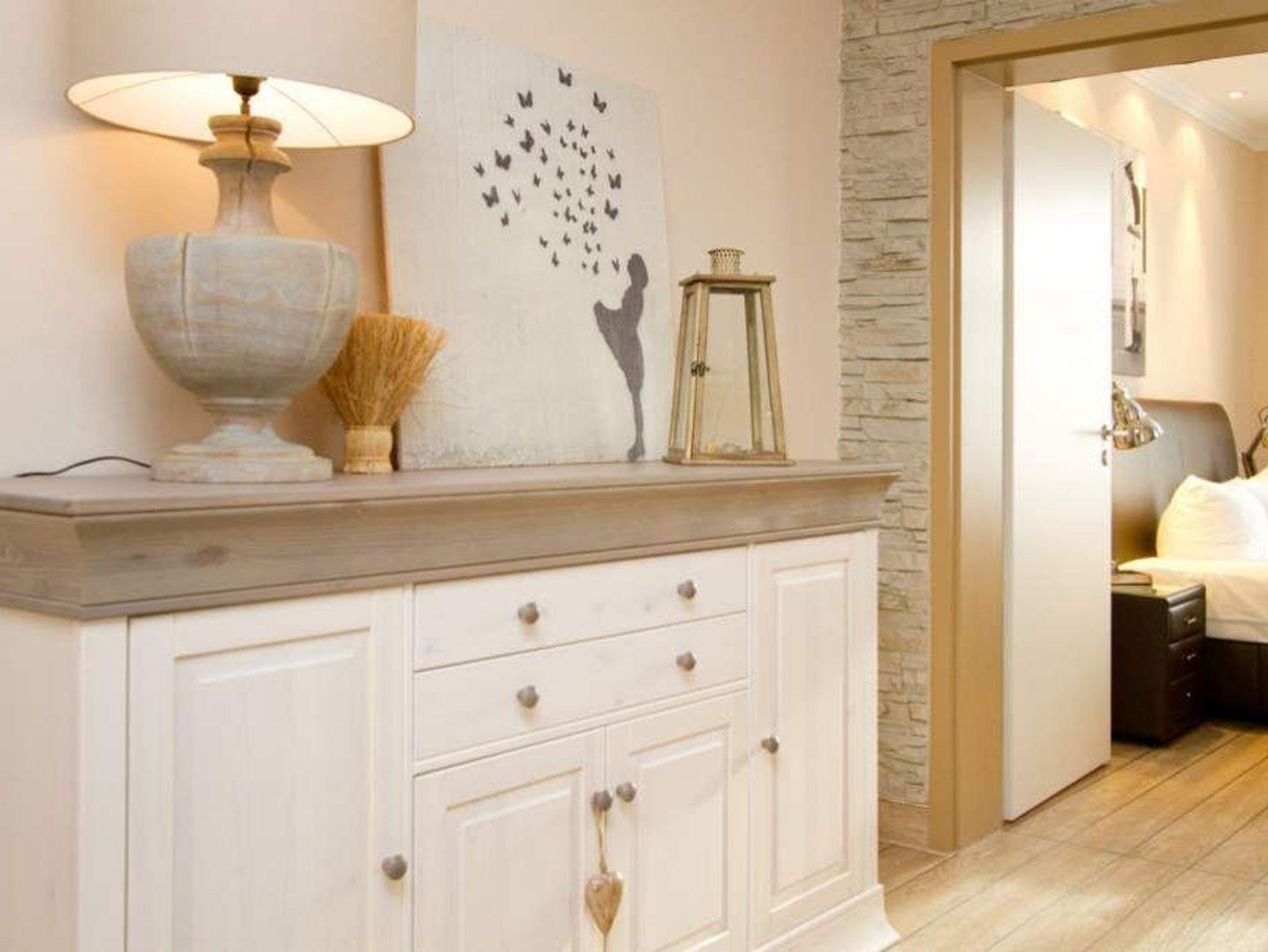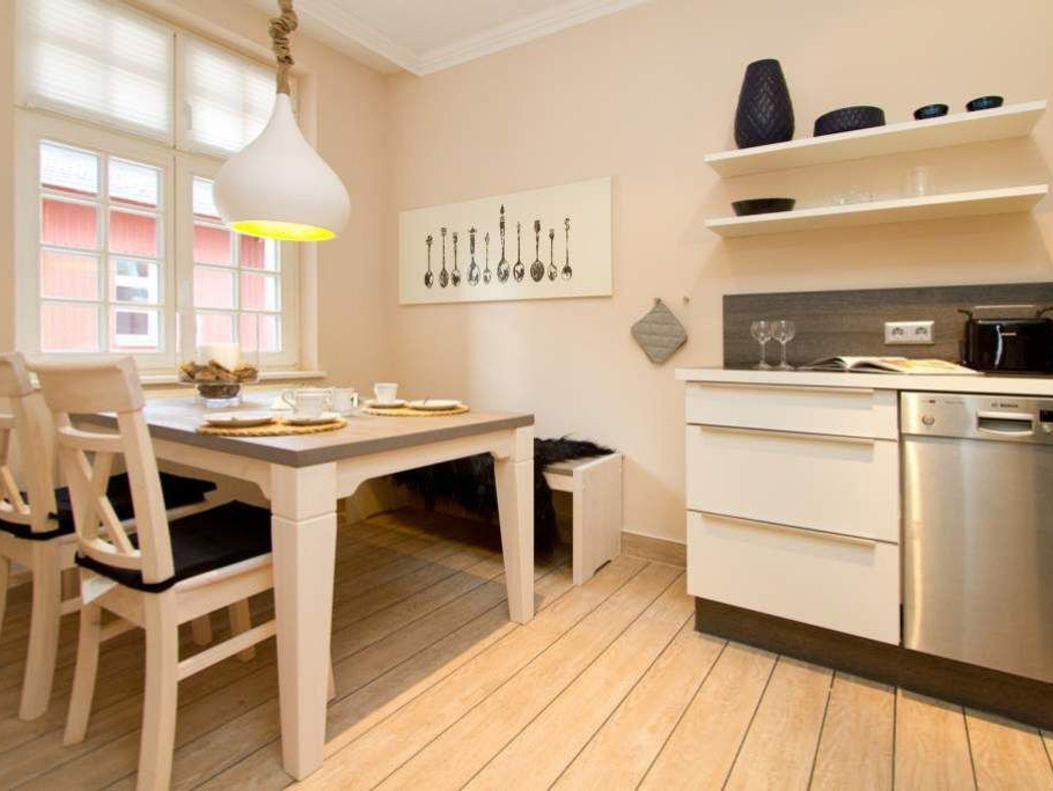 Geschmackvolle Dekorationen, gekonnt abgestimmte Farben und Stoffe und eine hochwertige Möblierung erwarten Sie in unserer neu gestalteten 3-Raum-Ferienwohnung im 1. OG (75 qm für 4 Erwachsene und ein Kleinkind bis 3 Jahre im Kinderreisebett). Das helle Wohnzimmer mit Ledersitzgruppe [&] Flat-TV schließt sich an die separate Küche mit schönem Essplatz an. 2 Schlafzimmer mit Boxspringbetten 1,80m x 2,00m ( davon 1x mit Flat-TV) und ein Bad mit Dusche und WC ergänzen die Wohnung. Pkw-Stellplatz (Nr.26) unten in der Doppelparker Garage (max. PKW-Höhe 1,50 m, PKW Länge max 5,00m/ Gewicht max. 2t). Auf Wunsch stellen wir für unsere kleinen Gäste ein Kinderreisebett (ohne zusätzliche Matratze [&] Bettzeug) und einen Kinderhochstuhl ( gegen einen Aufpreis) zur Verfügung. Für Ihren Komfort sind die Betten bei der Anreise bezogen und Handtücher liegen bereit.