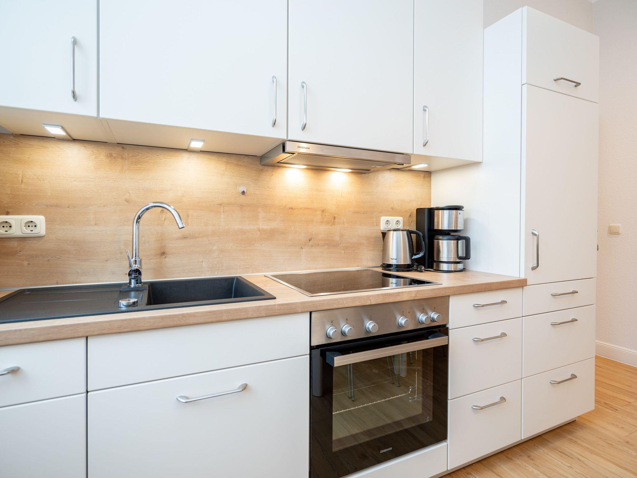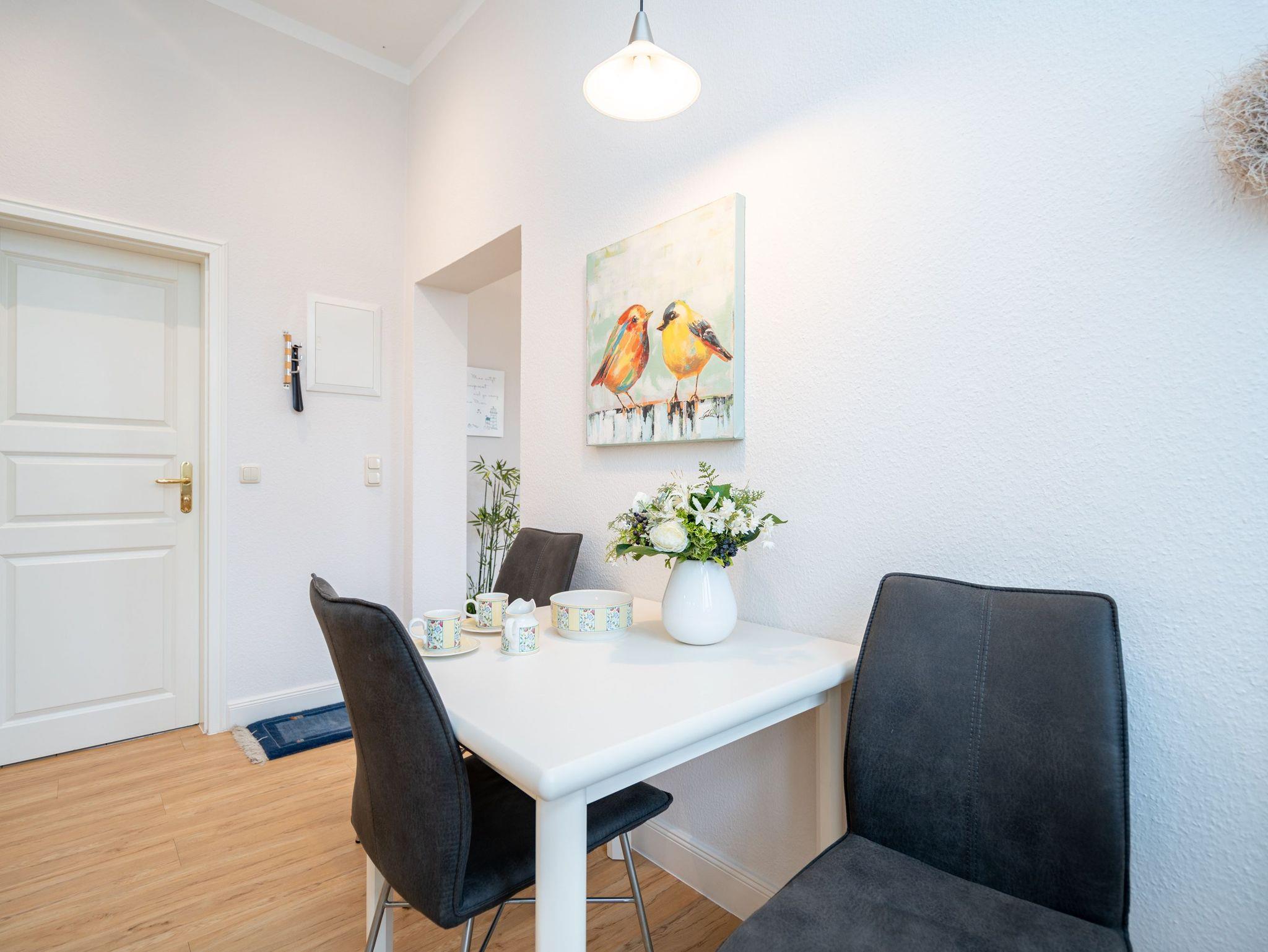 Die stilvoll eingerichtete Ferienwohnung im Hochparterre der Villa Belvedere gestaltet Ihren Urlaub vom Moment Ihrer Ankunft komfortabel und erholsam zugleich. Es verfügt über einen Wohnbereich, eine komplett ausgestattete separate Küche, ein Schlafzimmer mit Doppelbett und ein Bad mit Dusche ( für max. 2 Personen sowie 1 Kleinkind bis 3 Jahre im Kinderreisebett [&] 1 Kind bis 15 Jahre). Ein kostenloser Stellplatz befindet sich direkt an der Villa. Auf Wunsch stellen wir für unsere kleinen Gäste ein Kinderreisebett (ohne zusätzliche Matratze [&] Bettzeug) und einen Kinderhochstuhl ( gegen einen Aufpreis) zur Verfügung. Für Ihren Komfort sind die Betten bei der Anreise bezogen und Handtücher liegen bereit (Erstausstattung).