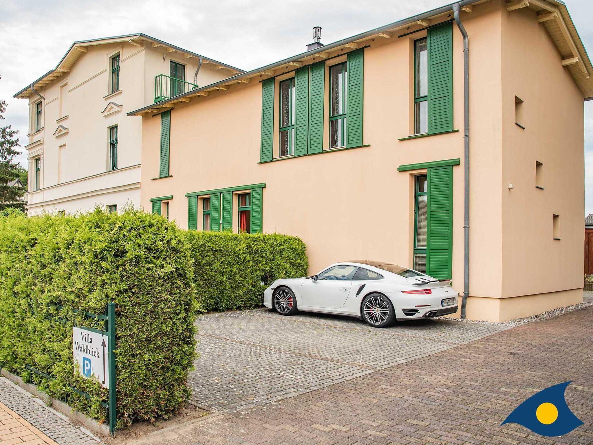Die Villa Waldblick besticht durch ihre originalgetreu sanierte Fassade im Bäderstil. Fast alle Balkone sind nach Süden ausgerichtet, die Wohnungen sind hell und sonnig, kein Baumbestand verdunkelt die Räume. Die Appartements wurden stilgerecht, liebevoll und hochwertig eingerichtet. Kleine Accessoires sorgen für individuelle Gemütlichkeit. Großzügige Landhausküchen mit Essecken laden in einigen Wohnungen zum Beisammensein ein. Die Wohnung 3 verfügt über einen modernen Holzkamin. Der Grillplatz im Garten kann von allen Mietern genutzt werden. Zu jeder Wohnung gehört ein PKW-Stellplatz.
