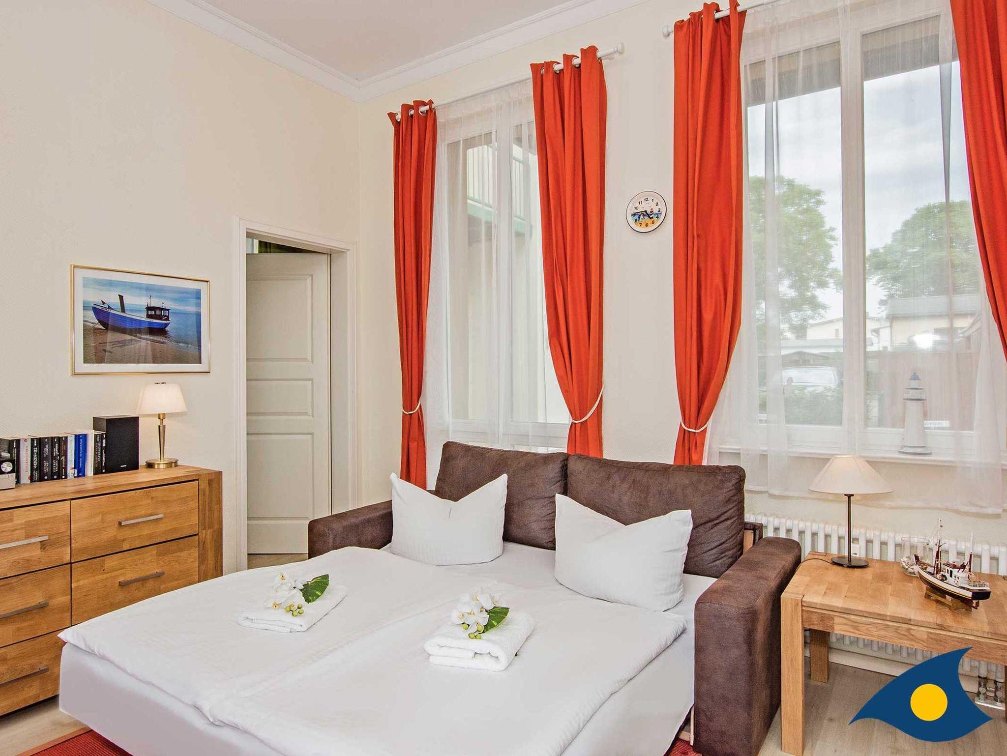 Die hochwertige Schlafcouch (Dauerschläfer, Liegefläche ca. 1,65 m x 2,00 m) im Wohnzimmer kann auf Wunsch für 1?2 weitere Personen aufgebettet werden, auch der Essplatz bietet Platz für 4 Personen, sodass dem Familienurlaub nichts mehr im Wege steht.