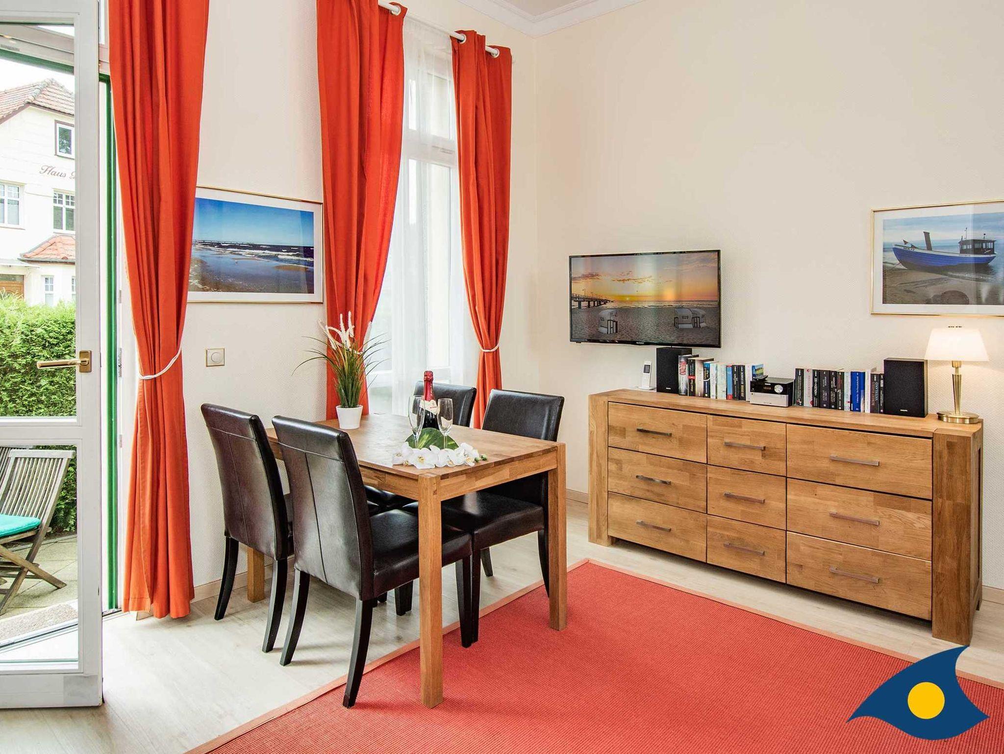 Die großzügige und gepflegte, für bis zu 4 Personen geeignete, sonnige 2-Zimmer-Wohnung mit eigener Terrasse befindet sich im EG/Hochparterre einer ca. 2003 hochwertig sanierten Villa. In schöner und ruhiger Wohnlage des beliebten Seebades Bansin, fußläufig ca. 3?4 min von der Promenade bzw. vom Strand entfernt.