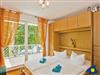 Dieses moderne, liebevolle und mit vielen maritimen Gegenständen eingerichtete Einraumappartement in der 3. Etage verfügt über ein komfortables Schrankbett mit Federkernmatratzen und eine sehr gut ausgestatteten Küchenzeile. In zwei Schaukelstühlen sitzend genießen Sie aus dem Glaserker den Blick auf Meer und Strand. Vom Balkon aus reicht der Blick bis zum idyllisch gelegenen Schloonsee mit den vielen Wildenten, Schwänen und anderem Federvieh.