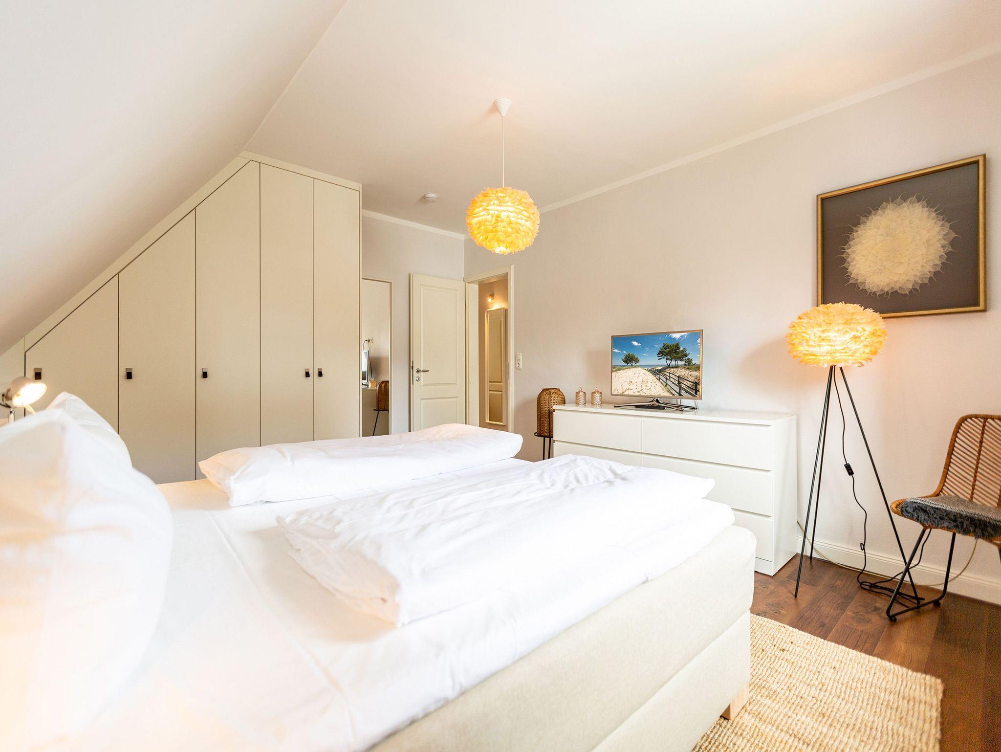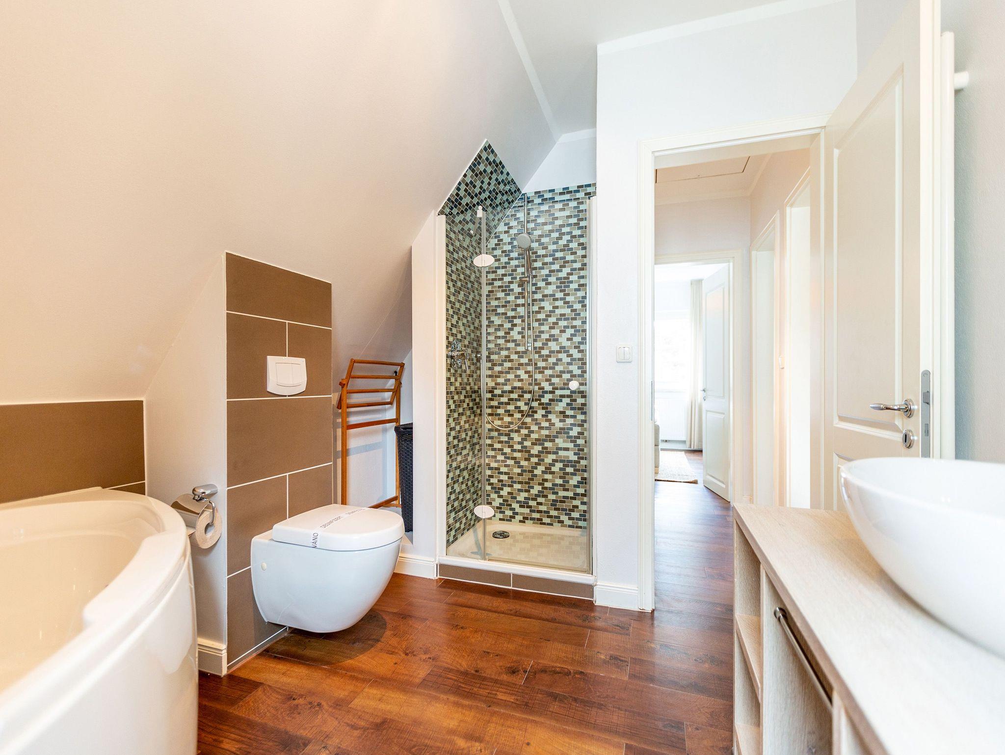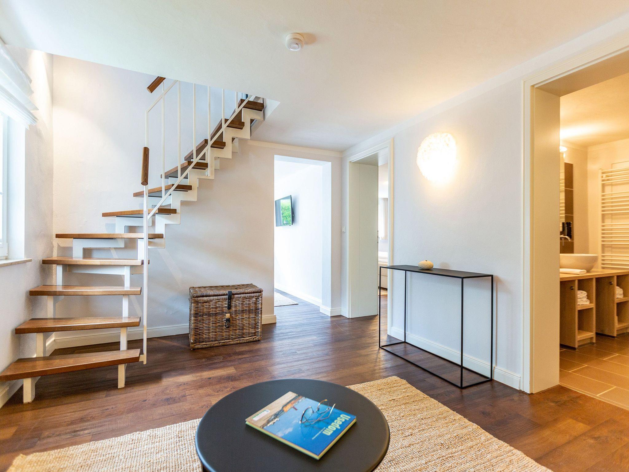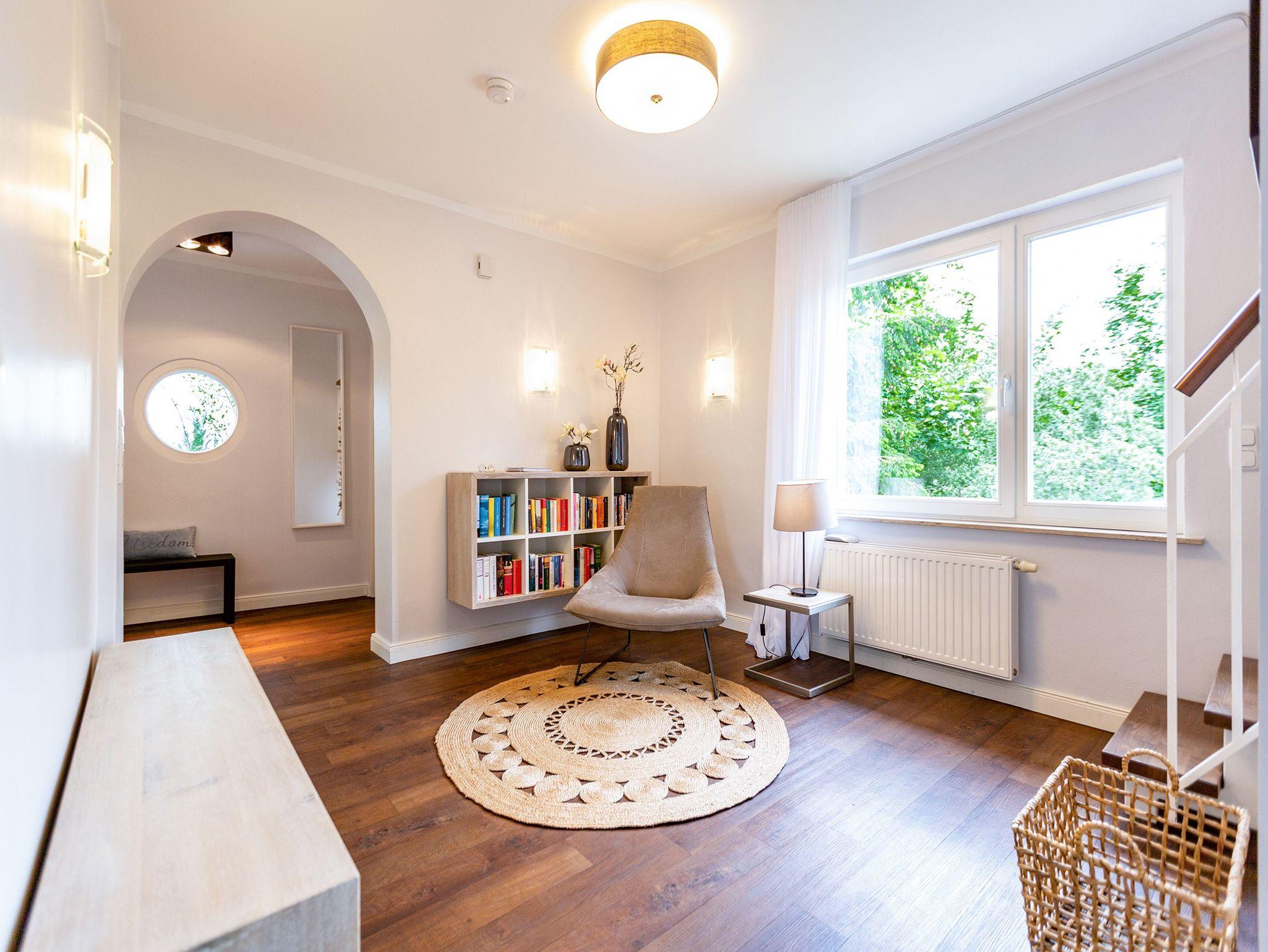 Ob Sie zu zweit oder in Familie reisen ? im Ferienhaus Bansin Das Moderne finden Sie eines ganz bestimmt ? genug Platz! Auf 170 qm erleben Sie in Ihrem eigenen Domizil alle Annehmlichkeiten für einen tollen exklusiven Usedomurlaub. Das Haus mit Garten wurde von einer Innenarchitektin mit einer wohltuenden klaren Linie geprägt. Unterstützt durch ausgesuchte Details, hochwertige Materialien wie Glasmosaikfliesen aus Frankreich, extra angefertigte Holzwaschtische mit Villeroy und Boch Keramik ist dieses Domizil perfekt abgestimmt für die schönste Zeit des Jahres! Natürlich fehlen Kamin und die hauseigene Sauna nicht. 2 Pkw-Stellplätze befinden sich auf dem Grundstück.