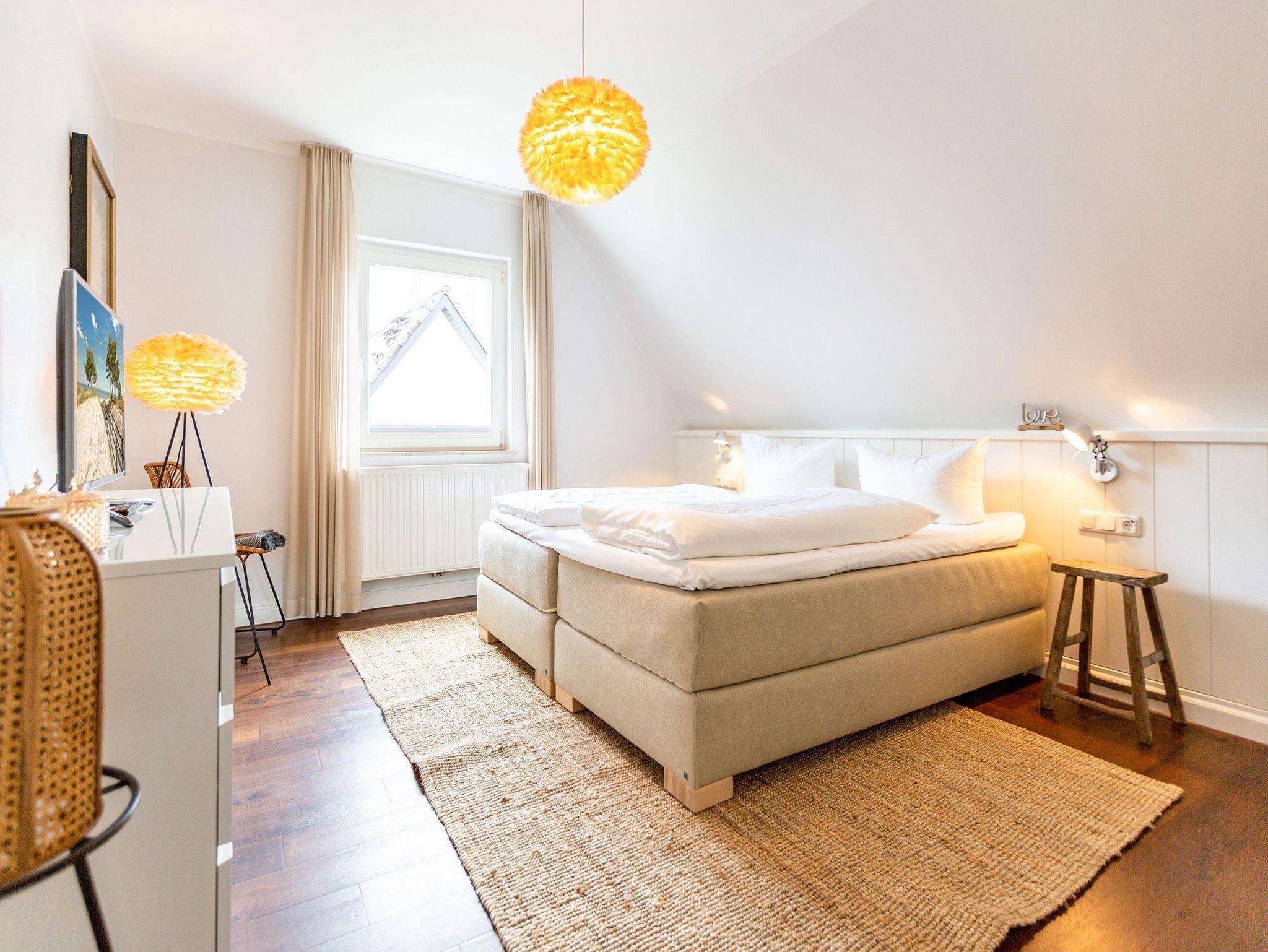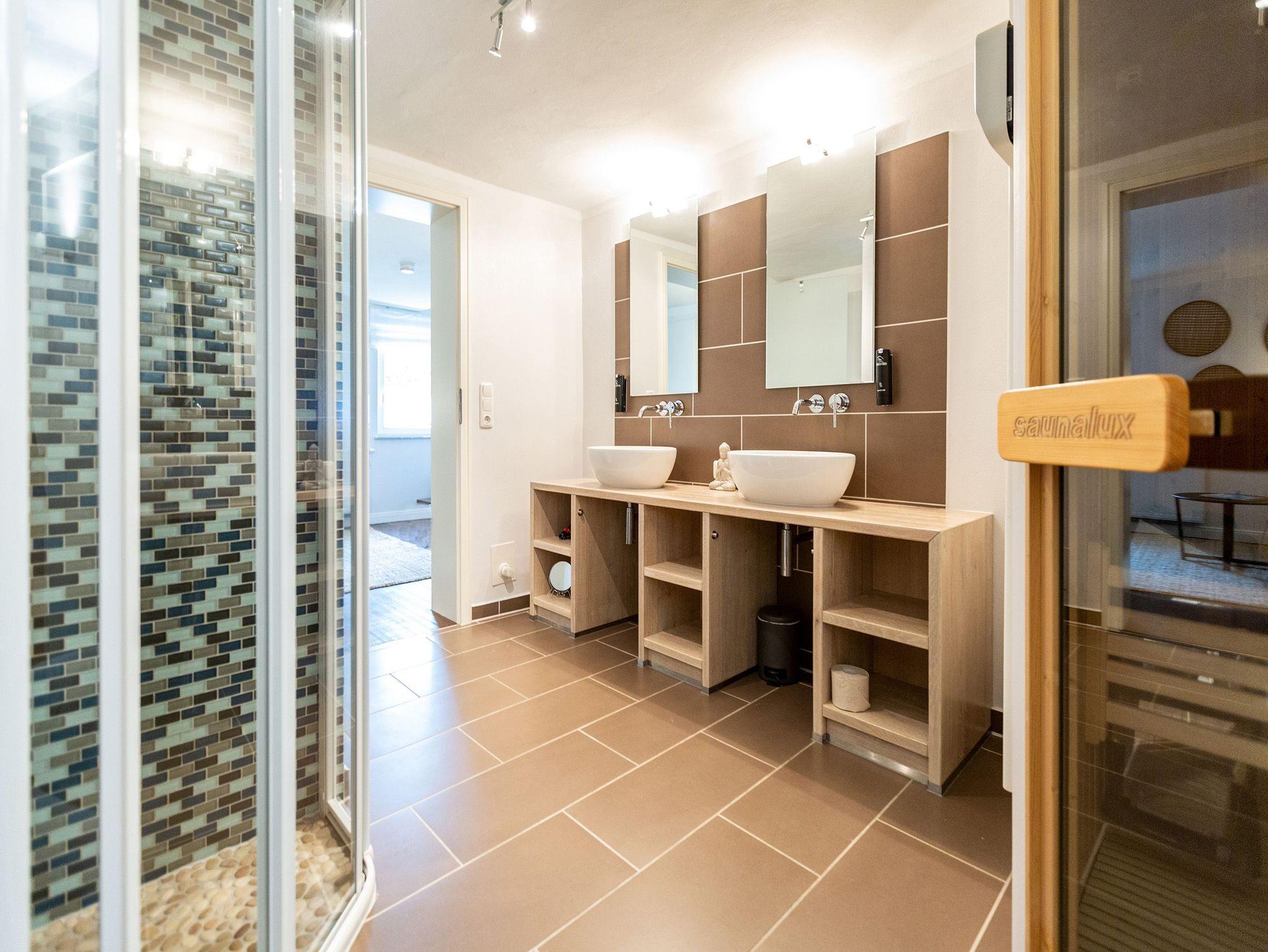 Eintreten und sofort wohlfühlen! Zentral gelegen, aber dennoch ruhig, bietet dieses Ferienhaus auf 170?m² modernen Wohnkomfort auf drei Ebenen. Stilvoll eingerichtet und mit viel Liebe zum Detail dekoriert, eignet es sich ideal für Paare, Familien oder Freunde (bis zu 8 Personen und 1 Kleinkind bis 2 Jahre). Im Erdgeschoss erwarten Sie der gemütliche Wohnbereich mit Kamin, eine sehr gut ausgestattete Küche, ein Esszimmer und eine Leseecke. Von der angrenzenden Südterrasse können Sie entspannte Stunden bis in den Abend genießen. Vier Schlafzimmer mit hochwertigen Boxspringbetten (drei 1,80?m x 2,00?m, eines 1,60?m x 2,00?m), zwei Bäder mit Dusche und Badewanne sowie ein Gäste-WC sorgen für großzügigen Komfort. Ein besonderes Highlight ist der Saunabereich mit Relaxzone im Untergeschoss, von dem Sie direkten Zugang zum Garten haben ? perfekt für ruhige Stunden im Grünen. Für Ihren Komfort ist die Bettwäsche bereits bezogen und Handtücher liegen bereit. Babyreisebett und Hochstuhl können auf Wunsch bestellt werden.