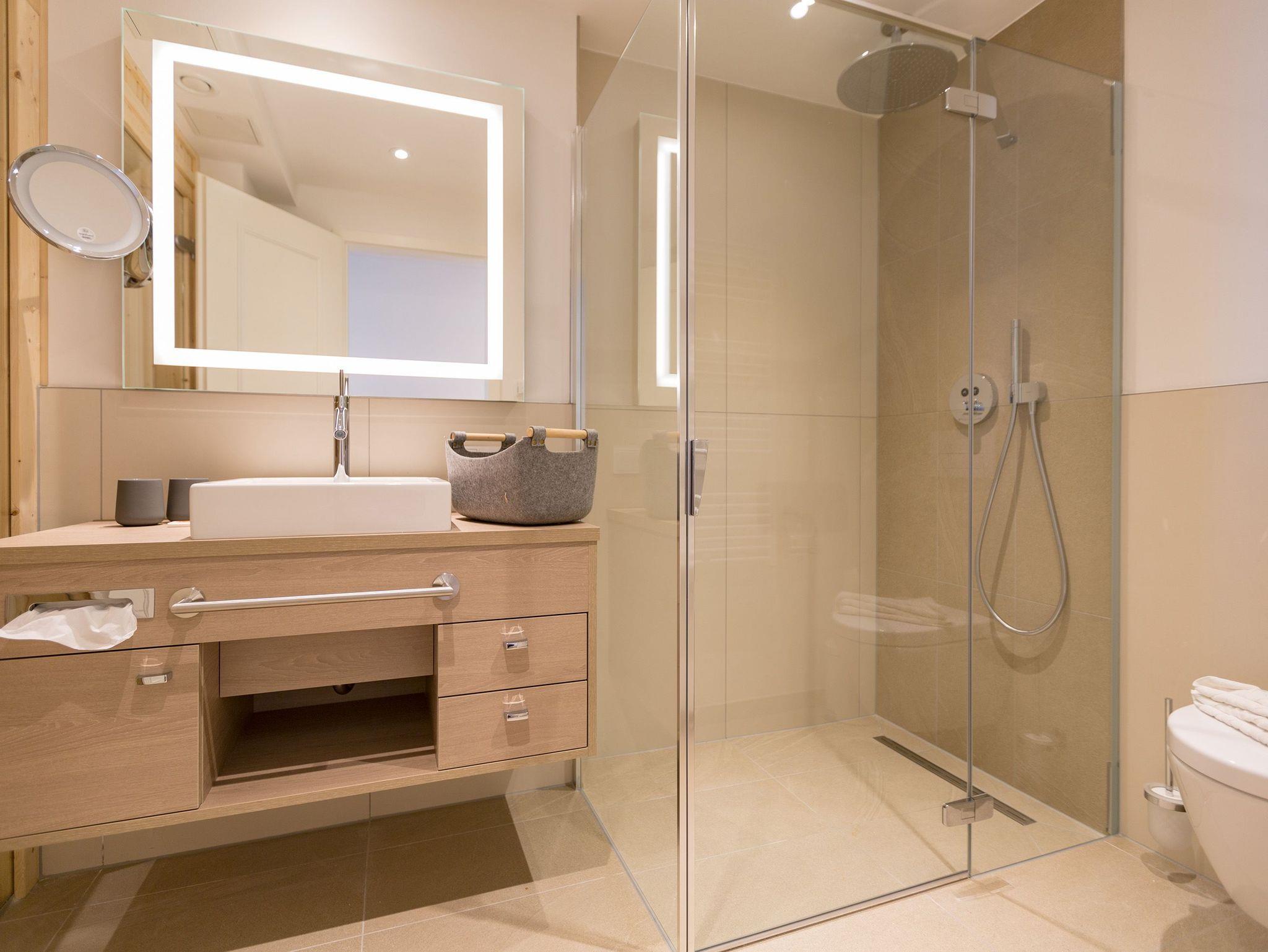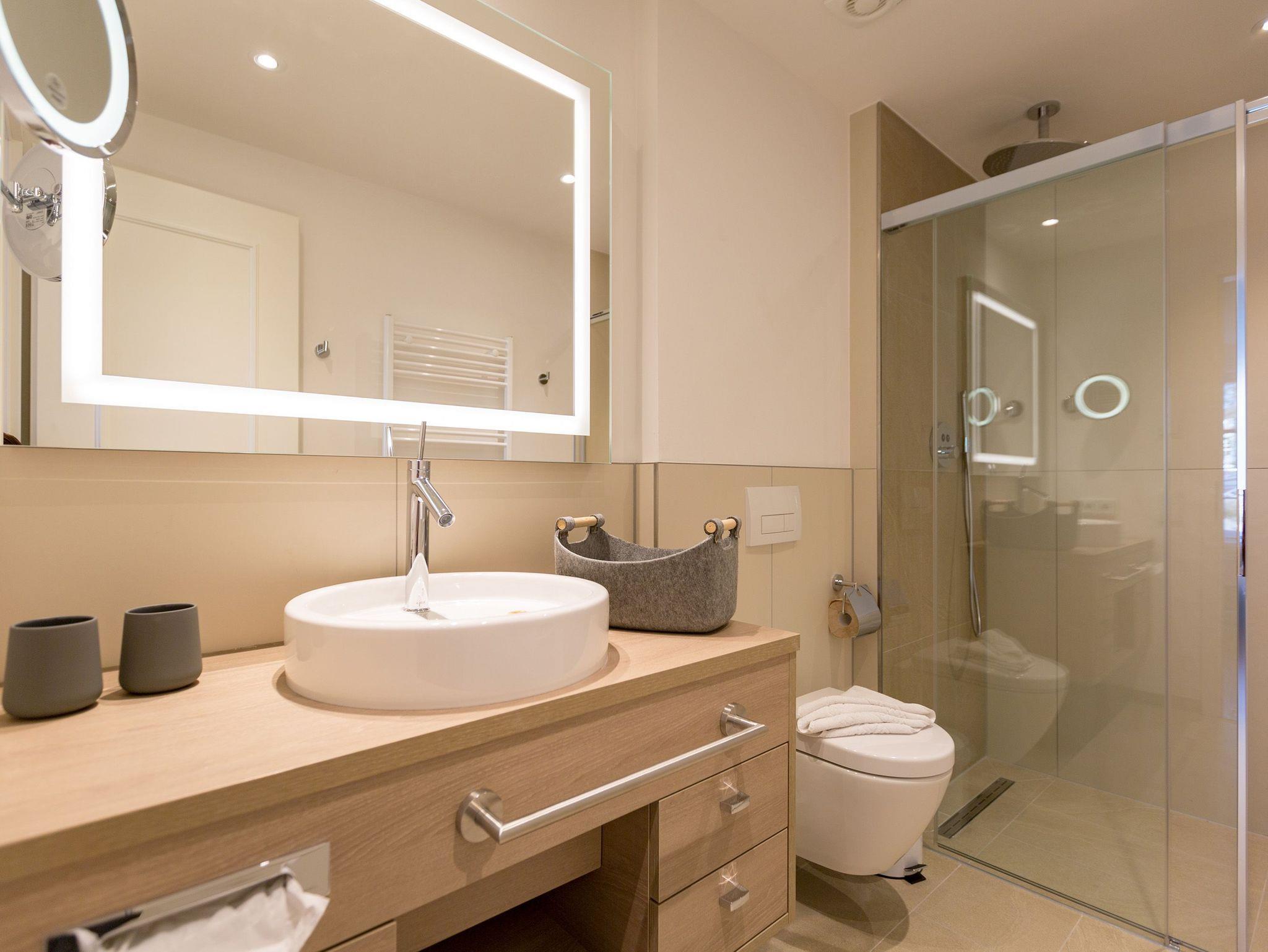Alles aus einem Guss in diesem wunderschönen Drei-Zimmer-Feriendomizil stimmt einfach alles. Panorama-Meerblick, stylisches Wohndesign und Wohnkomfort für bis zu vier Personen, ein Kleinkind bis drei Jahre (im Kinderreisebett) und das geliebte Haustier bietet dieses Appartement im 1. Stock auf 81 Quadratmetern. Hier können und brauchen Sie sich am Blick über das weite Blau der Ostsee gar nicht satt sehen. Ob morgens, wenn die Sonne aus dem Meer aufsteigt und die Wasseroberfläche glitzert als lägen tausende Diamanten darauf oder abends, wenn der Himmel über dem Horizont sich in den zartesten Rosatönen färbt in diesem Appartement wird Ihr Urlaub zu einem ganz besonderen Auszeiterlebnis. Denn neben dem Meerblick-Balkon (14 Quadratmeter groß), auf dem Sie auch wunderbar sitzen können, hat es eine erlesene Einrichtung zu bieten. Naturmaterialien wie Holz und Stein, ein harmonisches Farbkonzept und aufeinander abgestimmte Möbel sorgen für eine entspannte Atmosphäre. Der Gas-Kamin schafft an kühlen Tagen kuschelige Flammenspiele. Der große Flat-TV und die bluetooth-Hi-Fi-Anlage gegenüber der gemütlichen Sofa-Sitzgruppe bieten Home-Entertainment vom Feinsten. Viel Raum und Platz haben Sie in dem großen und offenen Wohn-Esszimmer. Genießen Sie gemeinsame Dinner am Essplatz gleich neben der frei stehenden Kochinsel. Die Küche schließt sich nahtlos und ebenso offen an das Wohnzimmer an. Hier finden Sie alles, was Sie zum Kochen, Braten oder Backen brauchen. Hochwertige Markengeräte und erlesenes Geschirr die Küche ist vollausgestattet. Zwei Schlafzimmer bieten traumhaften Nächten wundervolle Bequemlichkeit. Boxspringdoppelbetten (jeweils 1,80 m x 2,00 m) sorgen für erholsamen Schlaf. Jedes Schlafzimmer verfügt über einen Flat-TV und einen großen Schrank mit viel Ablagemöglichkeiten. Außerdem verfügt die Wohnung über zwei Badezimmer mit Regendusche, Waschtisch und WC. Wellness-Liebhaber kommen in der Wohnung Nummer 1 ebenfalls auf ihre Kosten. Eine eigene Finnische Sauna heizt Ihnen im Masterbad an ungemütlichen Tagen und Abenden ordentlich ein. Lassen Sie los und entspannen Sie einfach drauf los! Wir haben für Sie die Betten bereits bezogen und Handtücher für Sie bereit gelegt. In der Wohnung befindet sich ein Hauswirtschaftsraum mit einem Waschtrockner. Es gibt einen Safe. Und das WLAN ist kostenfrei. In der modernen Tiefgarage ist für Sie der Stellplatz Nr. 1 im Doppelparker oben (max. Höhe 1,90m, max. Länge 5,10 m, max. Breite 2,50 m, max. Last 2.600 kg) reserviert.