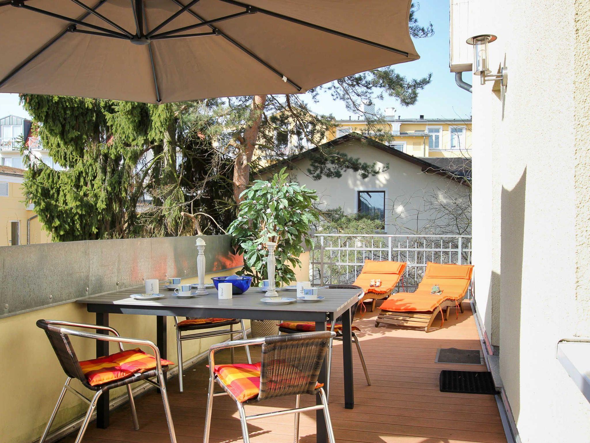 Für gemütliche Stunden im Freien bietet die geräumige Terrasse auf dem Dach des Anbaus Sonne bis in den Abend, teilweise mit Blick auf den Schloonsee.
