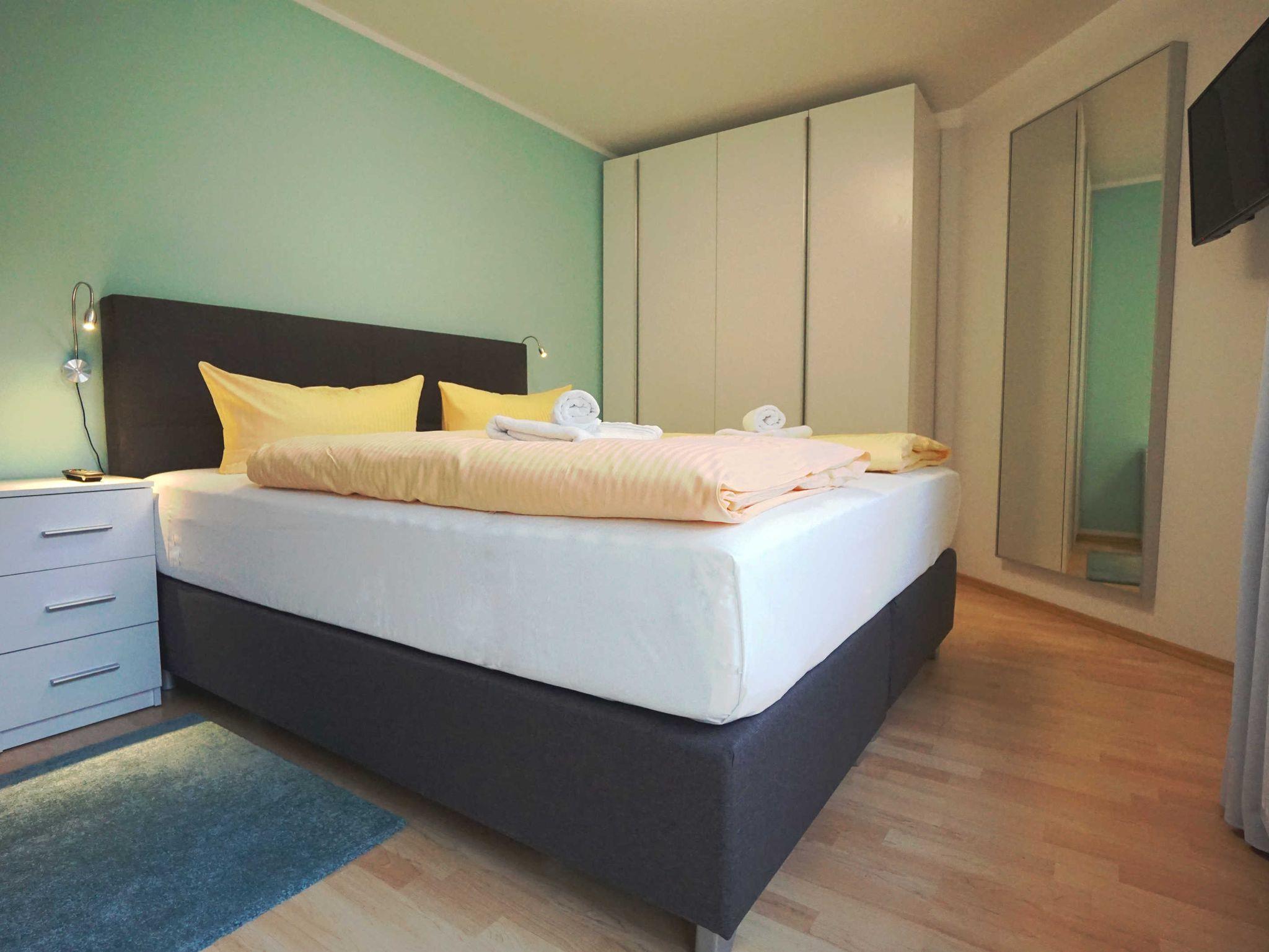 Das modern und neu eingerichtete Appartement (letzte Renovierung 2020) verfügt über ein Wohnzimmer mit moderner Küchenzeile, ein Schlafzimmer mit Boxspringbett und ein Badezimmer mit Dusche und WC. Die Schlafcouch im Wohnzimmer kann für zwei Personen aufgebettet werden.