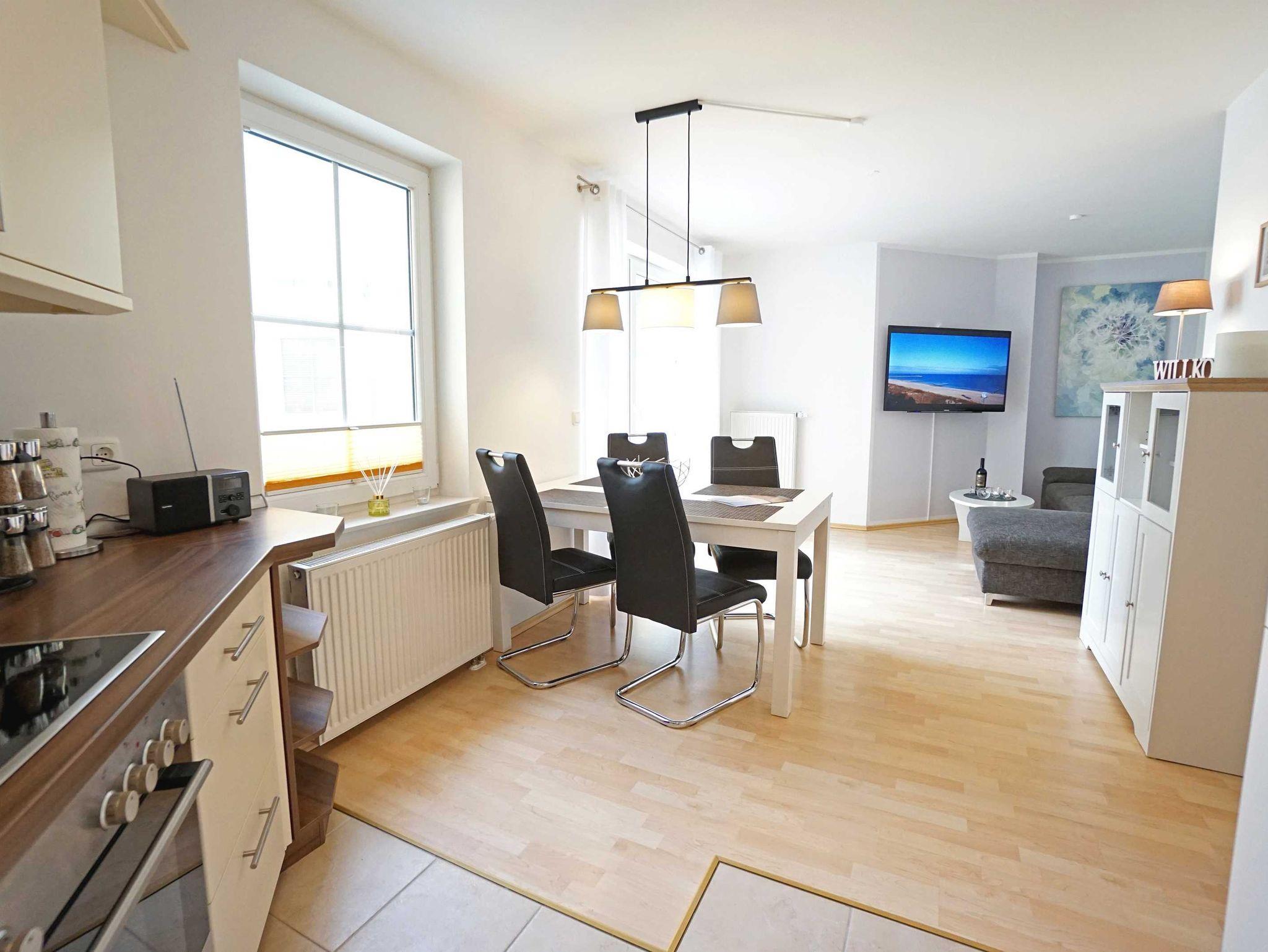 Zu dieser schön gelegenen 2-Zimmer-Ferienwohnung im 1. Obergeschoss der Dünenresidenz gehören zwei Balkone.