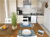 Der Wohnbereich mit gemütlicher Sitzecke, Flachbildfernseher und DVD-Player lädt zum Entspannen und Ausklingen des Urlaubstages ein. Die voll ausgestattete Küche ergänzt die Annehmlichkeiten dieses Appartements mit allem, was das Herz begehrt: Backofen, Cerankochfeld, Kühlschrank mit Gefrierfach, Spülmaschine, Toaster, Wasserkocher, Kaffeemaschine sowie einem Essplatz für 4 Personen. Das Schlafzimmer ist mit einem bequemen Doppelbett (180 x 200 cm) und einem Kinderbettchen (140 x 60 cm) für ein Kleinkind bis 3 Jahre ausgestattet. Die Schlafcouch im Wohnbereich lässt sich im Handumdrehen in ein Bett (140 x 200 cm) für zwei weitere Gäste umwandeln.