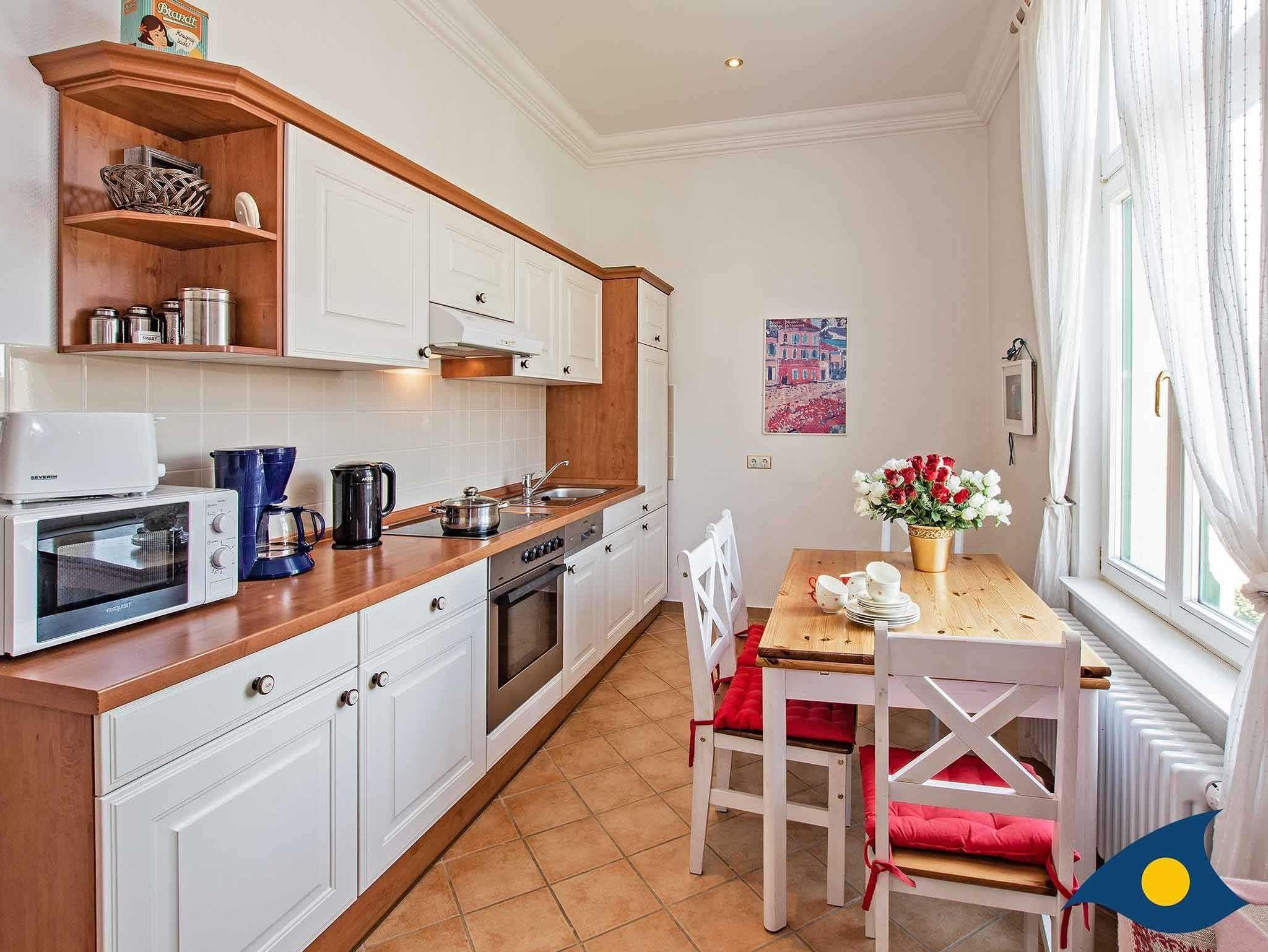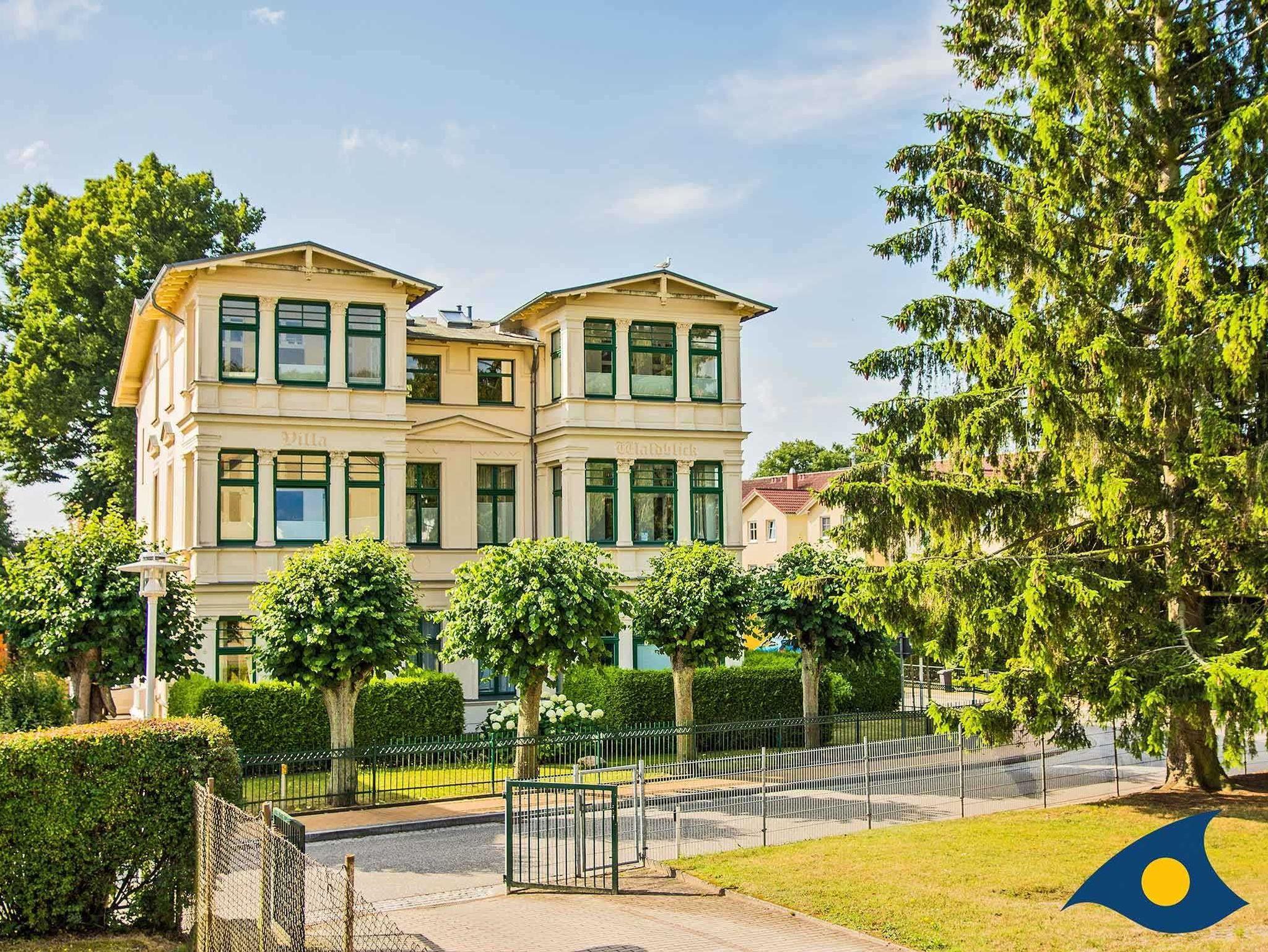 Die Villa Waldblick besticht durch ihre originalgetreu sanierte Fassade im Bäderstil. Fast alle Balkone sind nach Süden ausgerichtet, die Wohnungen sind hell und sonnig, kein Baumbestand verdunkelt die Räume. Die Appartements wurden stilgerecht, liebevoll und hochwertig eingerichtet. Kleine Accessoires sorgen für individuelle Gemütlichkeit. Großzügige Landhausküchen mit Essecken laden in einigen Wohnungen zum Beisammensein ein. Der Grillplatz im Garten kann von allen Mietern genutzt werden. Zu jeder Wohnung gehört ein kostenloser PKW-Stellplatz.