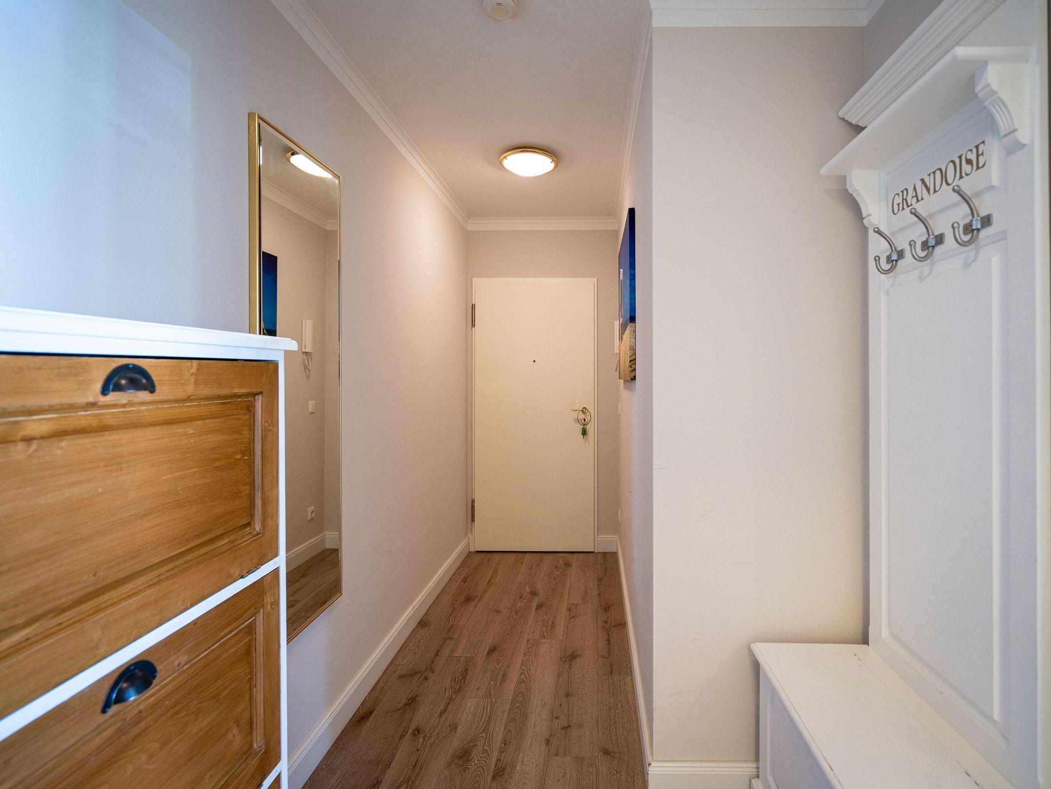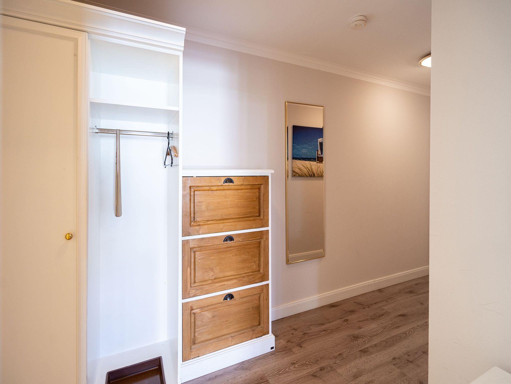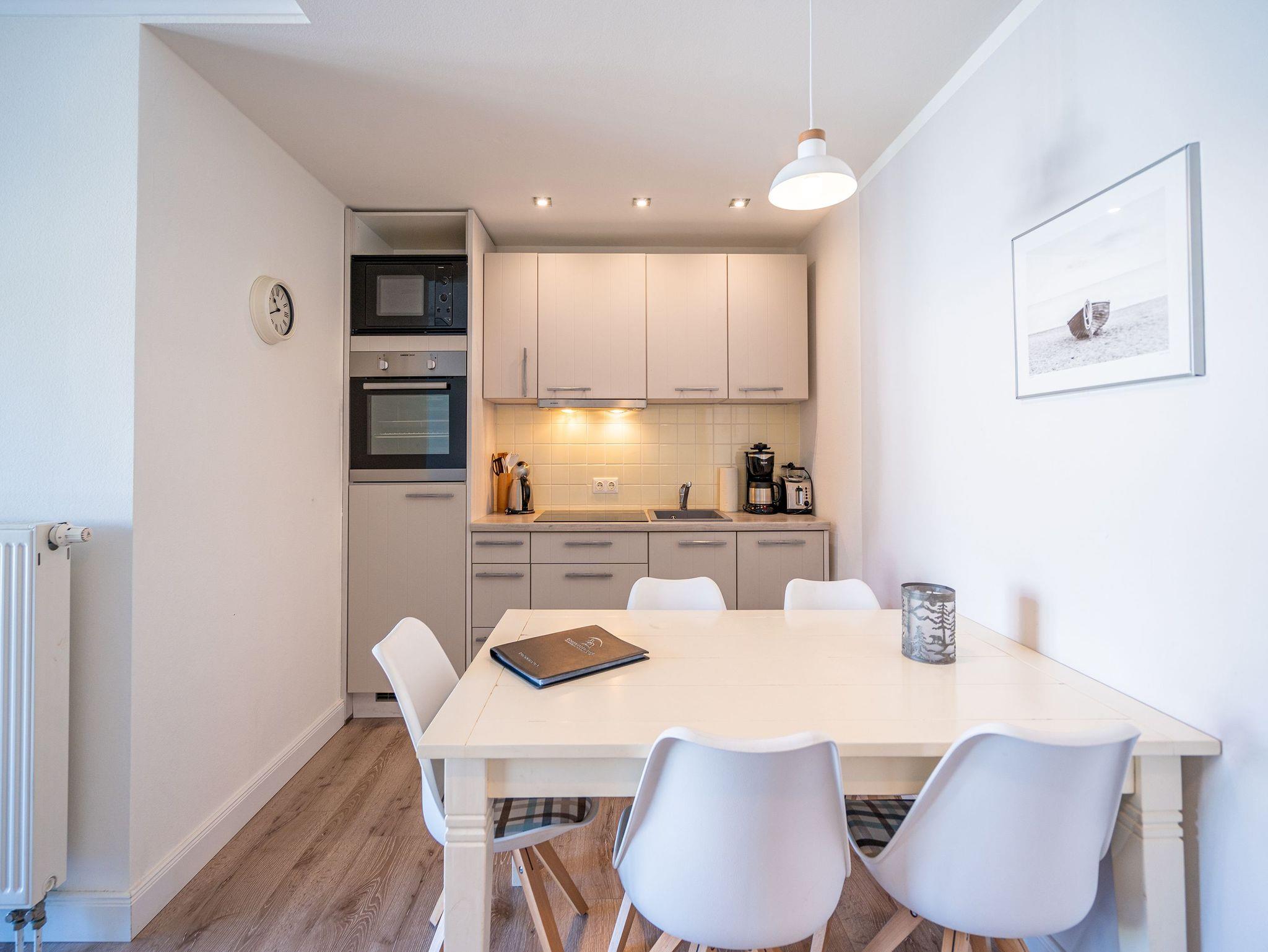 Das kleine Urlaubsparadies Appartement 1.14 im historischen Holzhaus an der Strandpromenade bietet auf 51 gemütlichen Quadratmetern Platz für zwei Erwachsene, 1 Kind bis 16 Jahre und 1 Kleinkind (bis max. 3 Jahre im Kinderreisebett). Dank bodentiefer Fenster gelangt ausreichend Usedomer Sonne in das schöne 2-Zimmer-Appartement im Erdgeschoss. Auf der bequemen Sofalandschaft (als Aufbettung für die 3. Person möglich) im offenen Wohn-Essbereich finden Sie Platz für die ganze Familie. Von hier aus haben Sie Zugang zum kleinen Balkon, der den Blick auf den Schloonsee freigibt. Essbereich und Küche gliedern sich unauffällig an den Wohnbereich an und halten alles bereit, was Sie zum Zubereiten Ihrer Speisen im Urlaub benötigen. Auf Ihren erholsamen Schlaf müssen Sie dank Boxspringbett (1,80m x 2,00) nicht verzichten. Flat-TV und genügend Platz für Ihre Urlaubsgarderobe runden den Schlafbereich ab. Im Duschbad (innenliegend) befinden sich WC und Waschtisch und Handtücher liegen für Sie bereit. Für einen sorgenfreien Urlaubsstart sind zudem die Betten bei Anreise bezogen. Ein kostenfreier Stellplatz in der Tiefgarage (Doppelparker oben, nur PKW - keine Kombis) ist für Sie reserviert. Kostenfreies WLAN sowie ein Briefkasten zur Nutzung runden dieses Appartement ab.