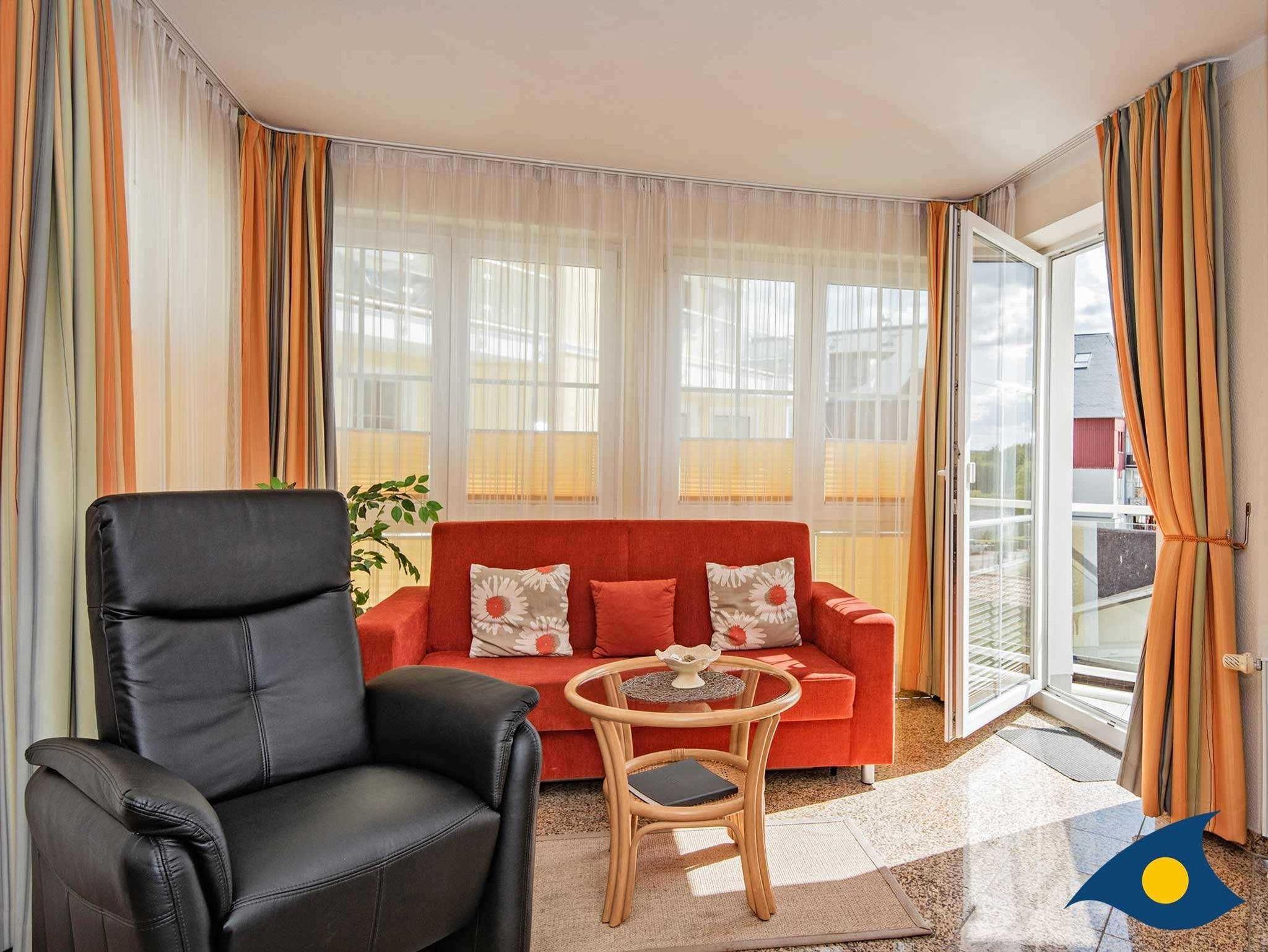 Das große, lichtdurchflutete Wohnzimmer ist das Herzstück des Appartements. Hier besprechen Sie beim morgendlichen Frühstück die Ausflugziele für den Tag, entspannen auf dem gemütlichen Relaxsessel mit verstellbarer Fußstütze, genießen ein Gläschen Wein mit Freunden oder kochen gemeinsam Ihr Lieblingsessen.