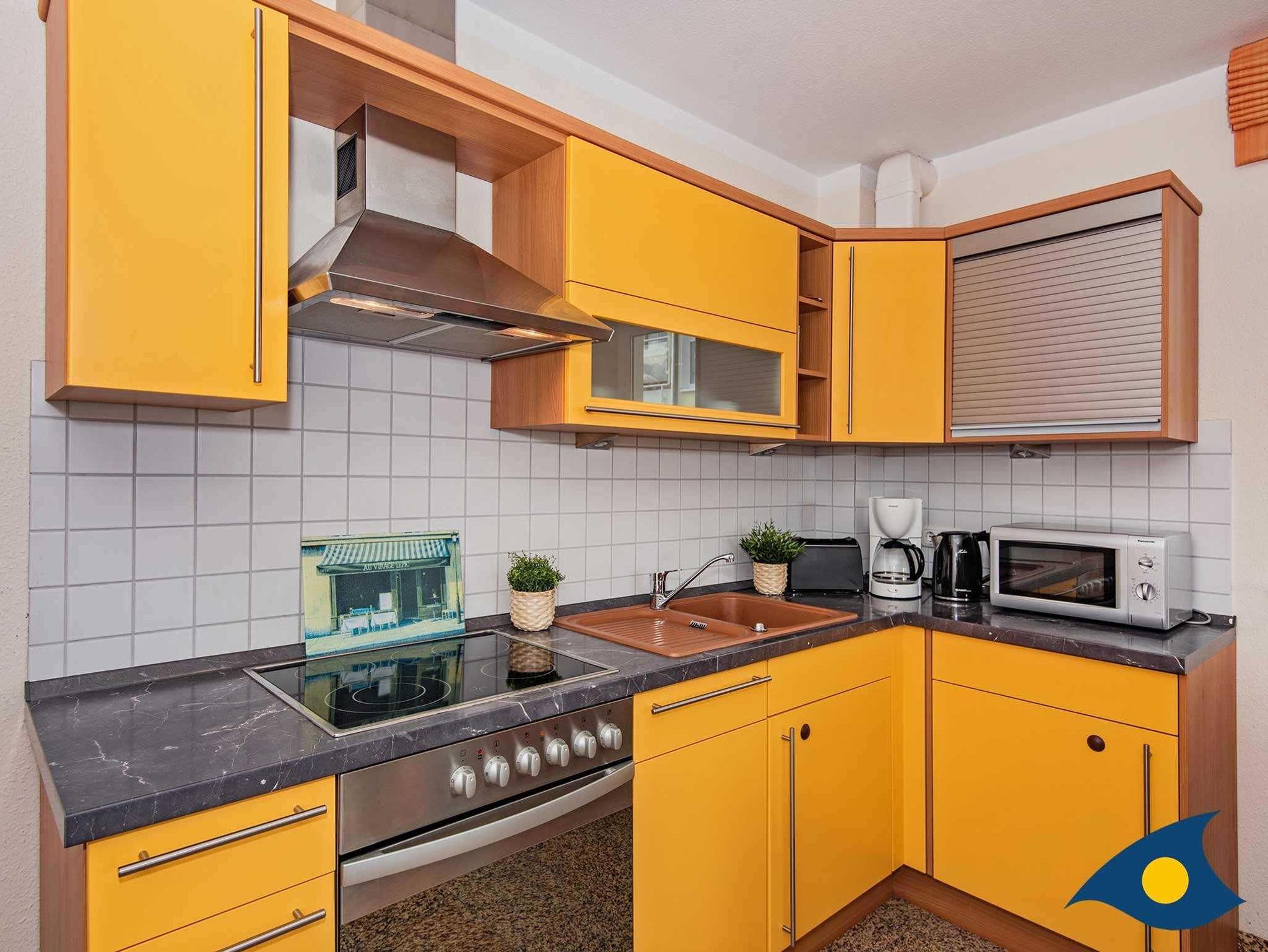 Auf 50 qm Wohnfläche begrüßen Sie ein gemütlicher Wohnraum mit einer modernen Küchenzeile, ein Schlafzimmer mit Doppelbett und ein Badezimmer mit Dusche und Toilette.
