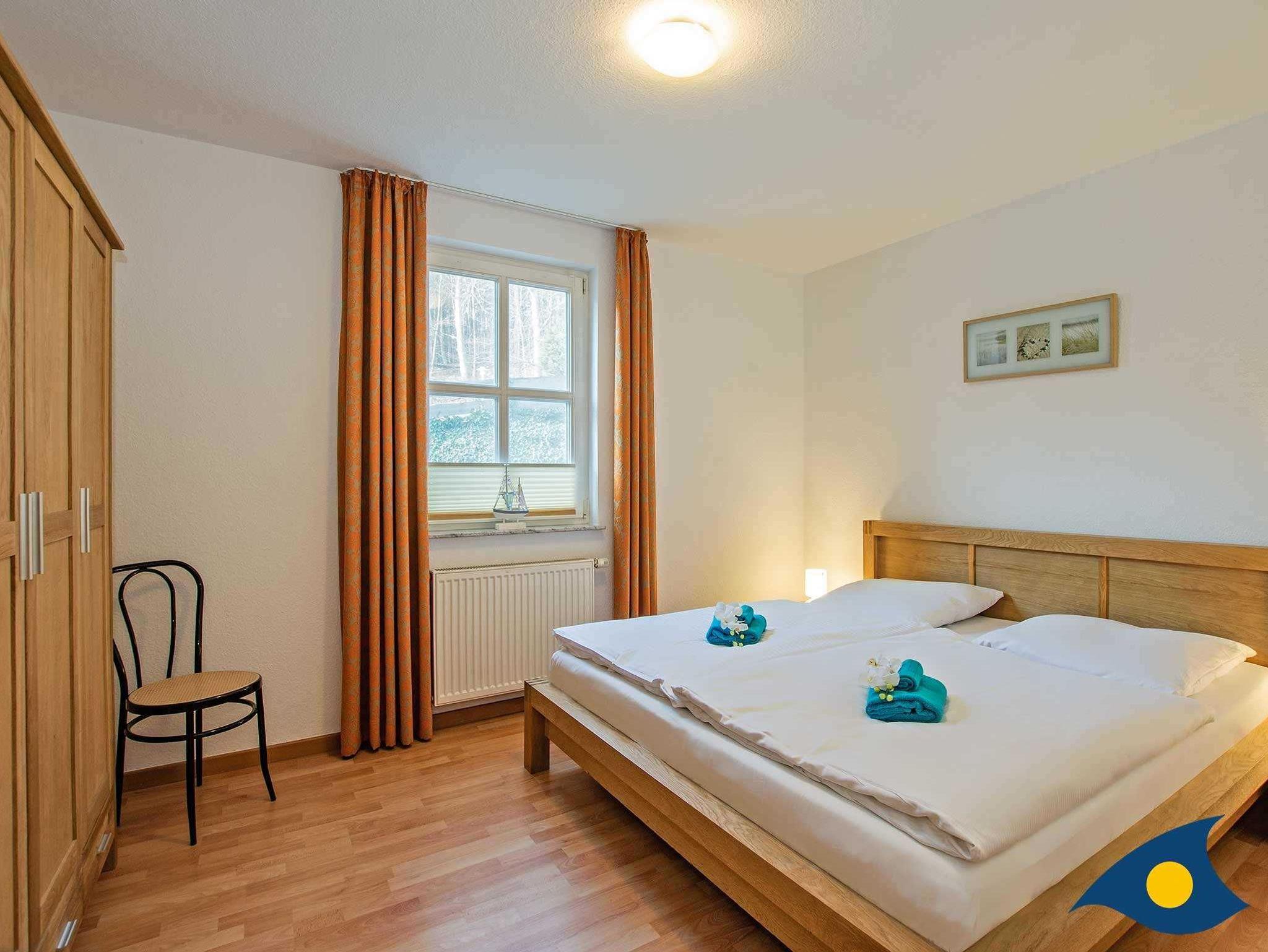 Das Schlafzimmer mit einem sehr bequemen Doppelbett verfügt über einen geräumigen Kleiderschrank indem Sie all Ihre Urlaubsutensilien sicher verstauen können.