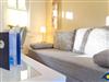 Von der Couch aus können Sie entspannt Fern sehen oder in einem der für Sie vorgehaltenen Büchern stöbern.