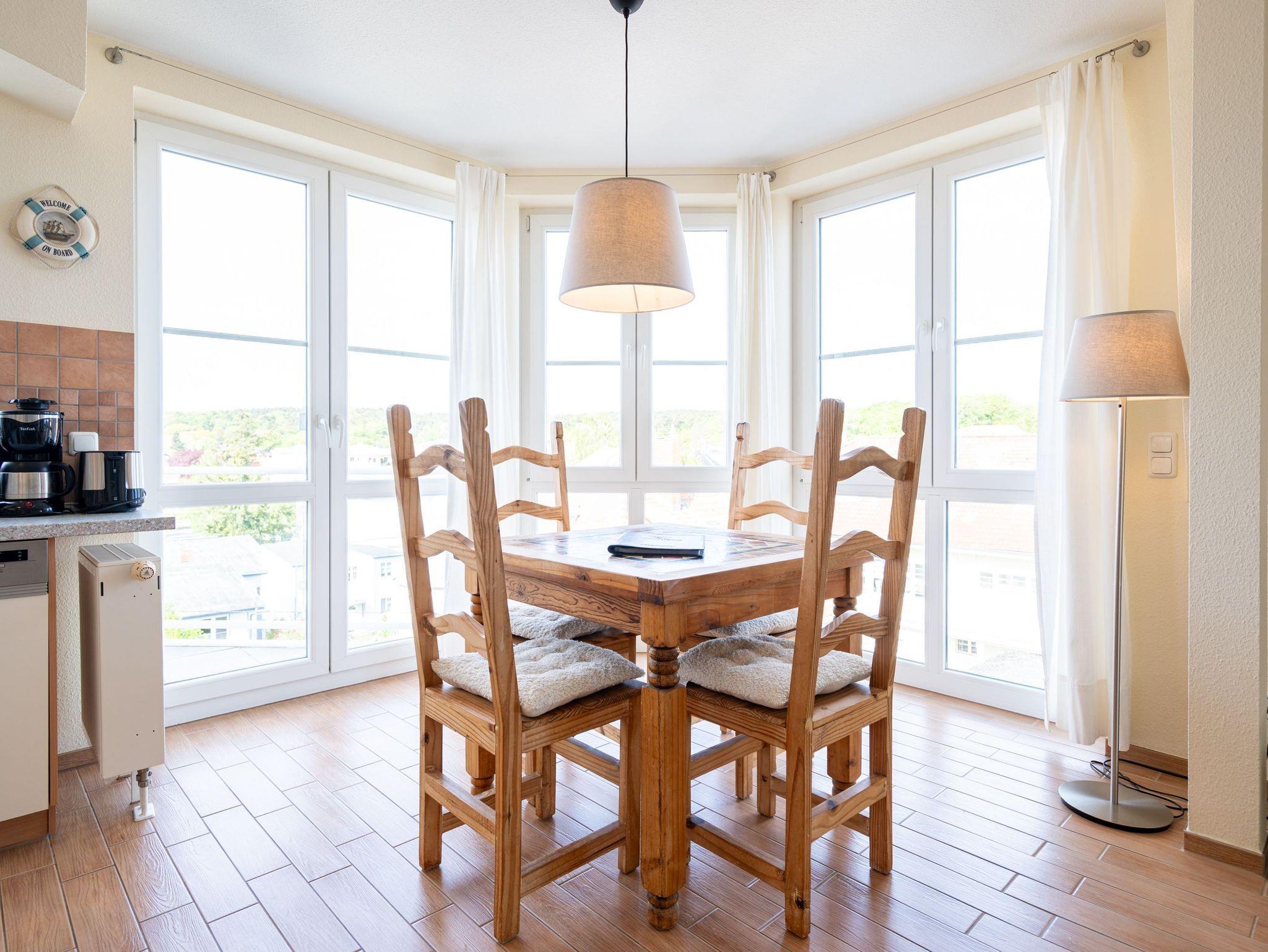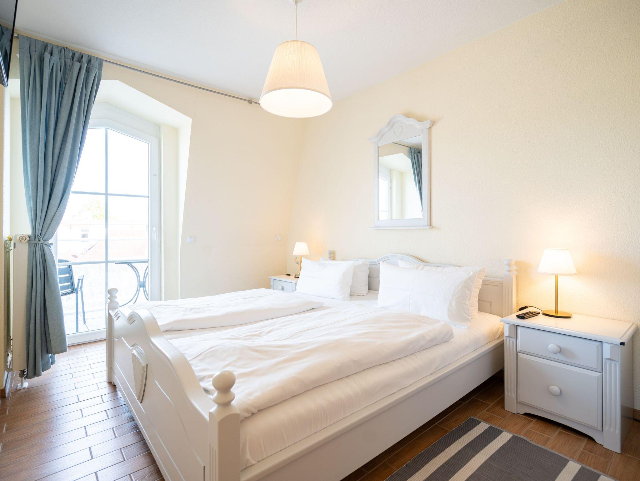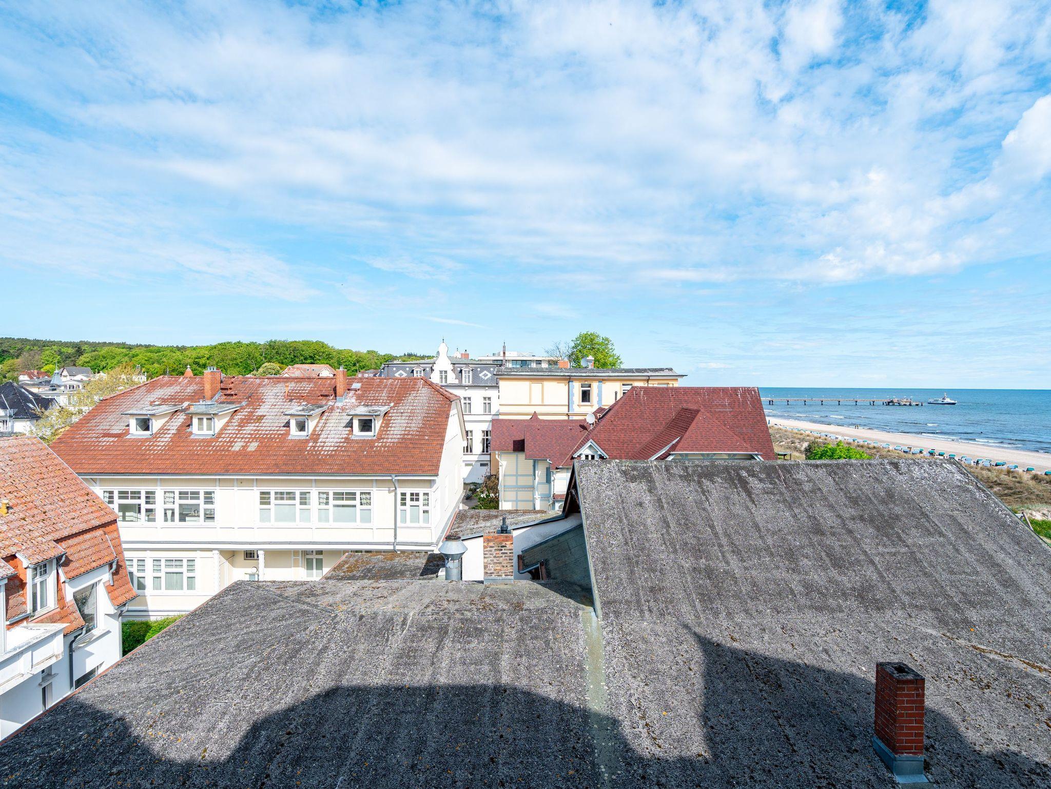 Die stilvoll eingerichtete 45 qm Ferienwohnung ist von Licht durchflutet und bietet einen schönen (seitlichen) Ausblick auf das Meer und den Strand (für max. 2 Erwachsene [&] 1 Kind bis 16 Jahre). Das Haus befindet sich in exponierter ruhiger Lage direkt an der Promenade und am Strand. Die Ferienwohnung verfügt über ein Wohnzimmer mit Einbauküche, Schlafzimmer, Duschbad, TV und 2 Balkone. Im Wohnbereich befindet sich als zusätzliche Schlafmöglichkeit eine Couch mit einer Liegefläche von 1,60 m mal 2 m. Auf Wunsch stellen wir für unsere kleinen Gäste ein Kinderreisebett (ohne zusätzliche Matratze [&] Bettzeug) und einen Kinderhochstuhl (gegen einen Aufpreis) zur Verfügung. Für Ihren Komfort sind die Betten bei der Anreise bezogen und Handtücher liegen bereit. Das WLAN-Netz ist kostenfrei nutzbar.