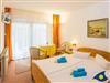 Das lichtdurchflutete Wohn- und Schlafzimmer beherbergt neben dem bequemen Doppelbett einen kleinen Essplatz. Die angrenzende Terrasse misst ca. 7,5 m² und ist Richtung Süden ausgerichtet. Hier genießen Sie ein Sonnenbad oder ein Gläschen Wein am Abend.