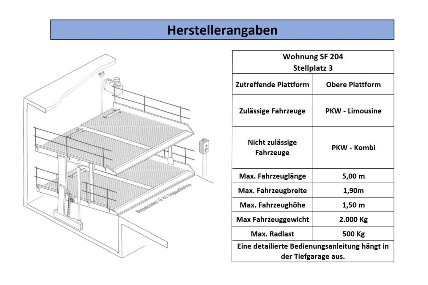 Ihr könnt einen PKW-Stellplatz in der hauseigenen Tiefgarage mit Doppelparksystem gegen Aufpreis hinzubuchen. Bitte gleicht die Maße eures PKW mit den Herstellerdaten sorgfältig im Vorfeld ab (siehe „Bildergalerie“). Alternativ kann euch die Gästebetreuung einen Stellplatz in der Tiefgarage Seepark, ca. 900 m entfernt, unter der Telefonnummer 038378-465020 reservieren (gegen Entgelt und nach Verfügbarkeit).