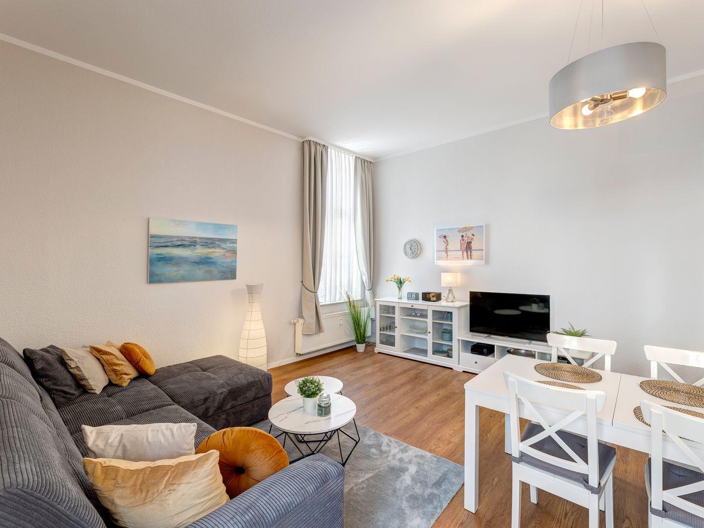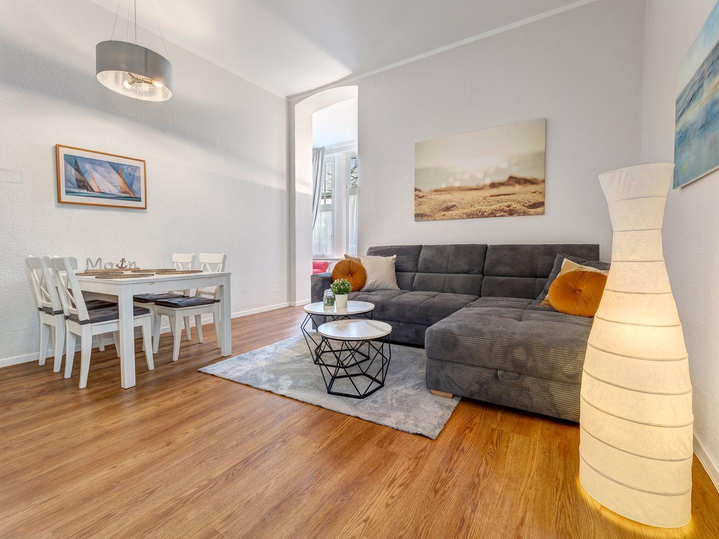 Diese charmante Zwei-Raum-Ferienwohnung "Bernstein" liegt im Erdgeschoss eines gepflegten Hauses und bietet eine gemütliche Unterkunft für bis zu 2 Personen.