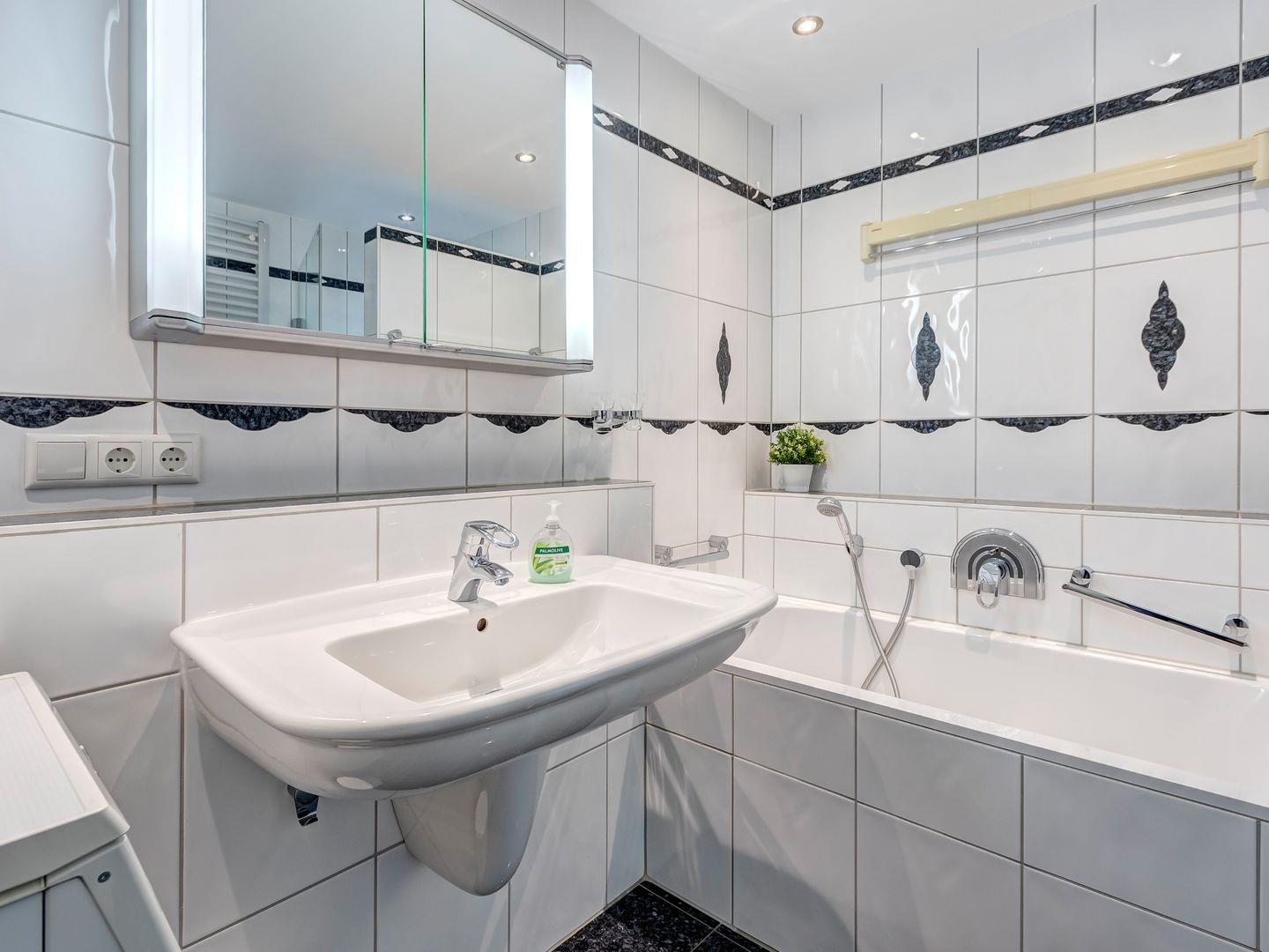 Zwei stilvolle Bäder bieten zusätzlichen Komfort: eines mit WC und Dusche, das andere mit Badewanne, WC und Dusche.