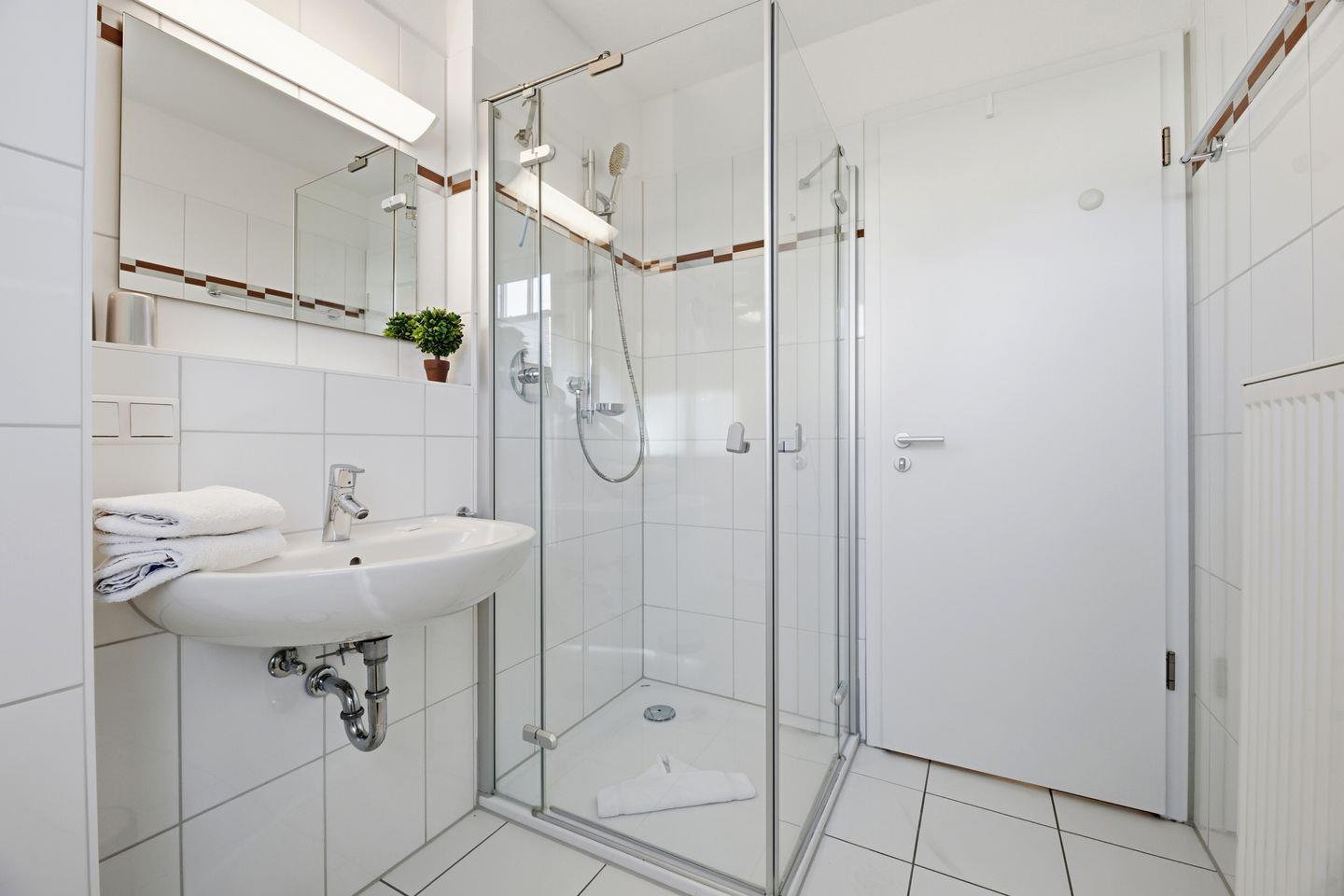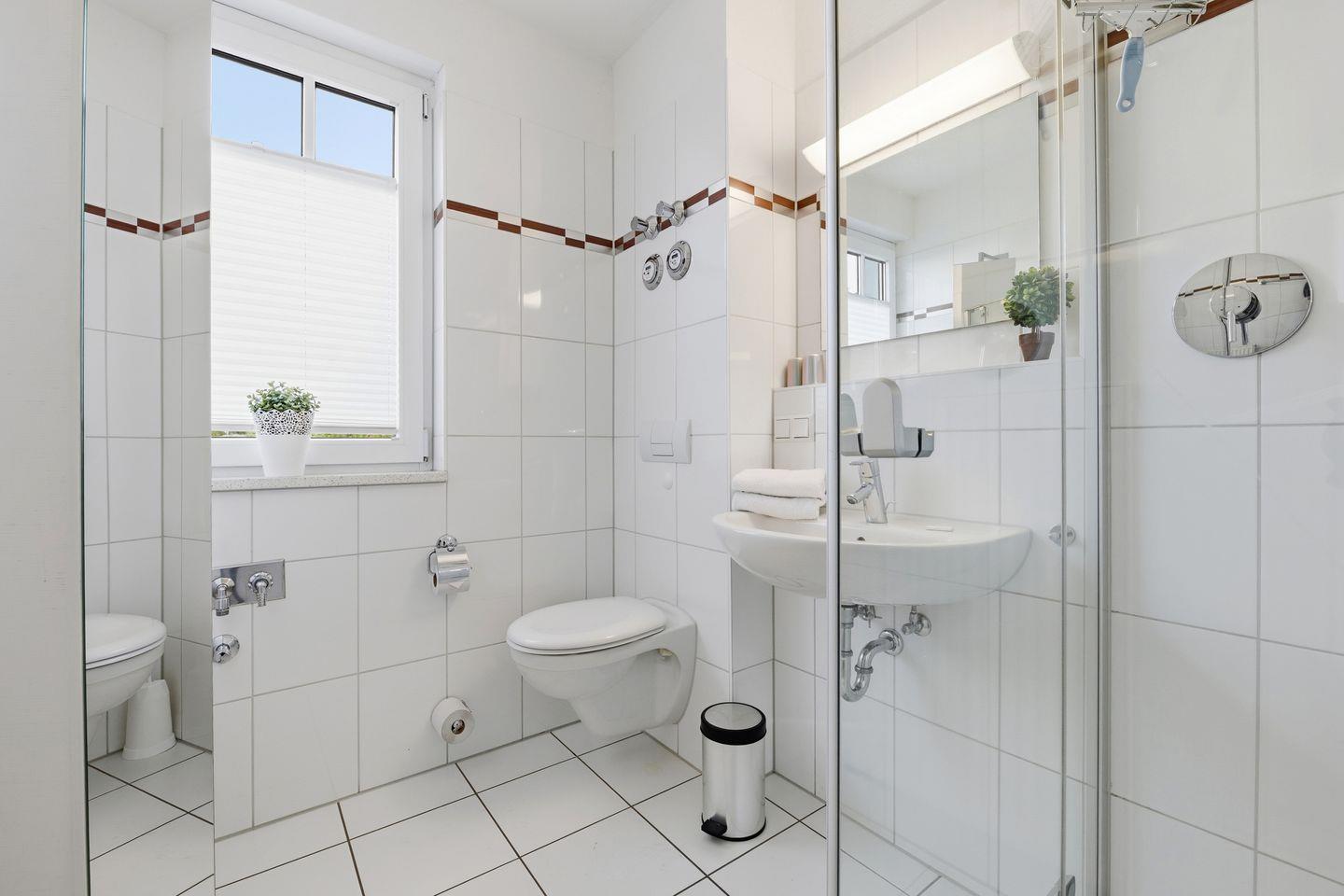 Ein modernes Duschbad mit Fenster rundet das Angebot ab.