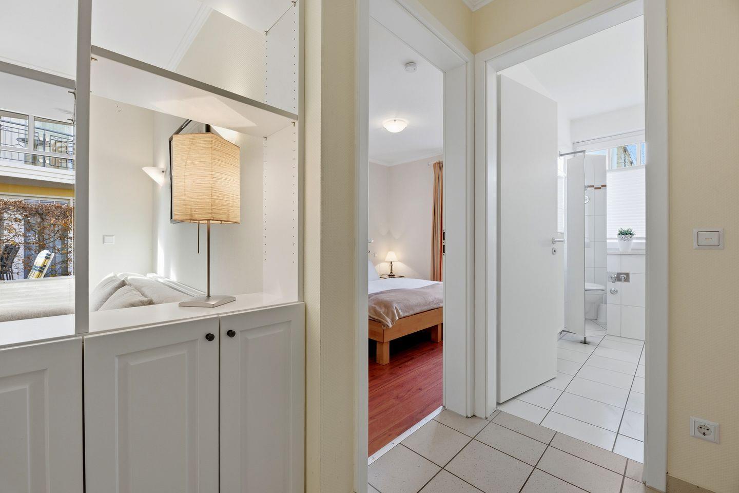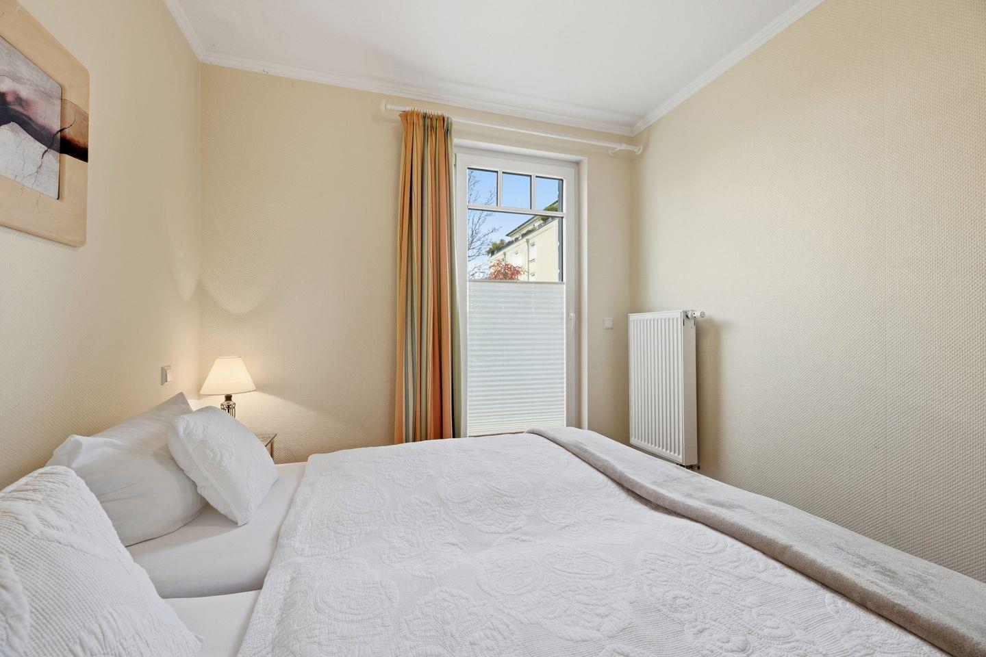 Das separate Schlafzimmer mit komfortablem Doppelbett sowie Schlafsofa im Wohnzimmer macht die Wohnung ideal für vier Personen.