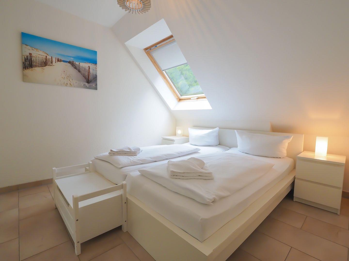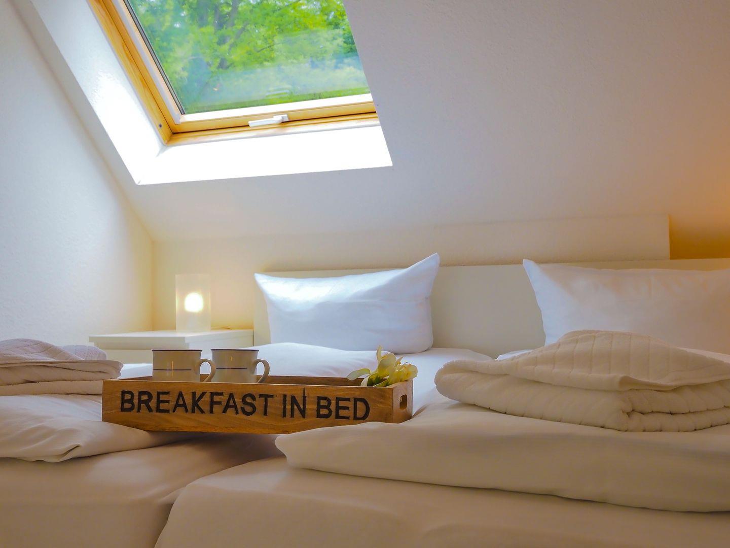 Ein besonderes Highlight dieses Appartements ist das zweite Schlafzimmer im charmanten Spitzbogen des Hauses, welches eine gemütliche Atmosphäre zum Entspannen und Träumen bietet.