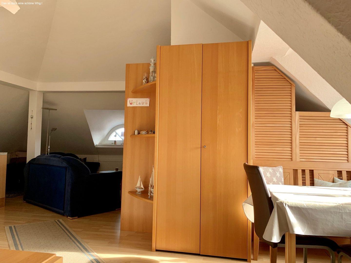 Die gemütliche Wohnung bietet einen kombinierten Wohn- und Schlafraum, der ideal für zwei Personen ist. Hier finden Sie zwei Einzelbetten (nicht zusammenstellbar) sowie einen praktischen Kleiderschrank. Zudem verfügt die Wohnung über eine offene Küche mit einem Essbereich, der zum gemeinsamen Verweilen einlädt.