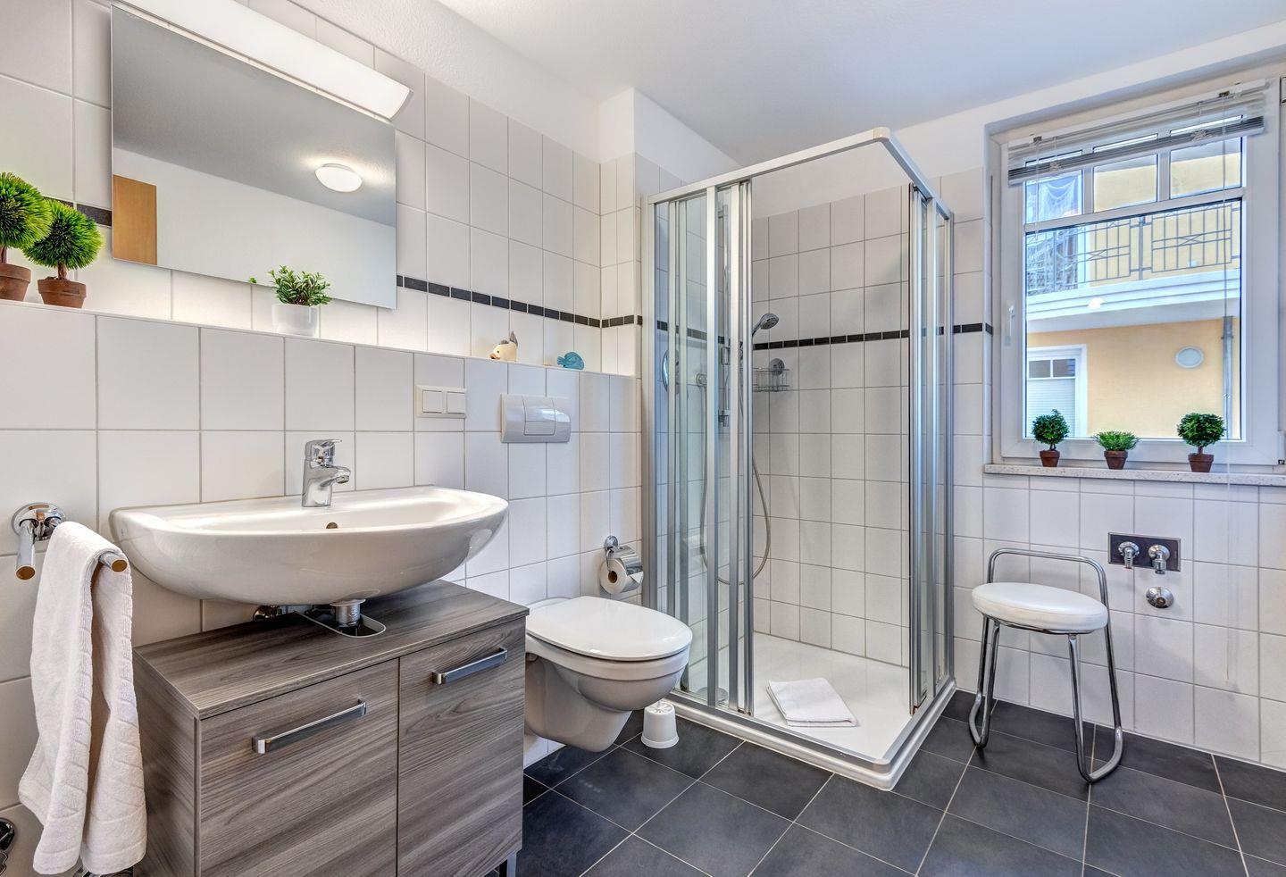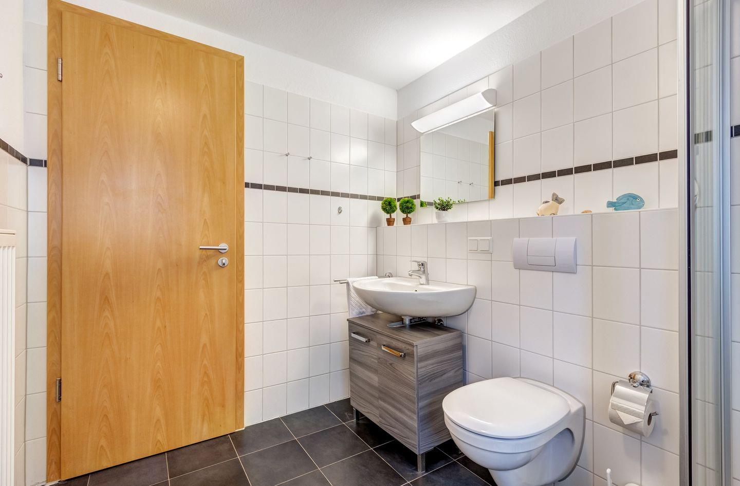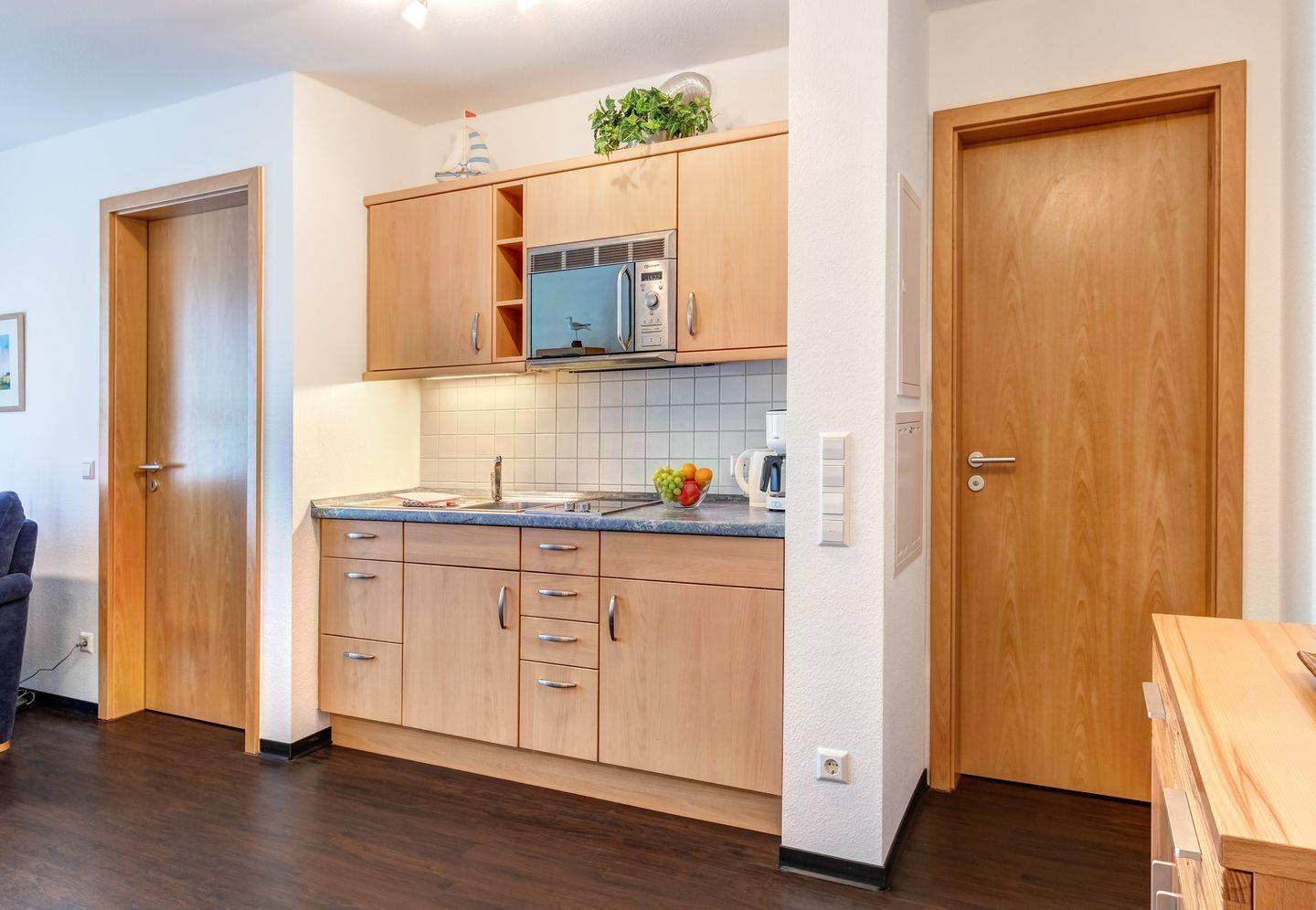 Der helle Wohn- und Essbereich bietet viel Raum für gemütliche Stunden, während die komplett ausgestattete Küche keine Wünsche offenlässt. Das Schlafzimmer sorgt mit seinem komfortablen Bett für erholsamen Schlaf, und das moderne Duschbad bietet zusätzlichen Komfort. Mit ihrer perfekten Lage und dem einladenden Ambiente ist diese Wohnung der ideale Rückzugsort für einen unvergesslichen Urlaub an der Ostsee.