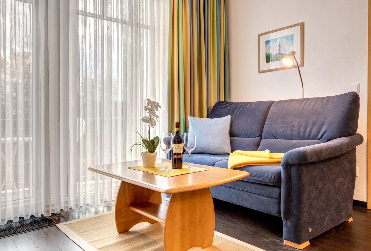 Der helle Wohn- und Essbereich bietet viel Raum für gemütliche Stunden, während die komplett ausgestattete Küche keine Wünsche offenlässt. Das Schlafzimmer sorgt mit seinem komfortablen Bett für erholsamen Schlaf, und das moderne Duschbad bietet zusätzlichen Komfort. Mit ihrer perfekten Lage und dem einladenden Ambiente ist diese Wohnung der ideale Rückzugsort für einen unvergesslichen Urlaub.