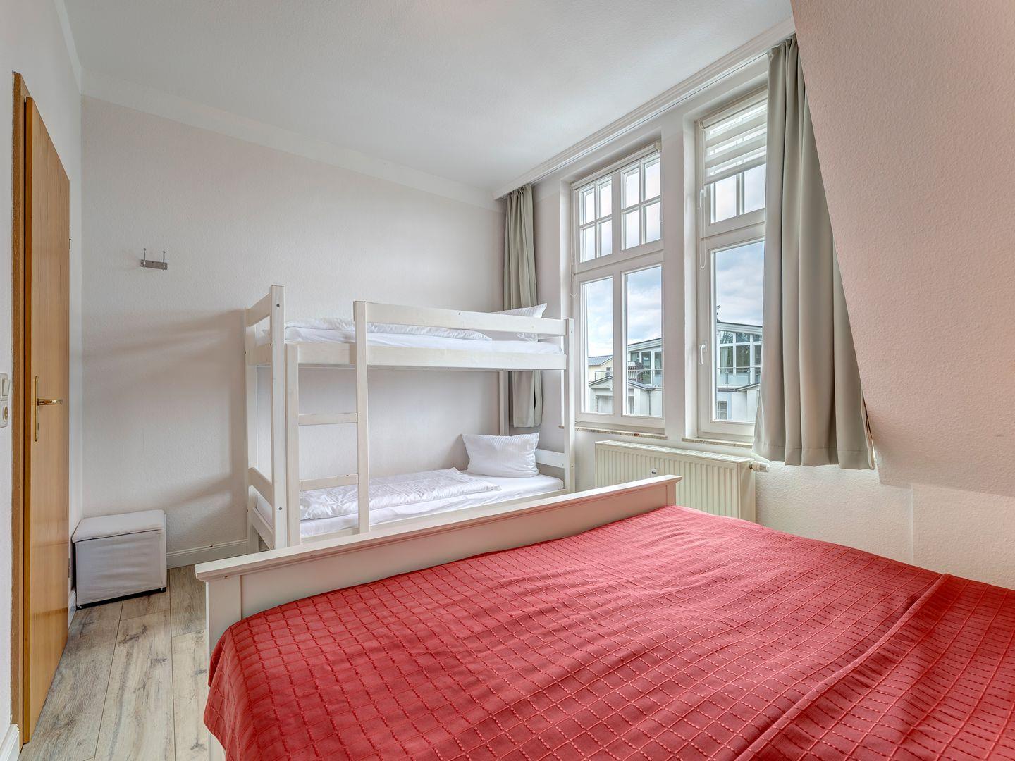 Das Schlafzimmer verfügt über ein bequemes Doppelbett (1,80m x 2,00m) und ein Doppel-Hochbett mit je (0,90m x 2,00m), ideal für Kinder.