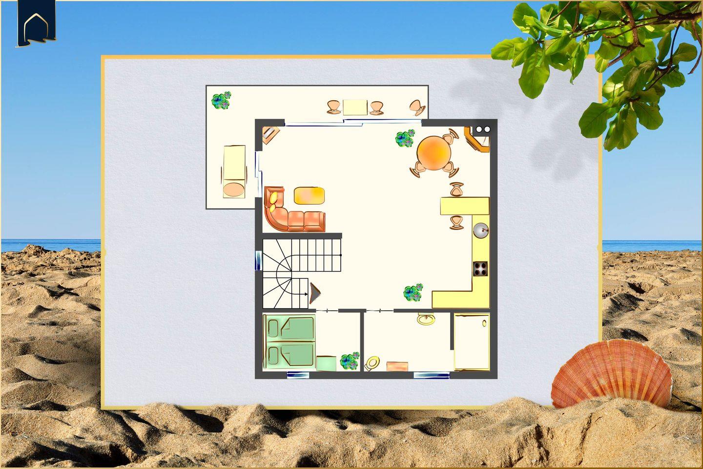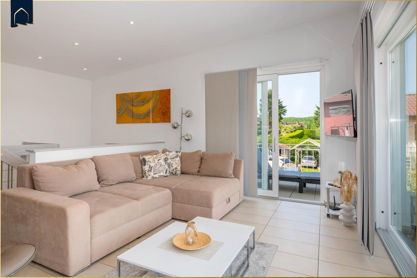 Auf ca. 53 m² erwartet Sie eine geschmackvoll eingerichtete Ferienwohnung für zwei Personen. Der helle Wohn- und Essbereich bildet das Herzstück der Wohnung. Hier sorgen ein gemütlicher Kamin, ein Esstisch und der direkte Zugang zum Garten für eine angenehme Wohlfühlatmosphäre – zu jeder Jahreszeit.