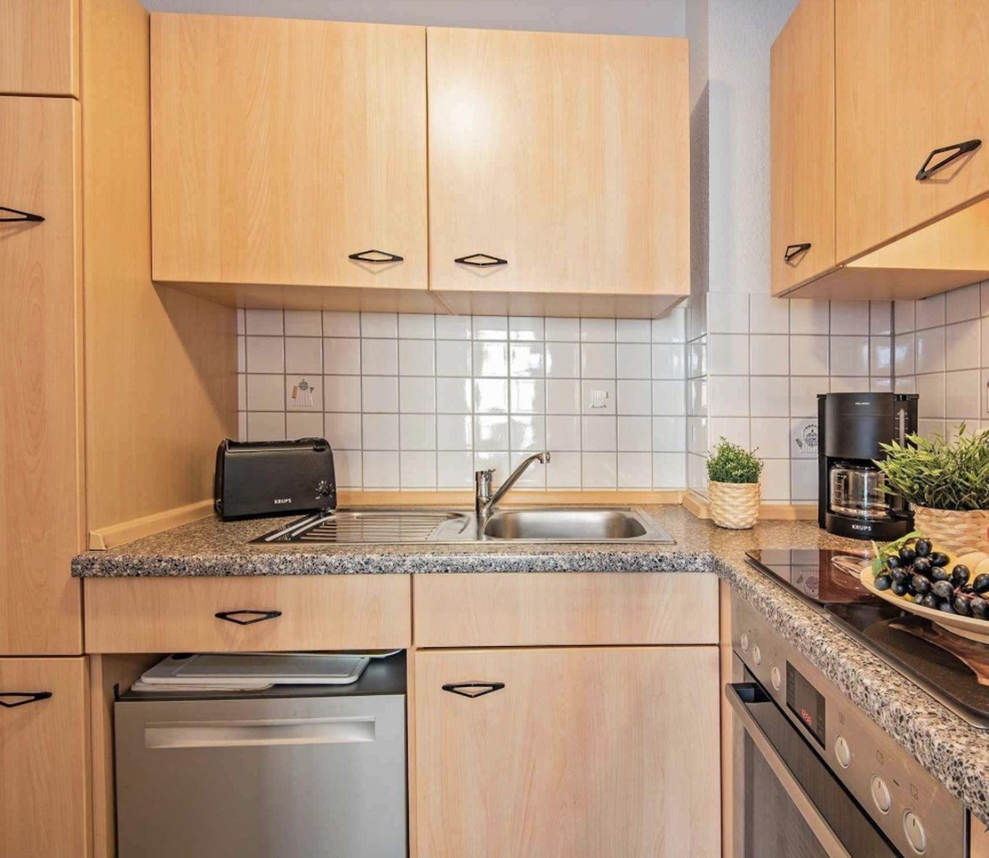 Das Appartement ist modern und funktional eingerichtet. Es bietet Platz für bis zu 2 Personen. Die hochwertige Einbauküche verfügt über eine Mikrowelle und eine Geschirrspülmaschine, der Fußboden ist in Holz gehalten.