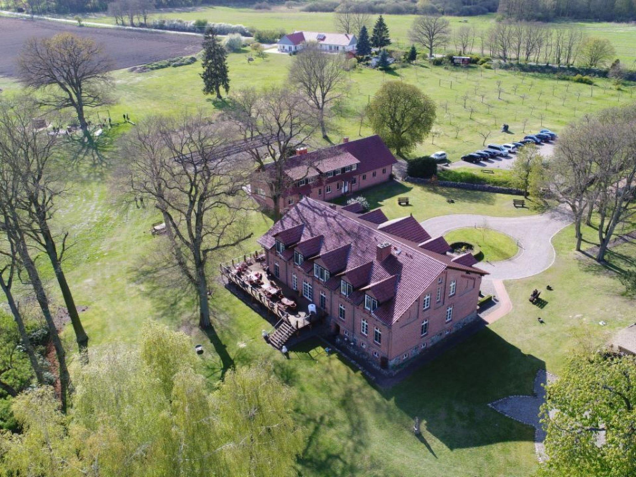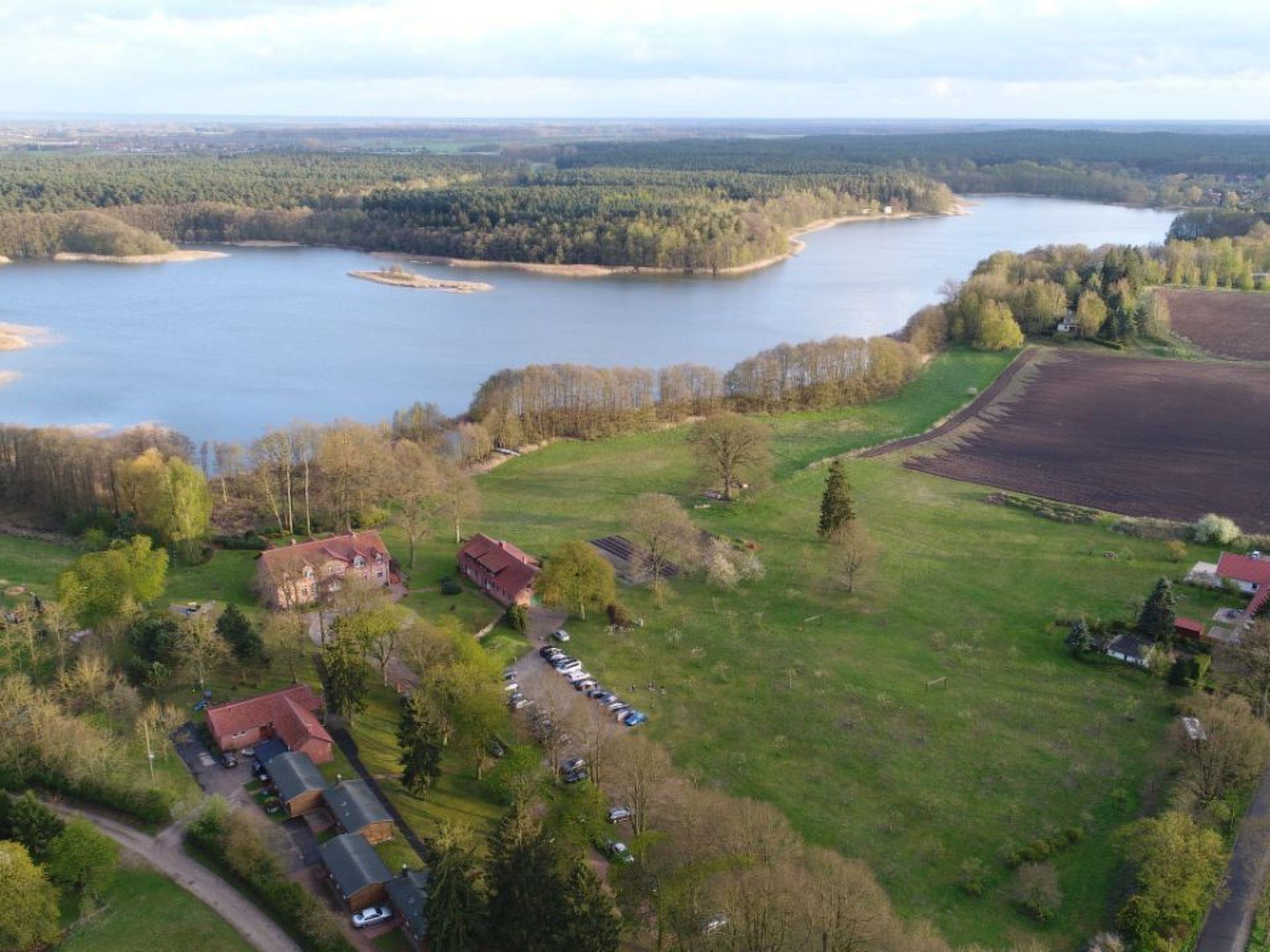 The accommodation is on the site of Gut Settin by the lake. The house is in a slightly elevated location in the immediate neighbourhood of the manor. From your accommodation you can enjoy a wonderful view of orchards, Settiner See and directly into the forests.Cosy cabins with a terrace, in a charming and quiet location at Settiner See, with a variety of cultural events and sports activities, trips to the Baltic Sea, and the possibility to end exciting days relaxing in front of the fireplace or on the terrace